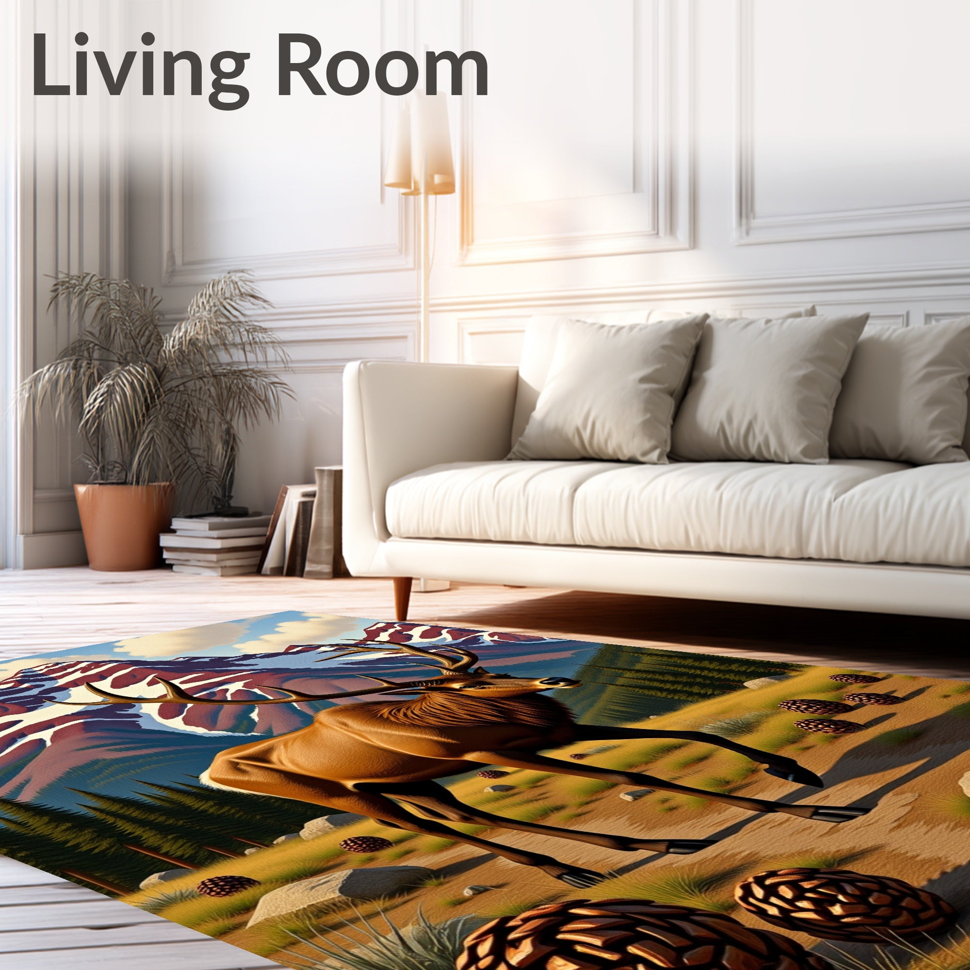 Flatwoven High Traffic Area Rug, Elk Traversing Mountain Wilderness Path, Non Slip, Stain Resistant, Washable Area Rugs for Living Room, Bedroom (Brown) Overview: