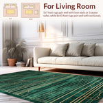 Flatwoven High Traffic Area Rug, Emerald Geometric Elegance, Non Slip, Stain Resistant, Washable Area Rugs for Living Room, Bedroom (Green) Overview: