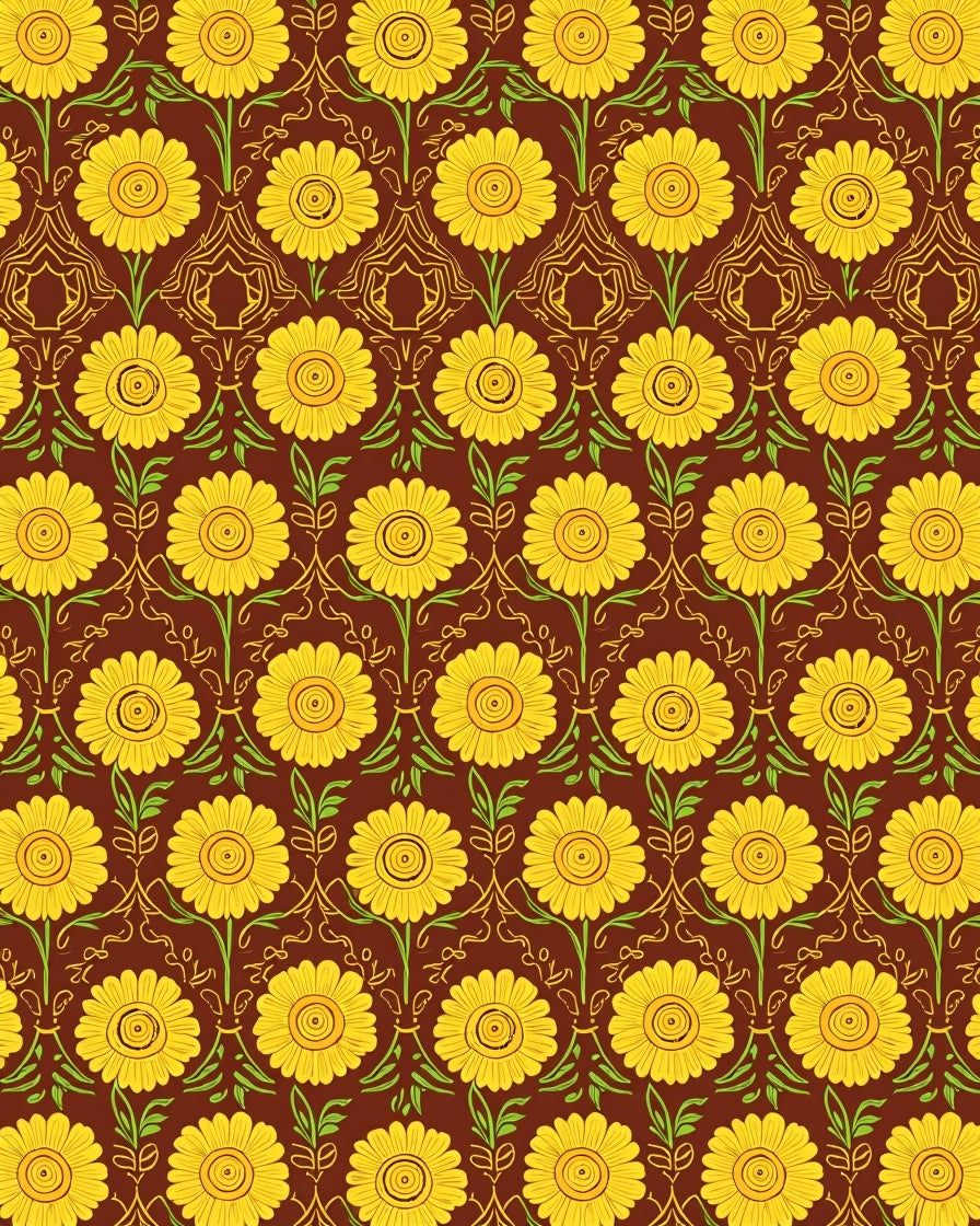 Enchanted Blossom Field with Whimsical Flower Medallions(Brown)