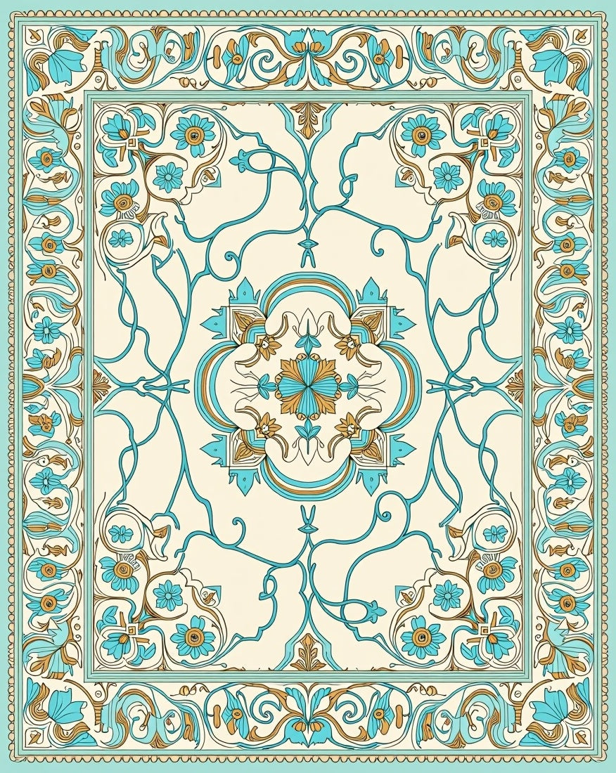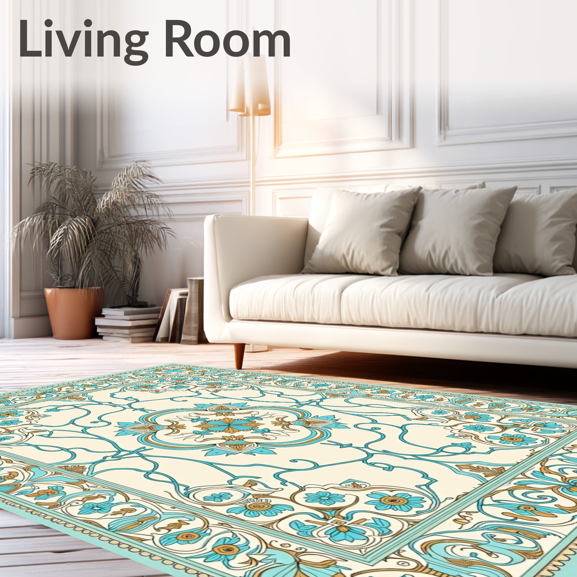 Flatwoven High Traffic Area Rug, Enchanted Garden Floral Maze, Non Slip, Stain Resistant, Washable Area Rugs for Living Room, Bedroom (Turquoise) Overview: