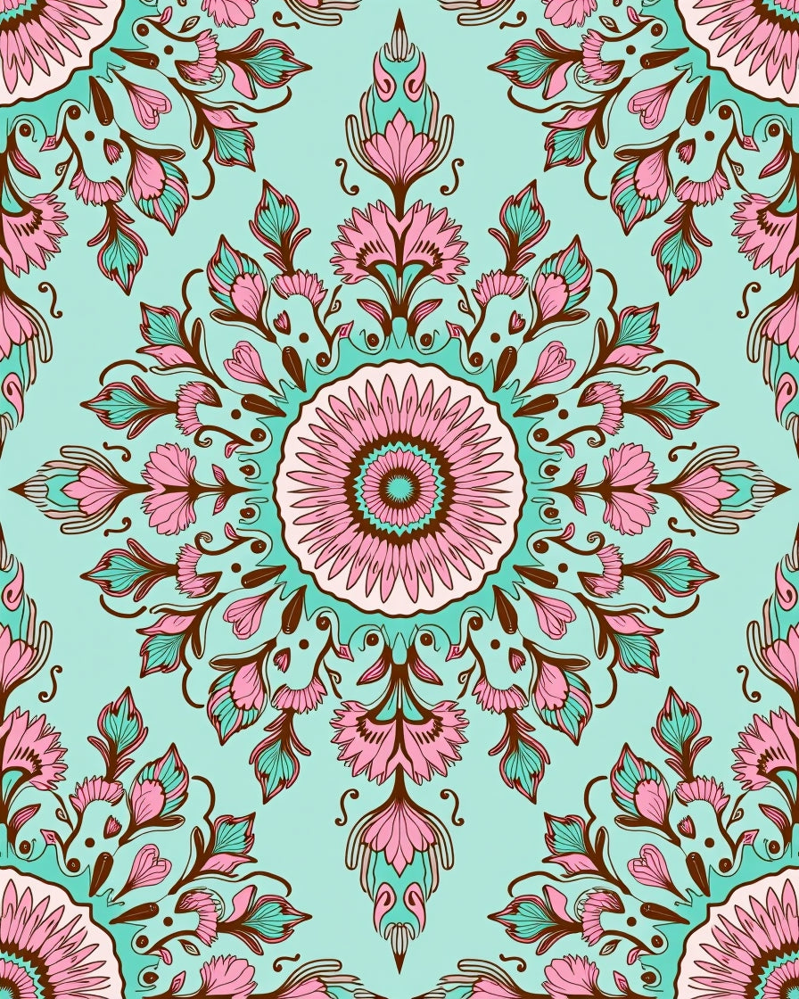 Enchanted Garden Floral Medallion Tapestry(Turquoise)