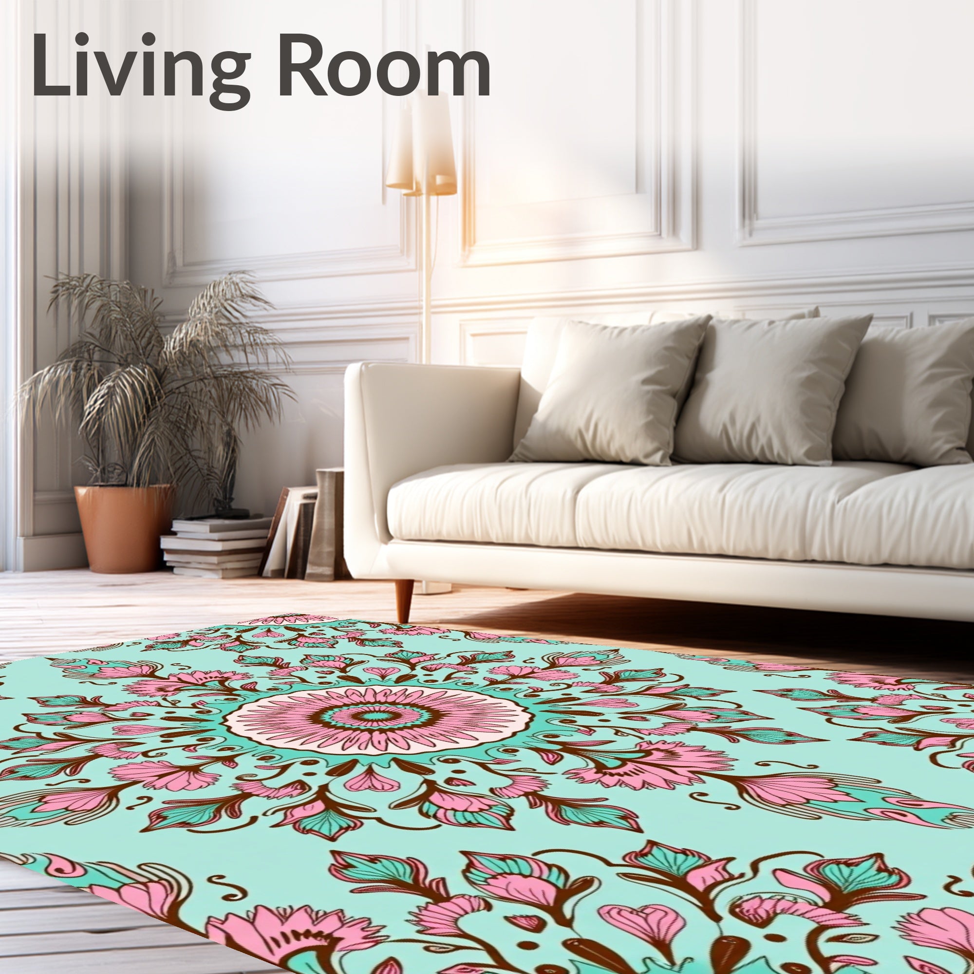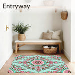 Flatwoven High Traffic Area Rug, Enchanted Garden Floral Medallion Tapestry, Non Slip, Stain Resistant, Washable Area Rugs for Living Room, Bedroom (Turquoise) Overview: