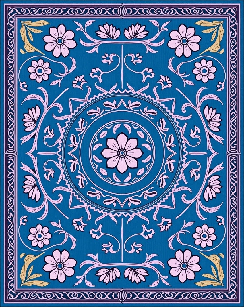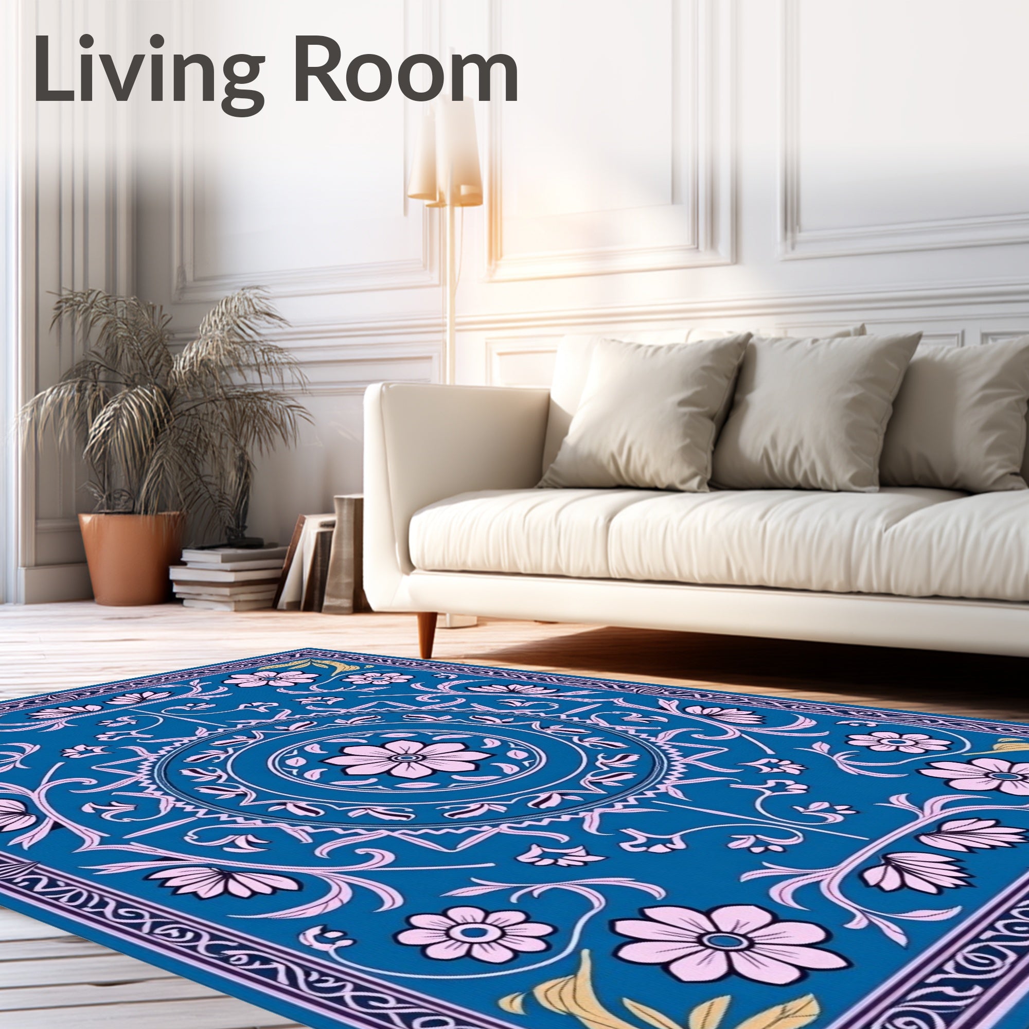 Flatwoven High Traffic Area Rug, Enchanted Garden Floral Tapestry With Interwoven Botanical Motifs, Non Slip, Stain Resistant, Washable Area Rugs for Living Room, Bedroom (Blue) Overview: