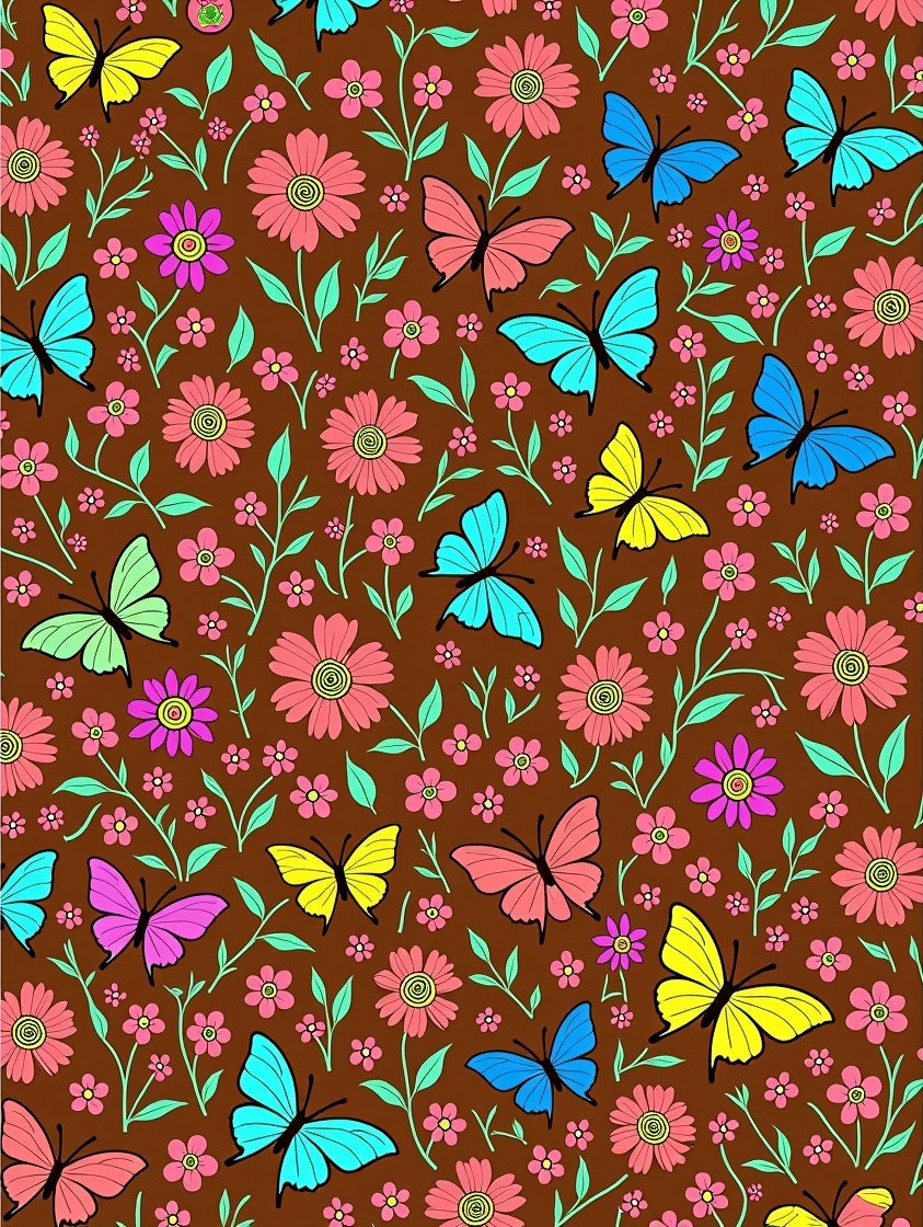 Enchanted Garden with Vibrant Floral Meadow Motifs(Brown)