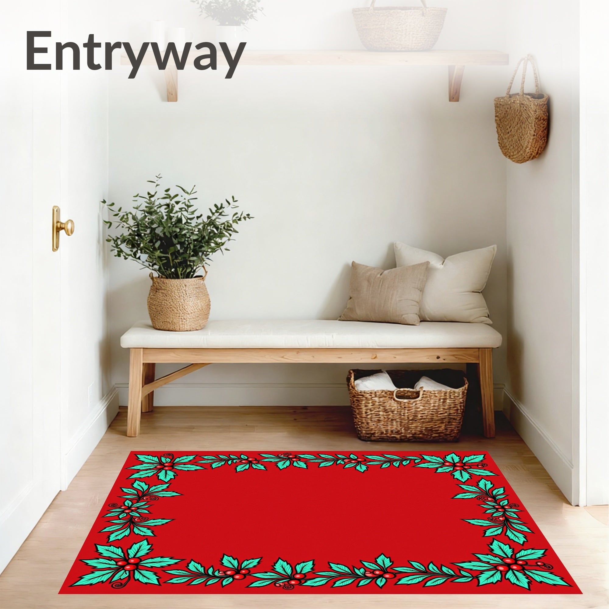 Flatwoven High Traffic Area Rug, Enchanted Holly Berries Farmhouse, Non Slip, Stain Resistant, Washable Area Rugs for Living Room, Bedroom (Red) Overview: