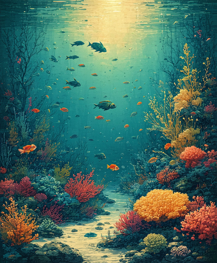 Enchanted Seabed Showcasing Graceful Turtles Amid Tropical Coral(Blue)