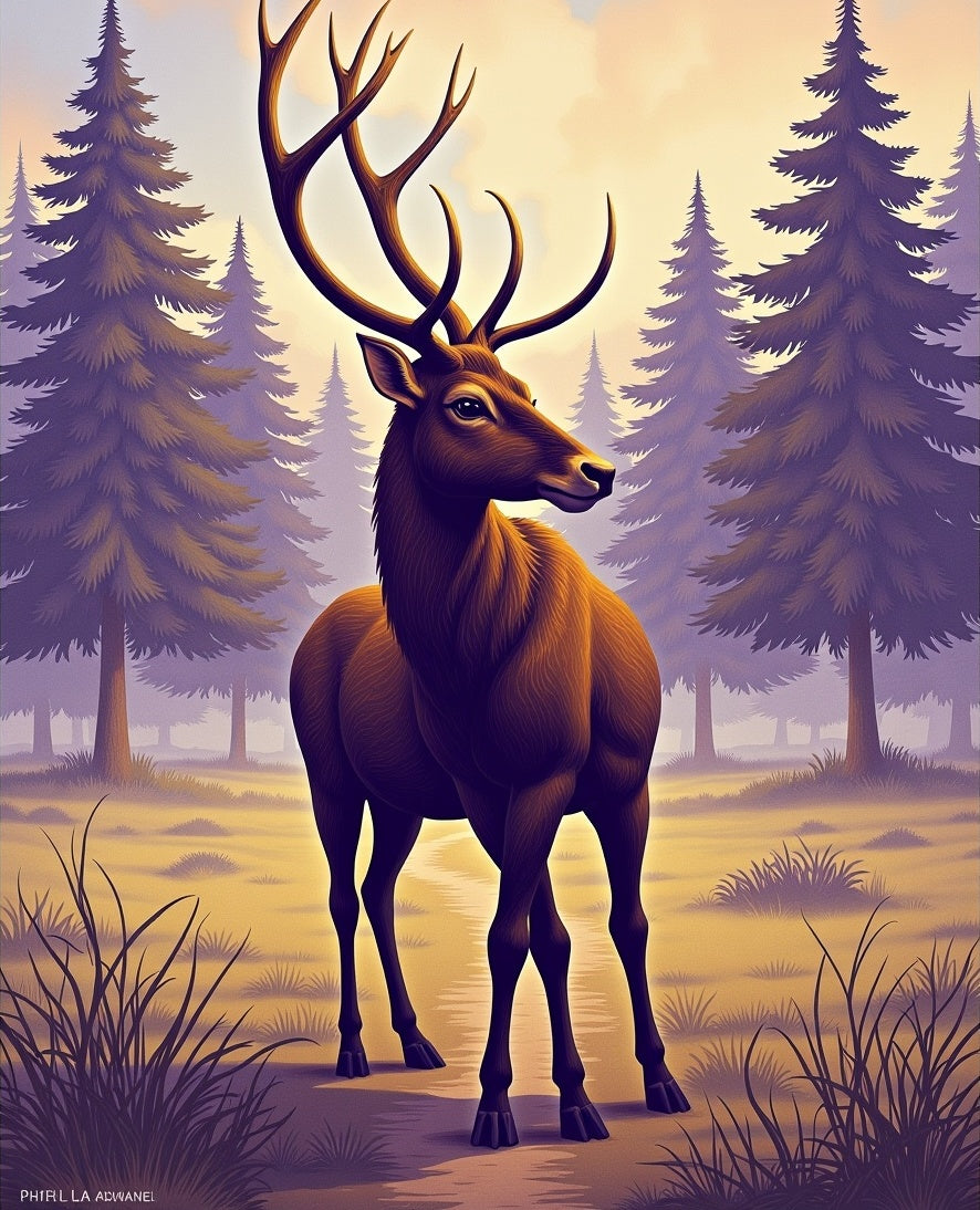 Enchanted Stag Wandering Through Foggy Woodland Dreamscape(Brown)
