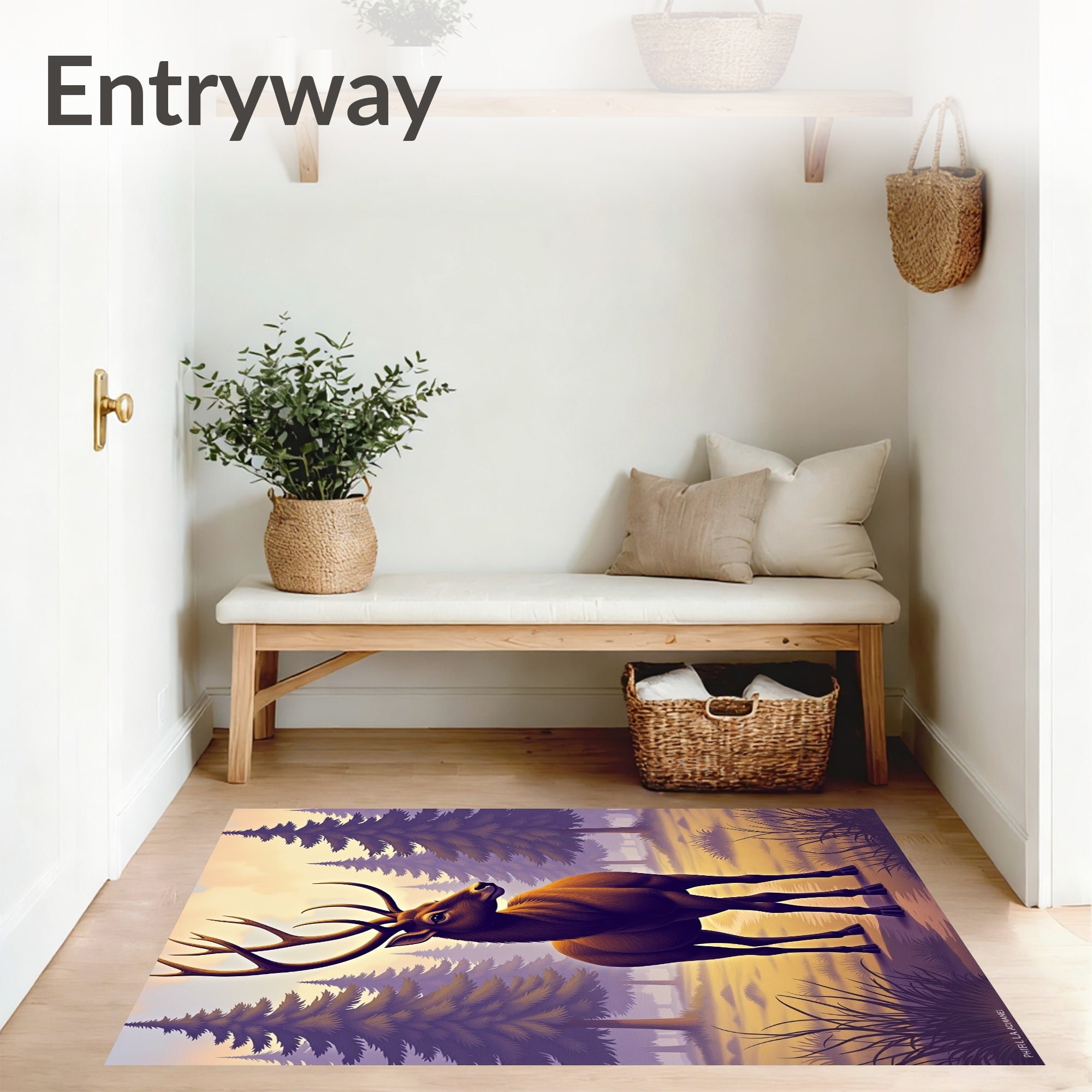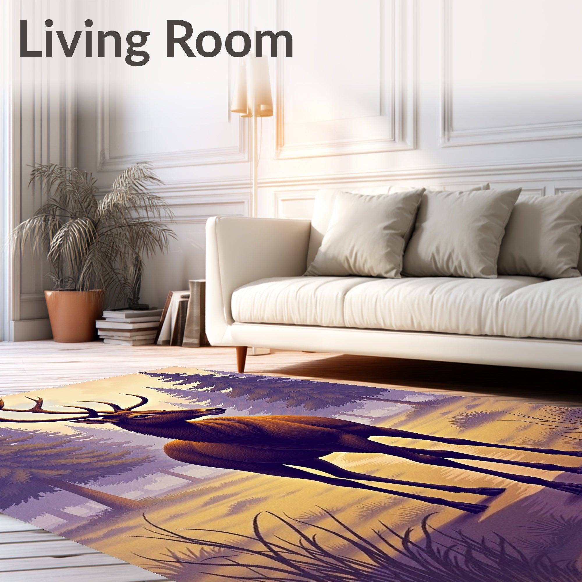 Flatwoven High Traffic Area Rug, Enchanted Stag Wandering Through Foggy Woodland Dreamscape, Non Slip, Stain Resistant, Washable Area Rugs for Living Room, Bedroom (Brown) Overview: