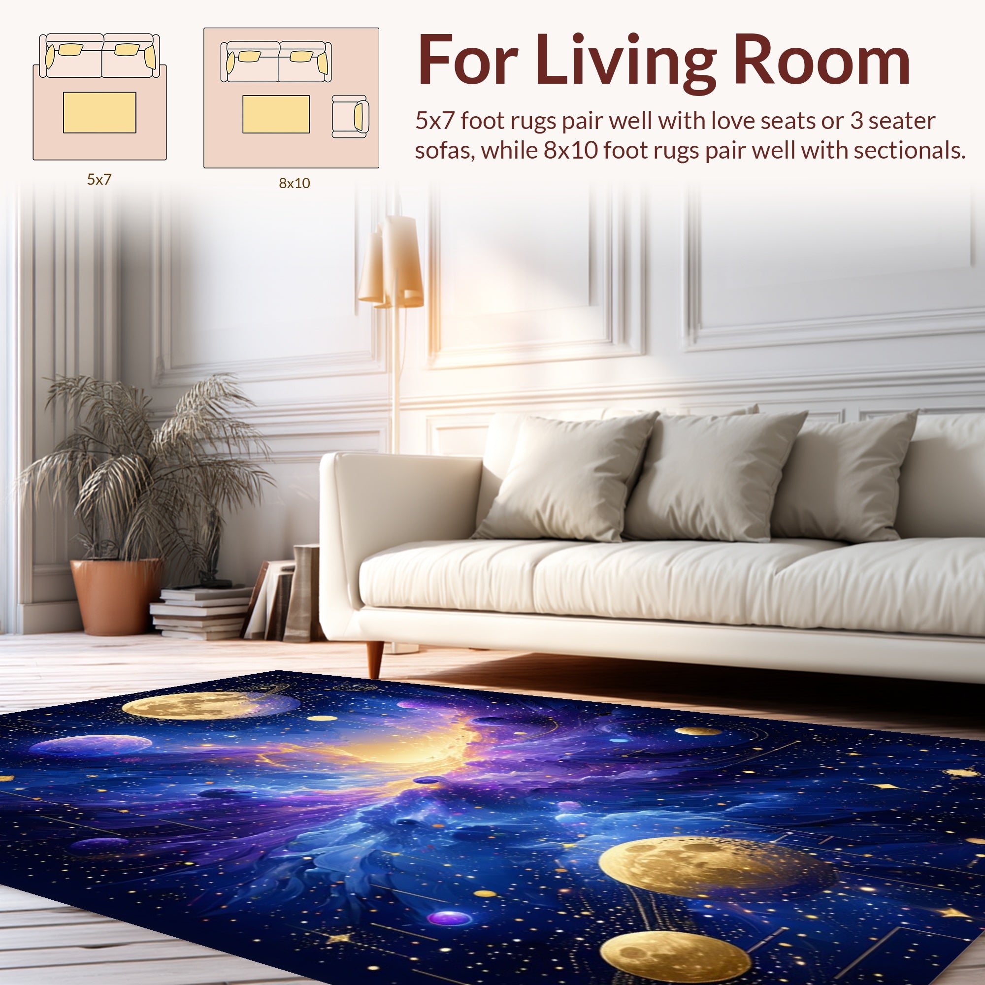 Flatwoven High Traffic Area Rug, Enchanting Astral Swirl Visual, Non Slip, Stain Resistant, Washable Area Rugs for Living Room, Bedroom (Purple) Overview: