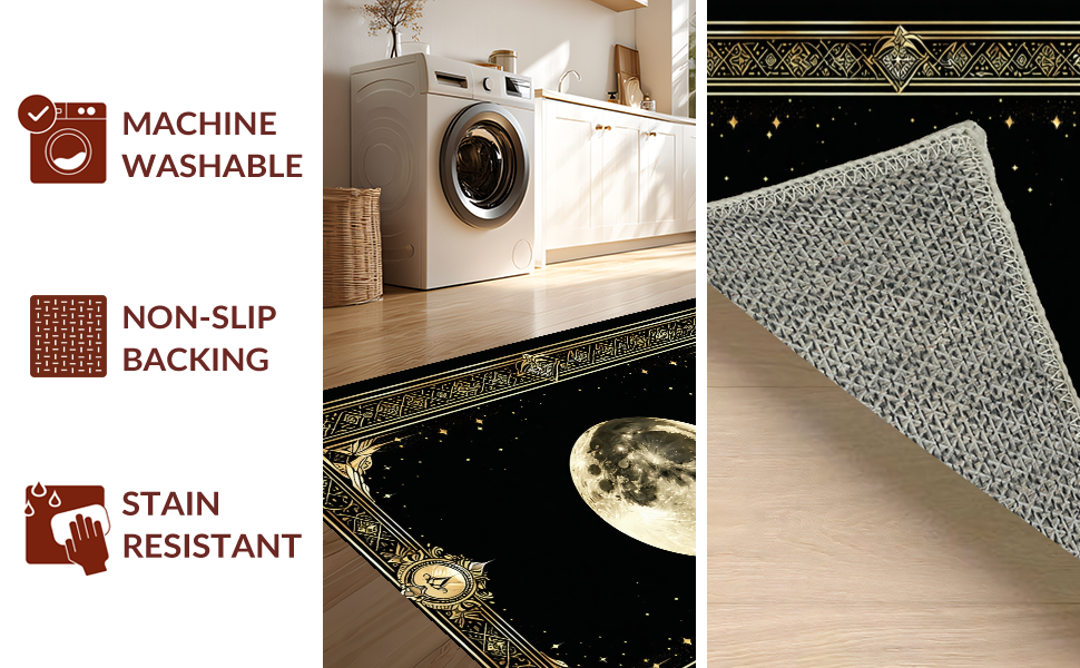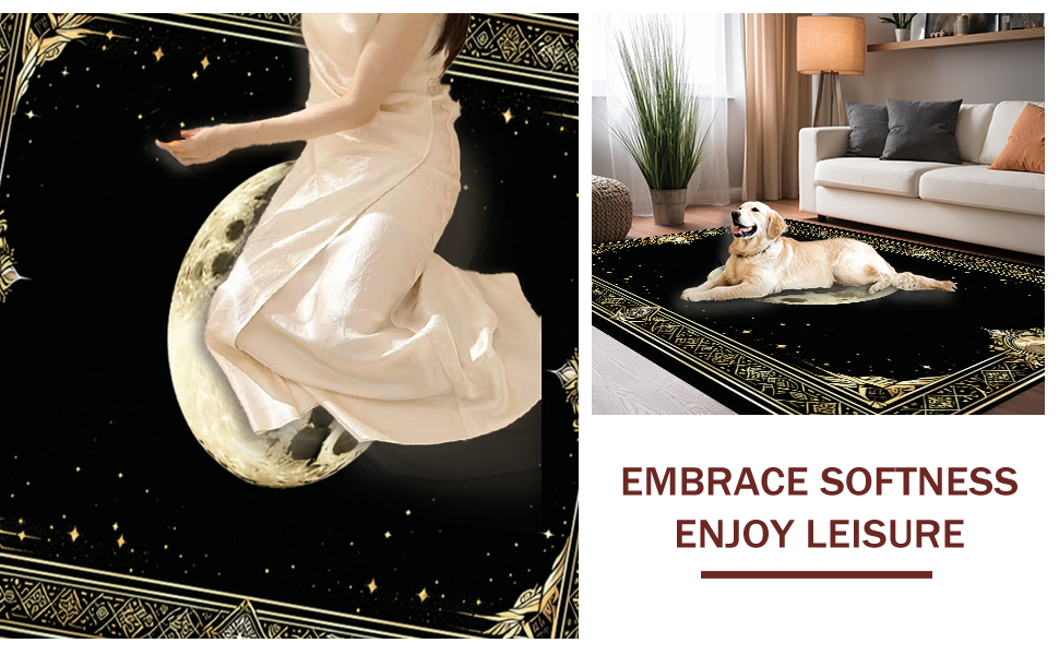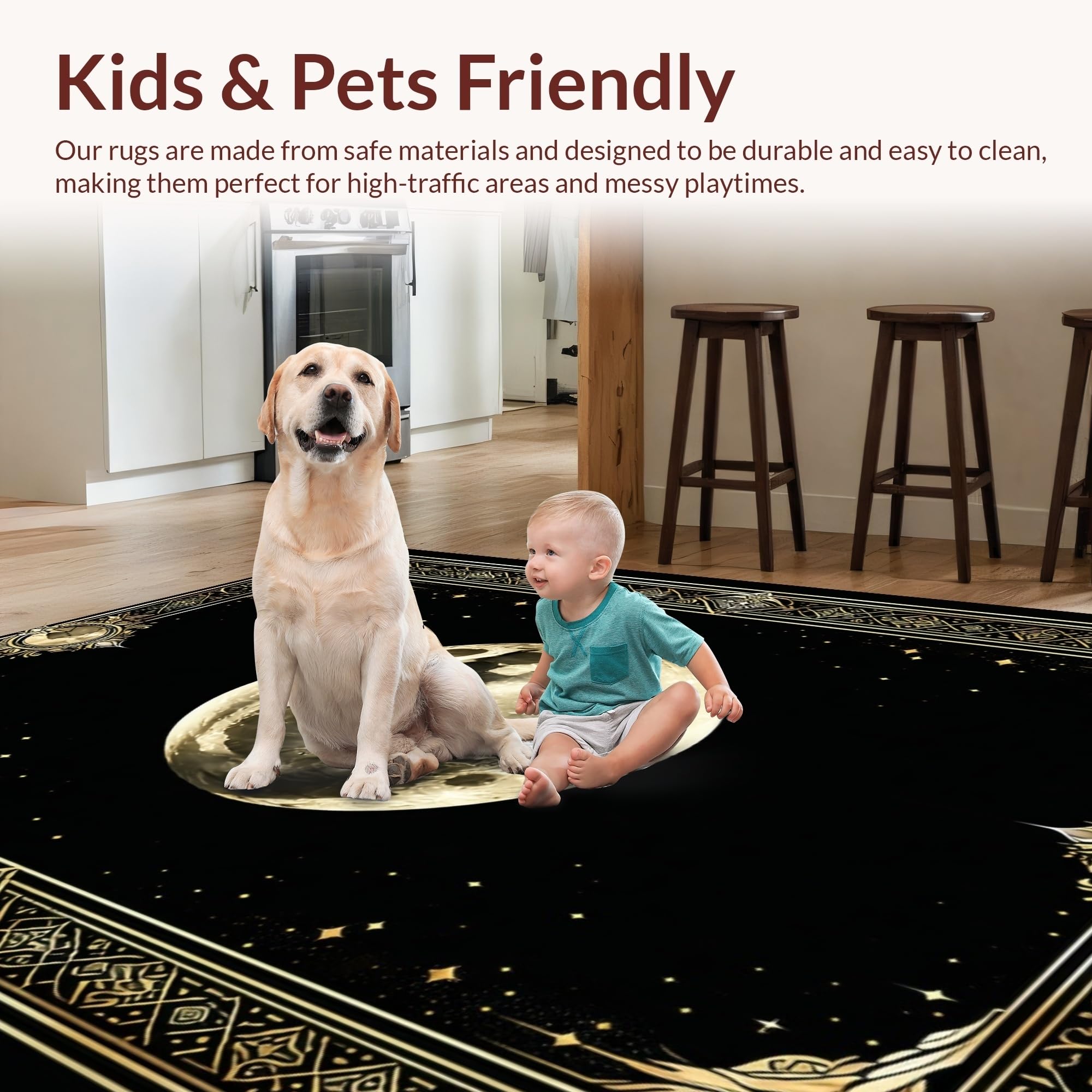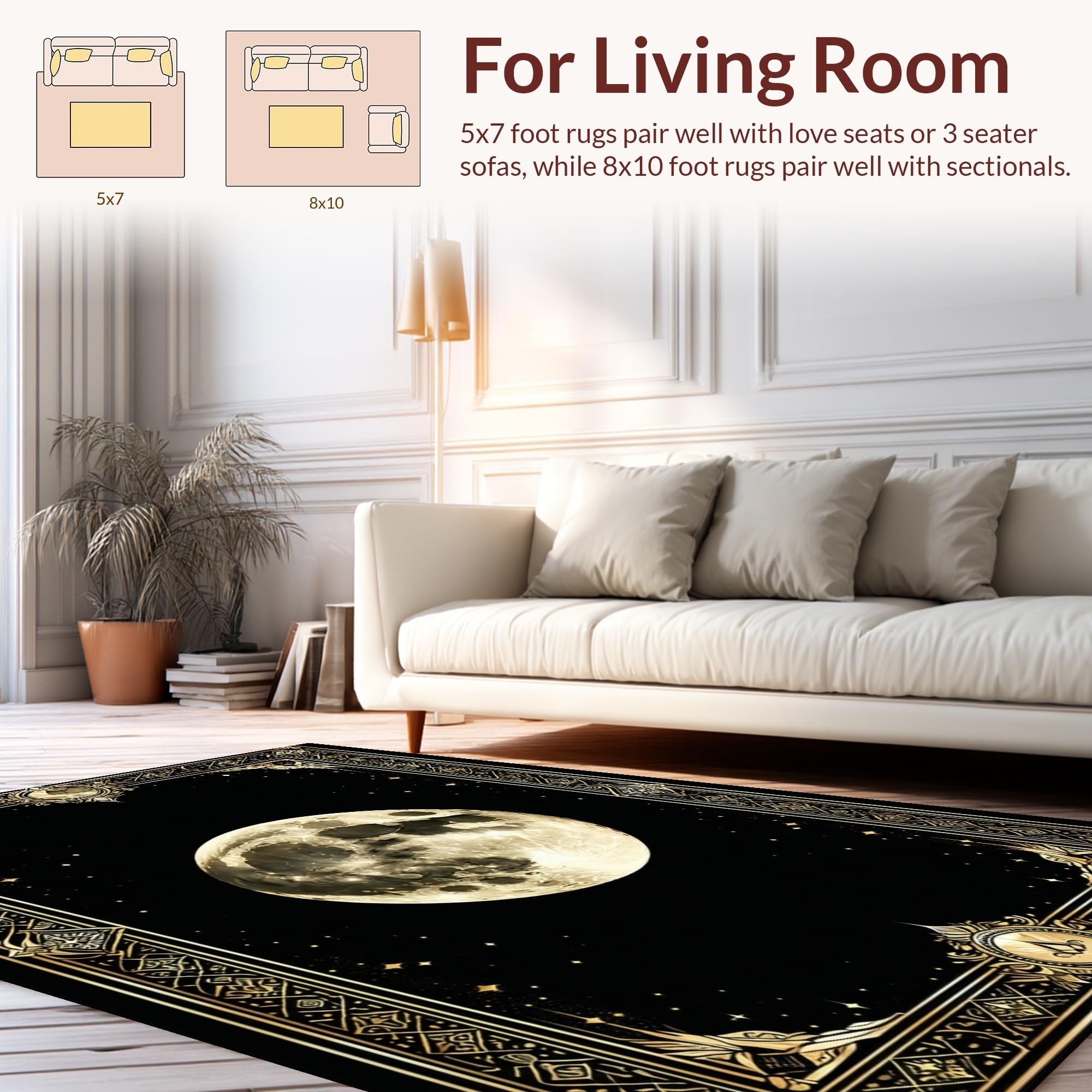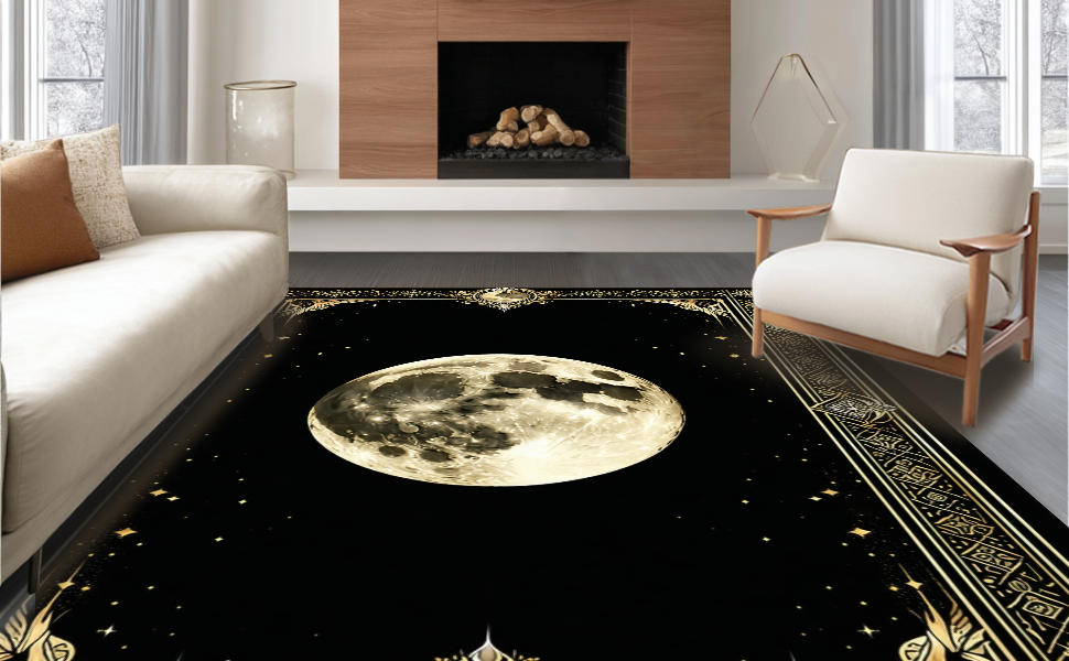 Ultra Soft Area Rug, Non Slip, Stain Resistant, Washable Area Rugs for Living Room, Bedroom, Enchanting Black and White Visuals(Gold) Overview:
