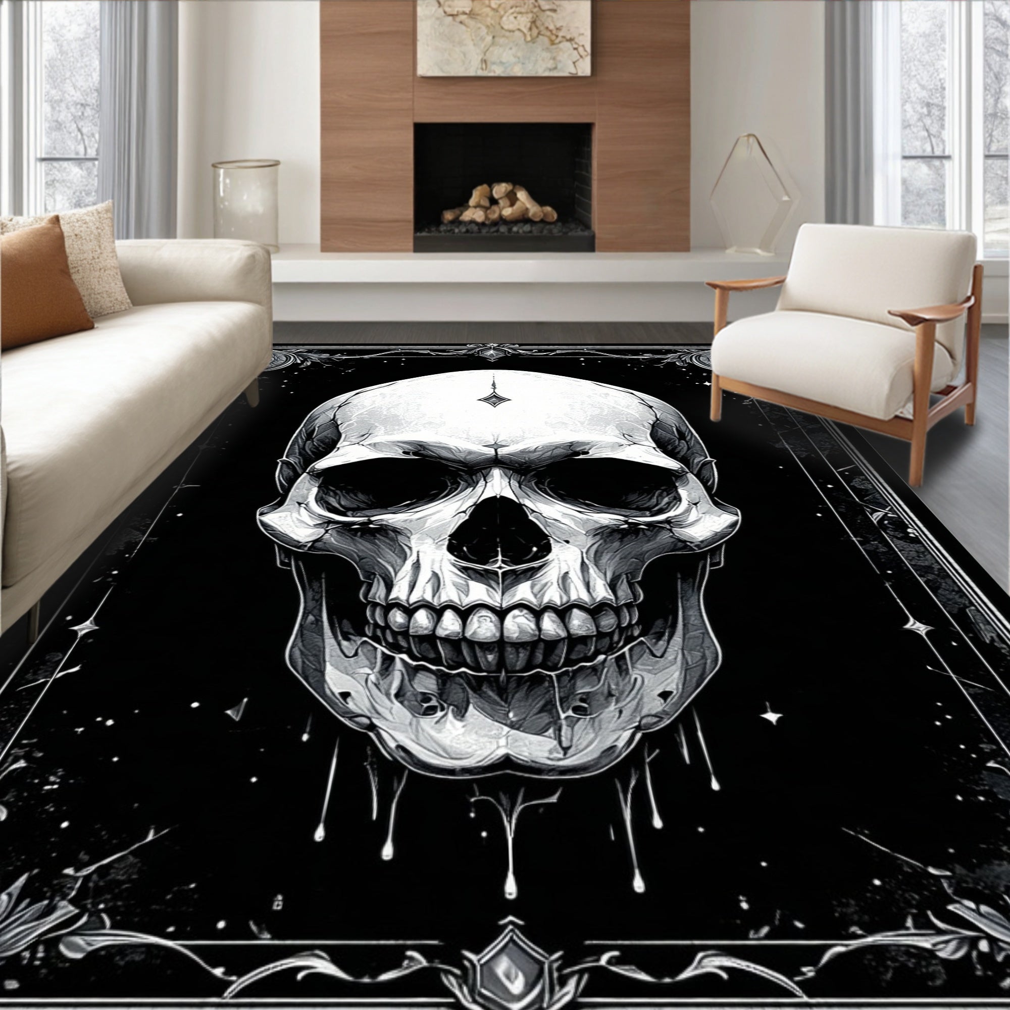 Flatwoven High Traffic Area Rug, Enchanting Black Gothic Elegance, Non Slip, Stain Resistant, Washable Area Rugs for Living Room, Bedroom (Black) Overview: