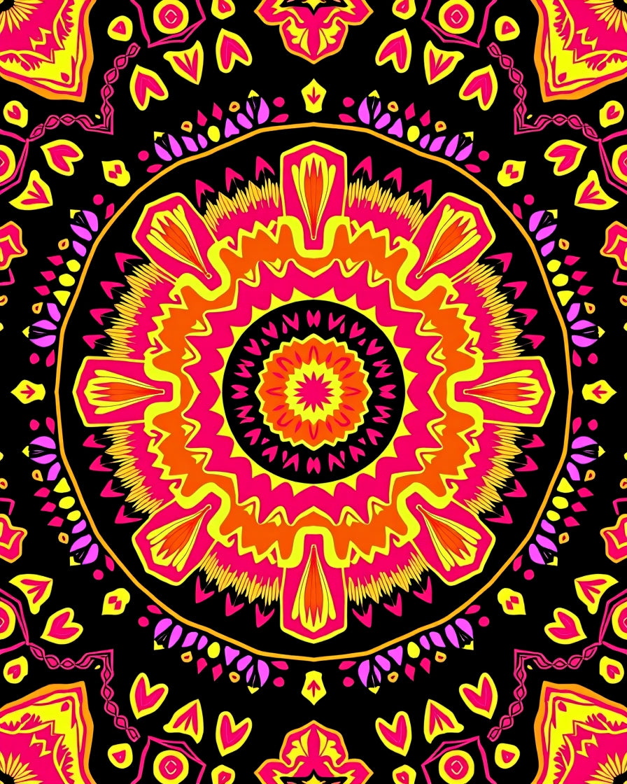 Enchanting Boho Medallion Sunburst Kaleidoscope Throw(Black)