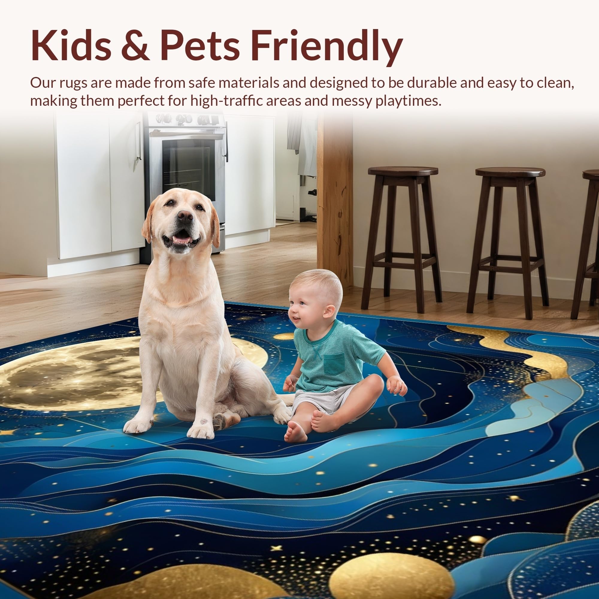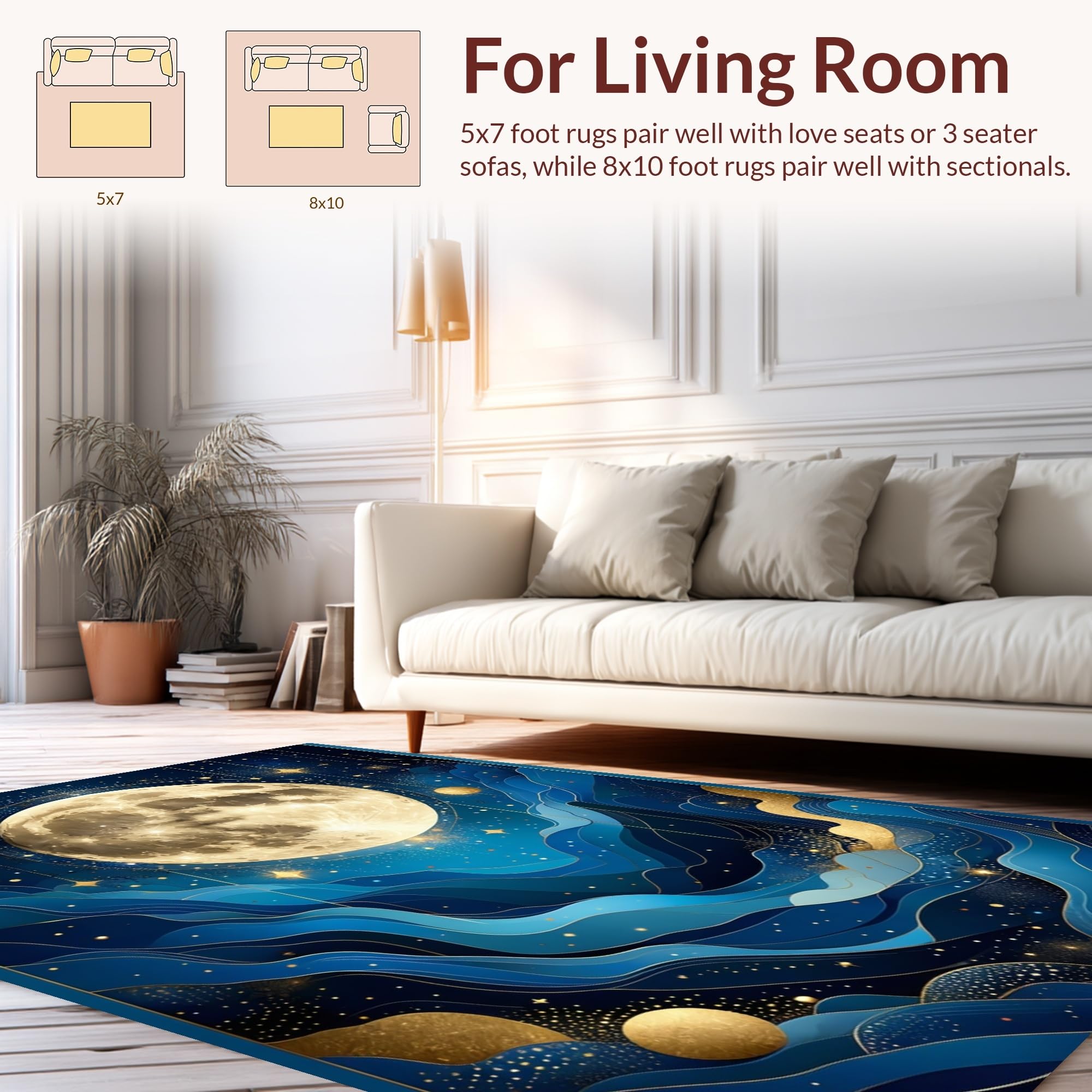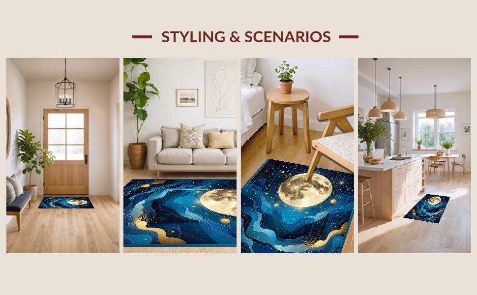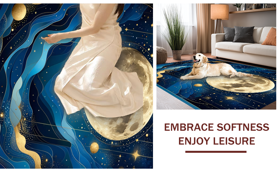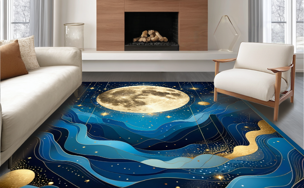 Ultra Soft Area Rug, Non Slip, Stain Resistant, Washable Area Rugs for Living Room, Bedroom, Enchanting Celestial Harmony Visuals(Blue) Overview: