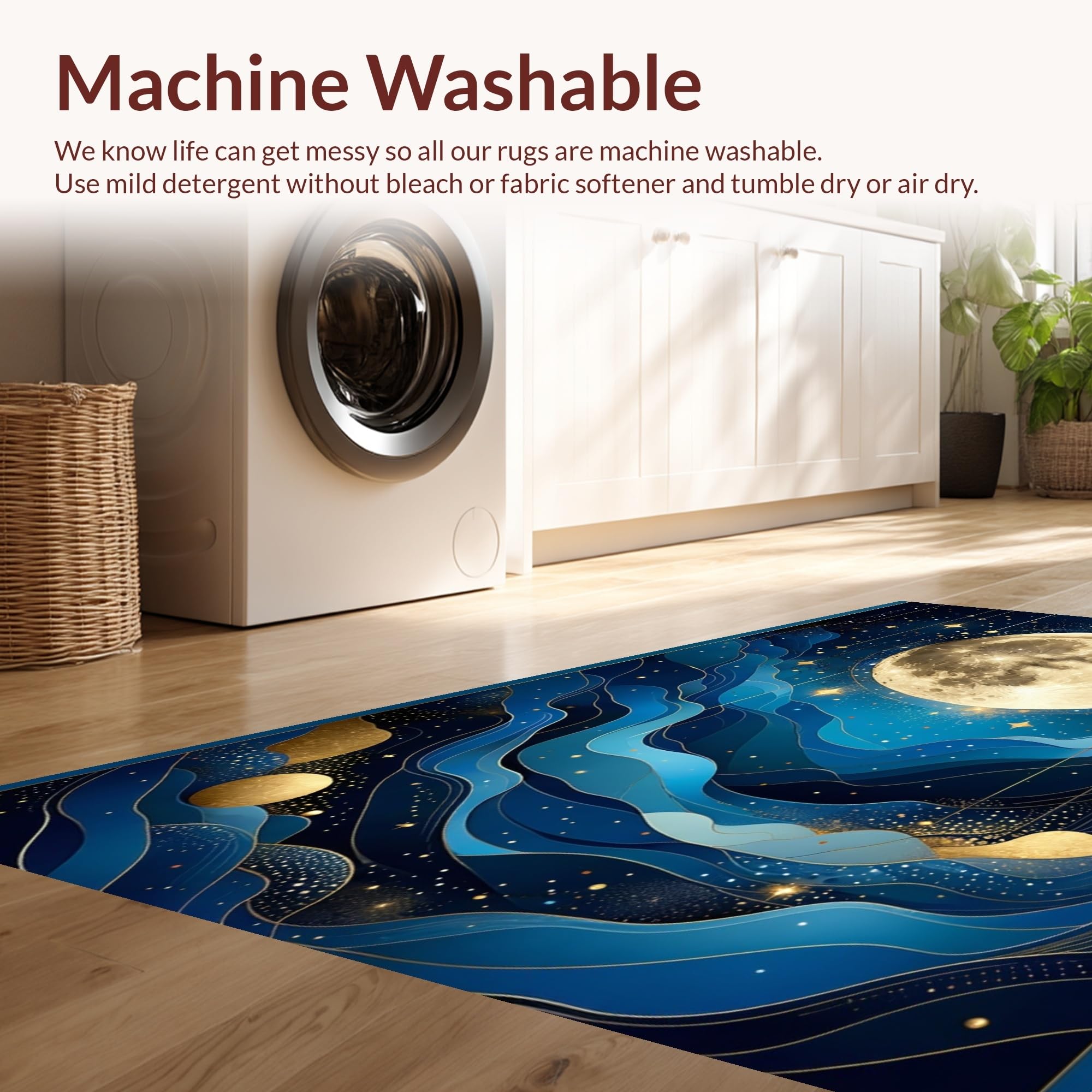 - Machine Washable: Our rugs can be easily thrown in the wash machine.