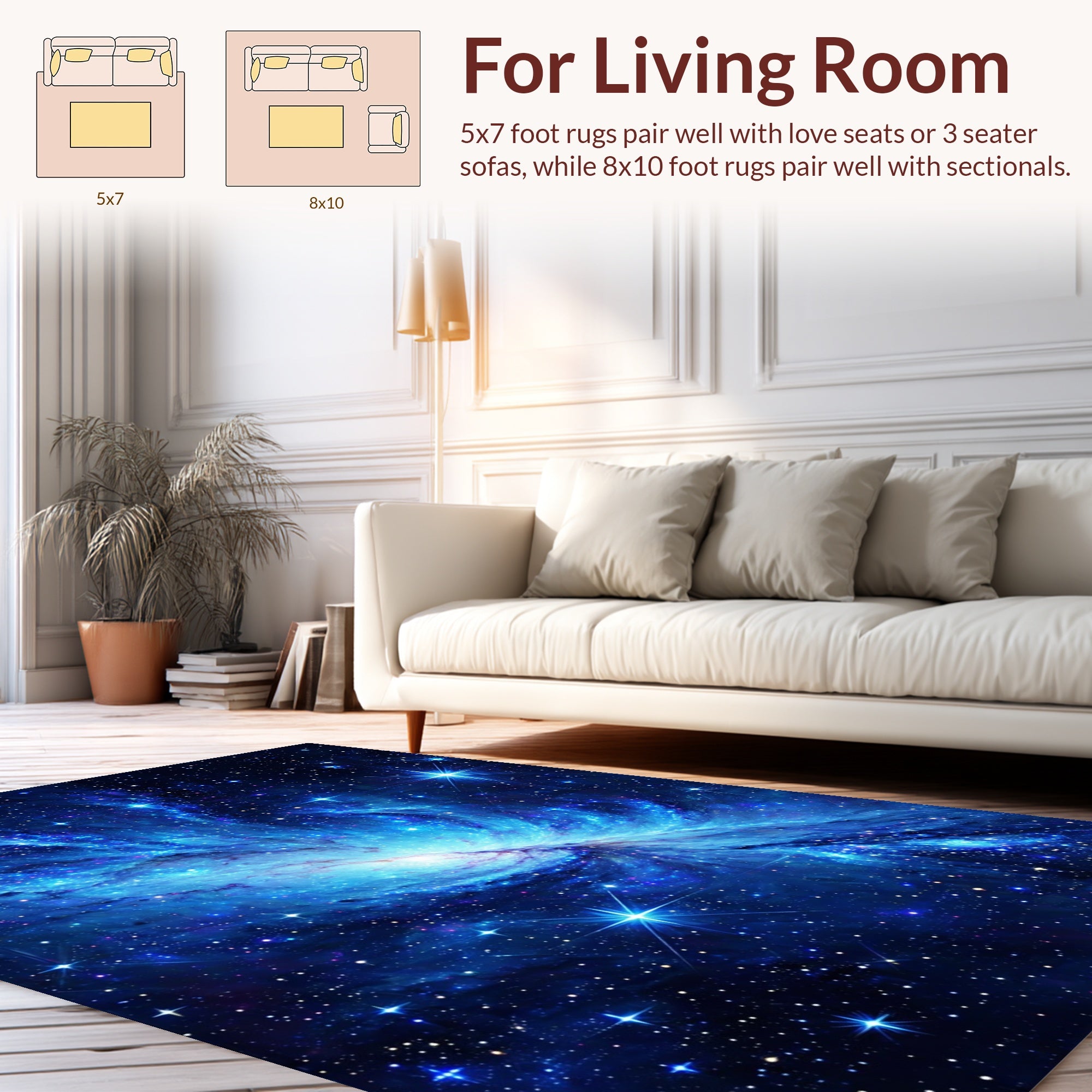 Flatwoven High Traffic Area Rug, Enchanting Ethereal Galaxy Aesthetic, Non Slip, Stain Resistant, Washable Area Rugs for Living Room, Bedroom (Blue) Overview: