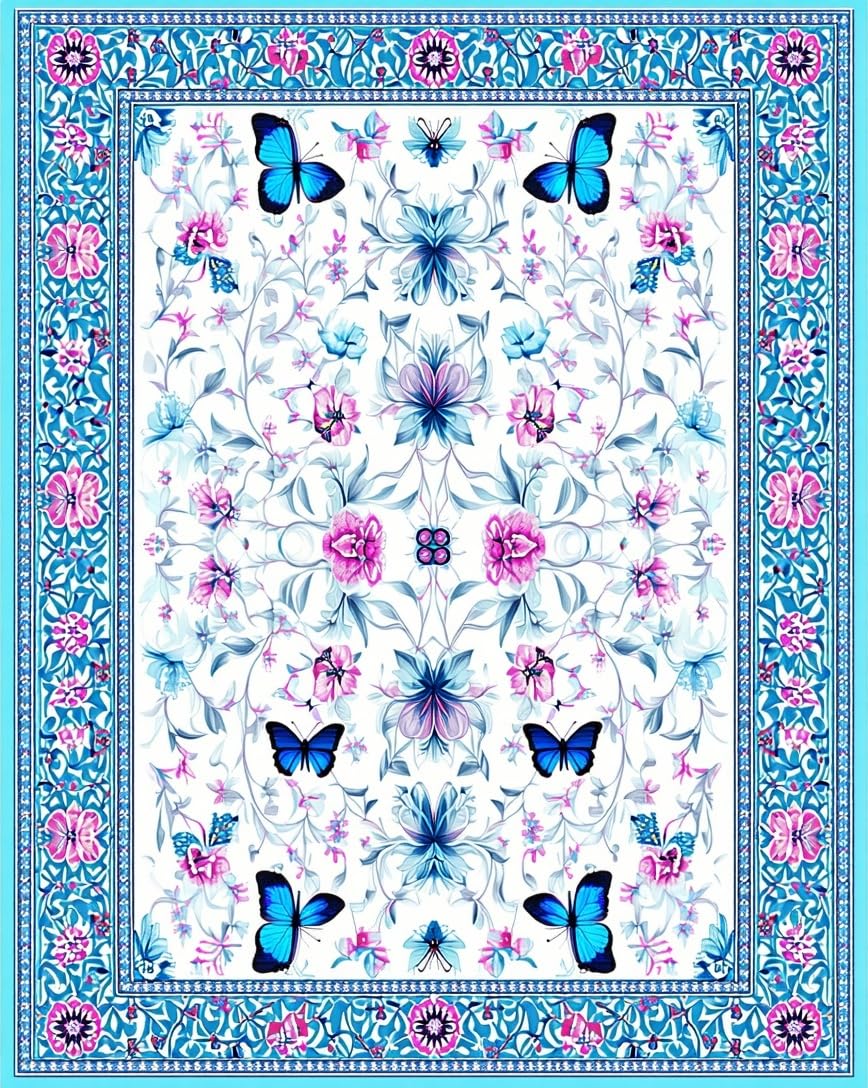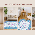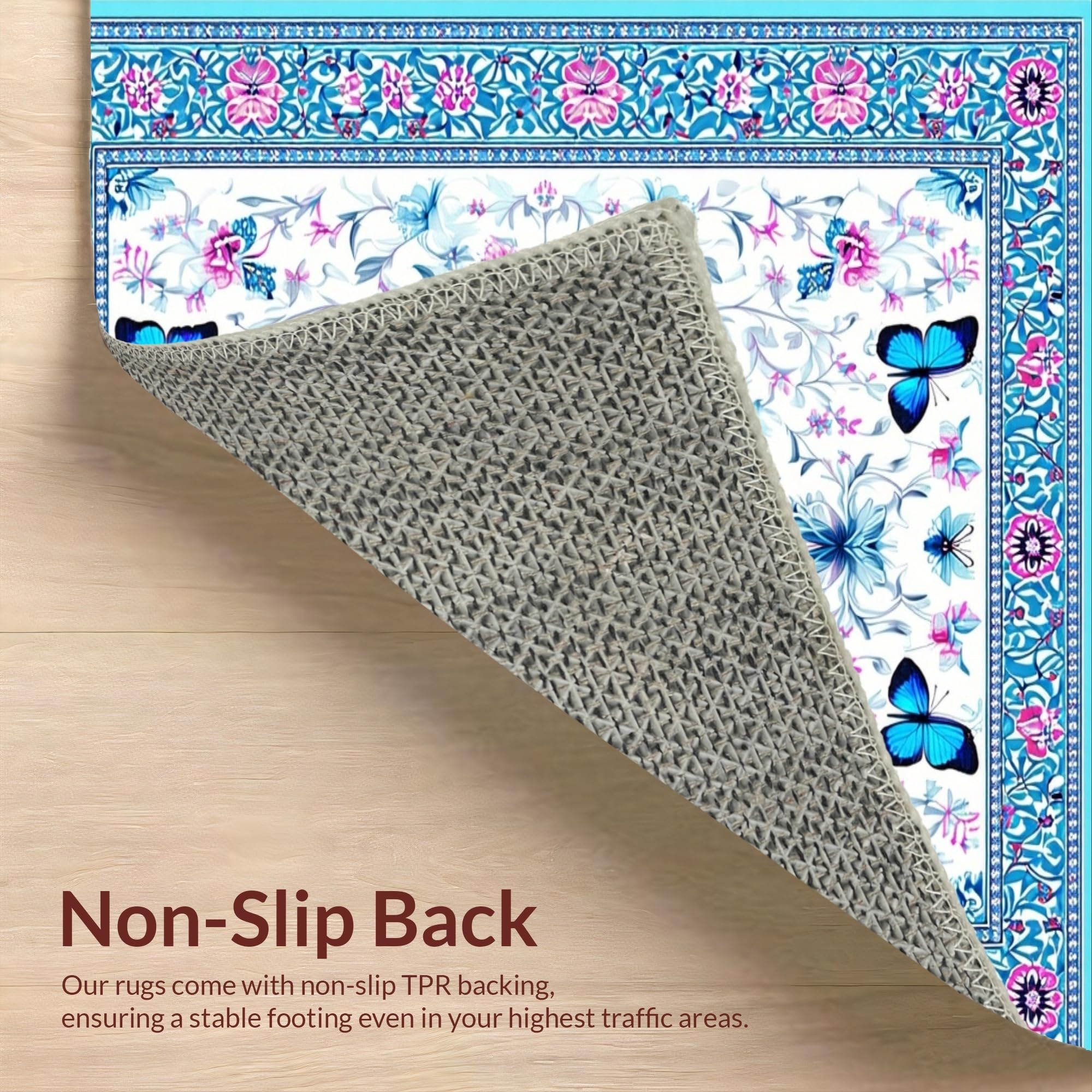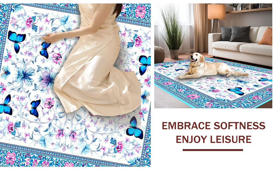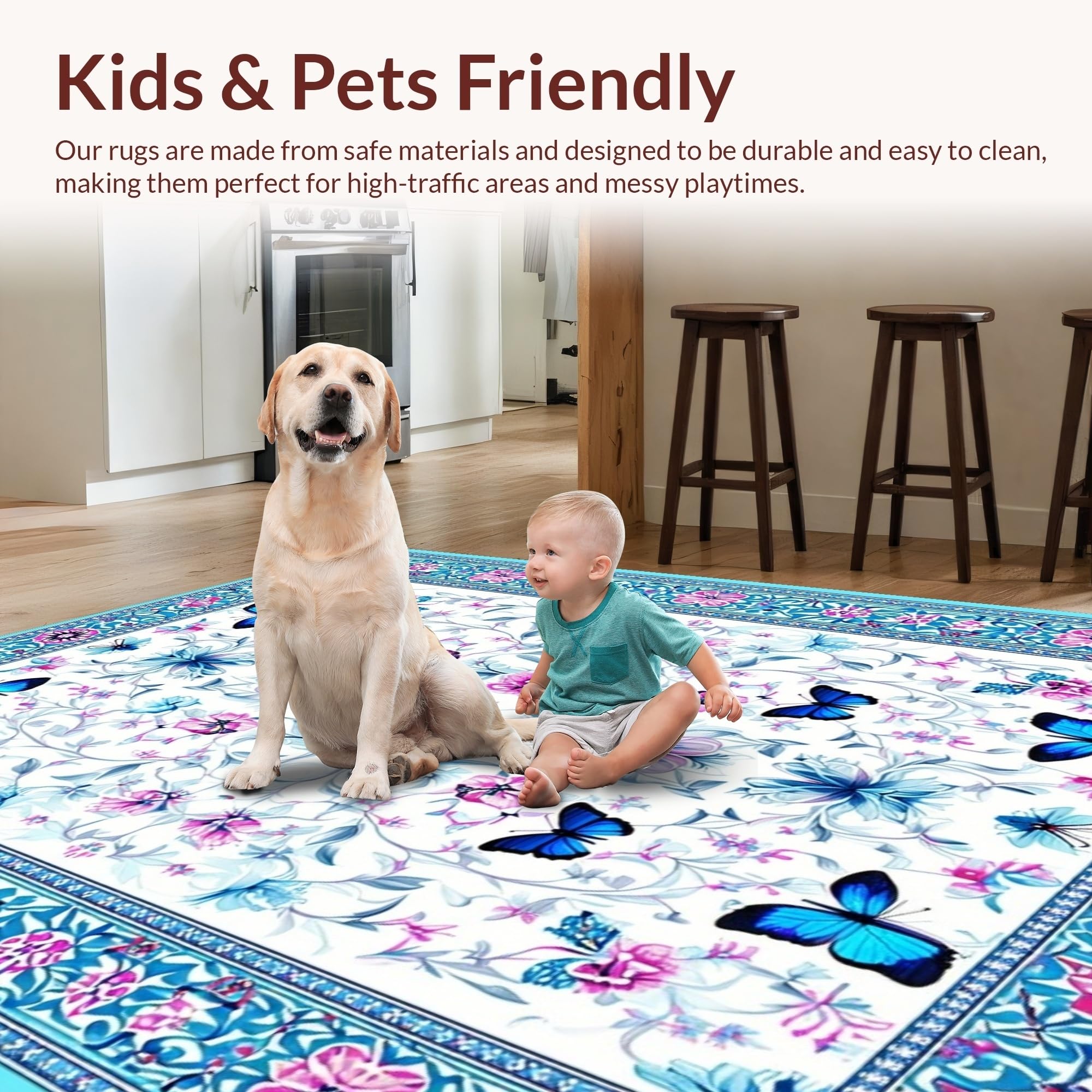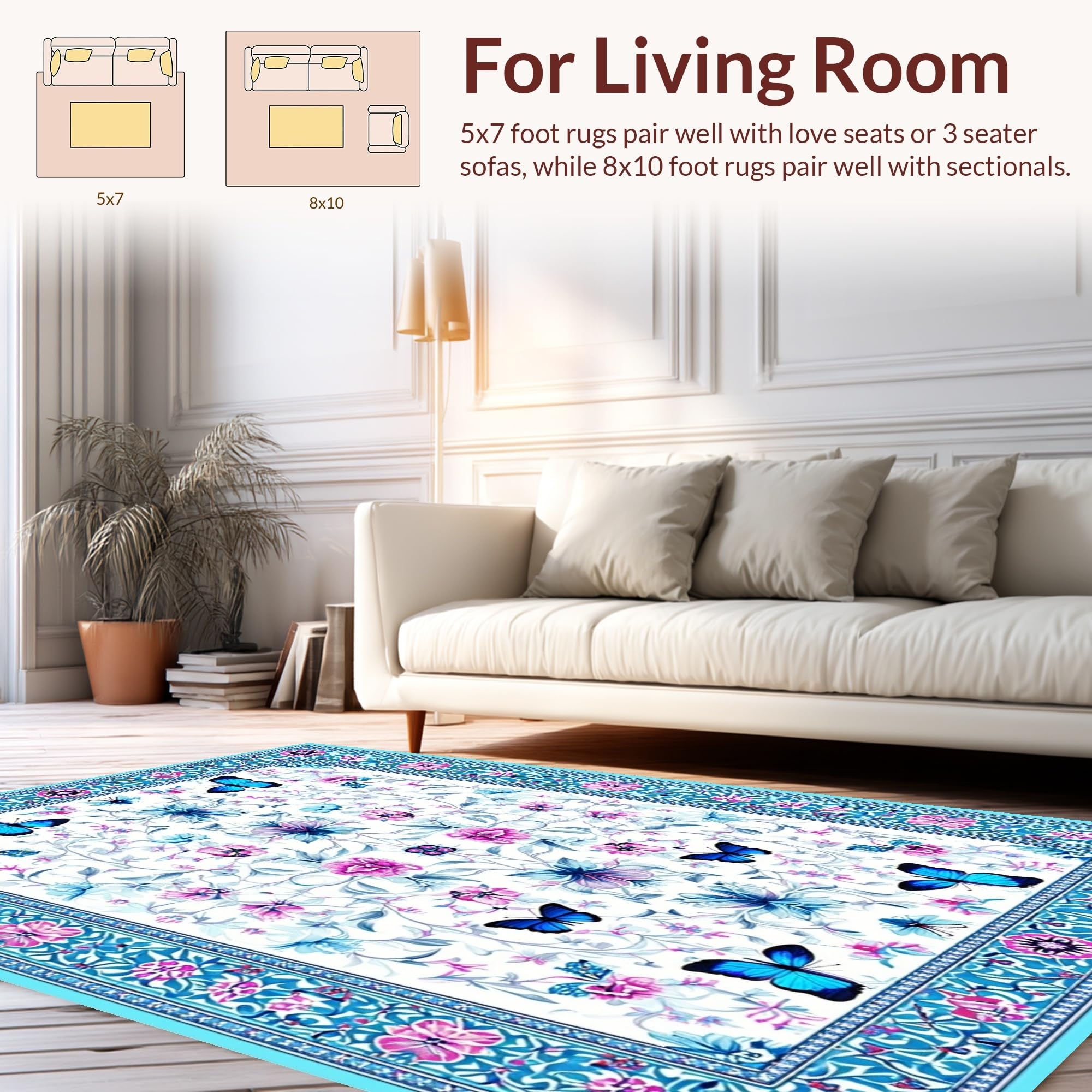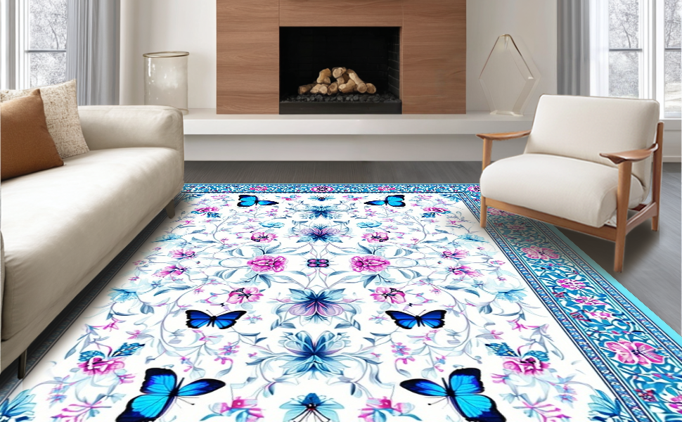 Ultra Soft Area Rug, Non Slip, Stain Resistant, Washable Area Rugs for Living Room, Bedroom, Enchanting Floral Butterfly Fusion(White) Overview: