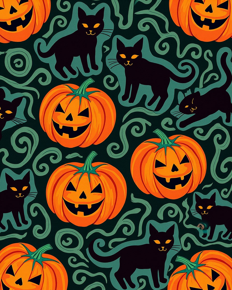 Enchanting Halloween Tapestry with Spiraled Pumpkin and Sleek Cat Silhouettes(Orange)