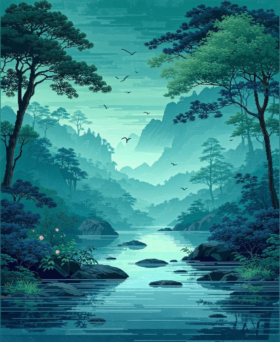Enchanting Illustrated Waterway Theme(Green)