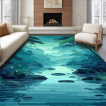 Flatwoven High Traffic Area Rug, Enchanting Illustrated Waterway Theme, Non Slip, Stain Resistant, Washable Area Rugs for Living Room, Bedroom (Green) Overview: