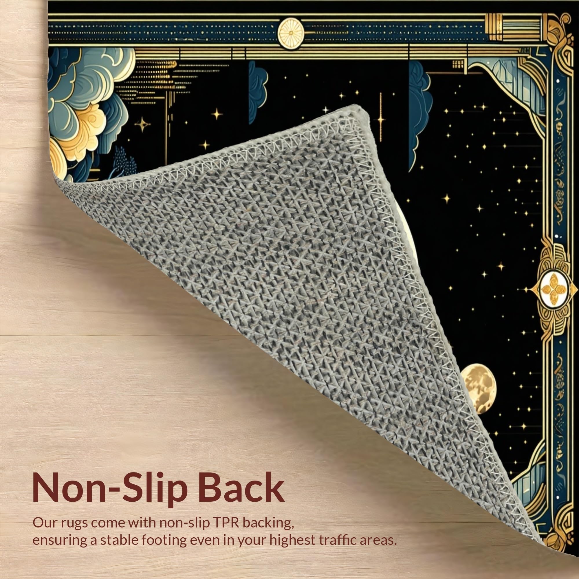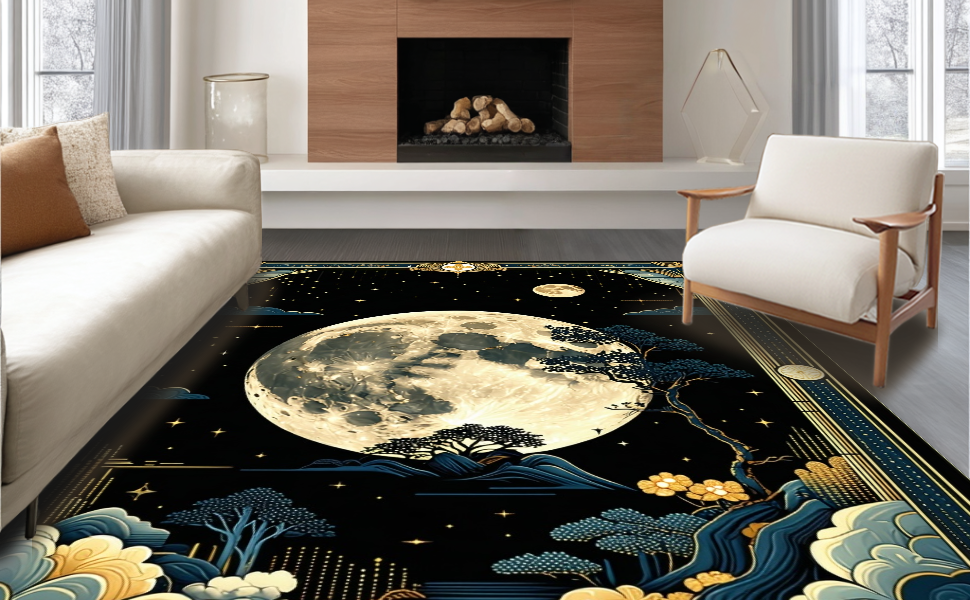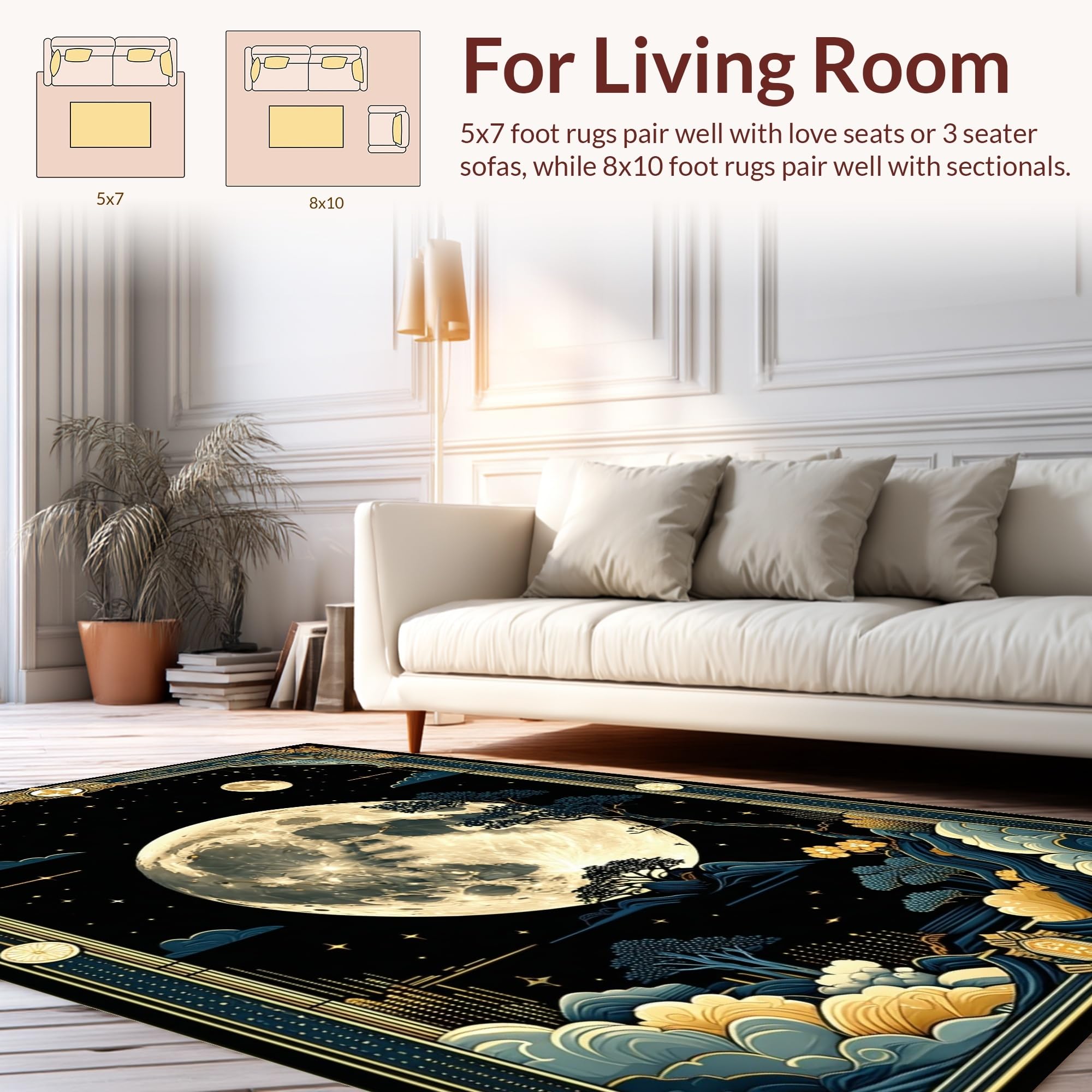 Ultra Soft Area Rug, Non Slip, Stain Resistant, Washable Area Rugs for Living Room, Bedroom, Enchanting Moonlit Boho Design(Gold) Overview: