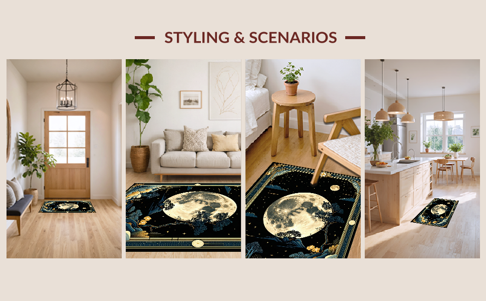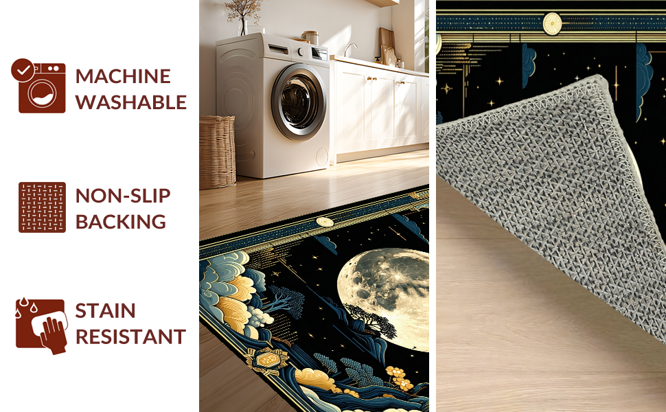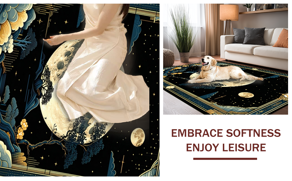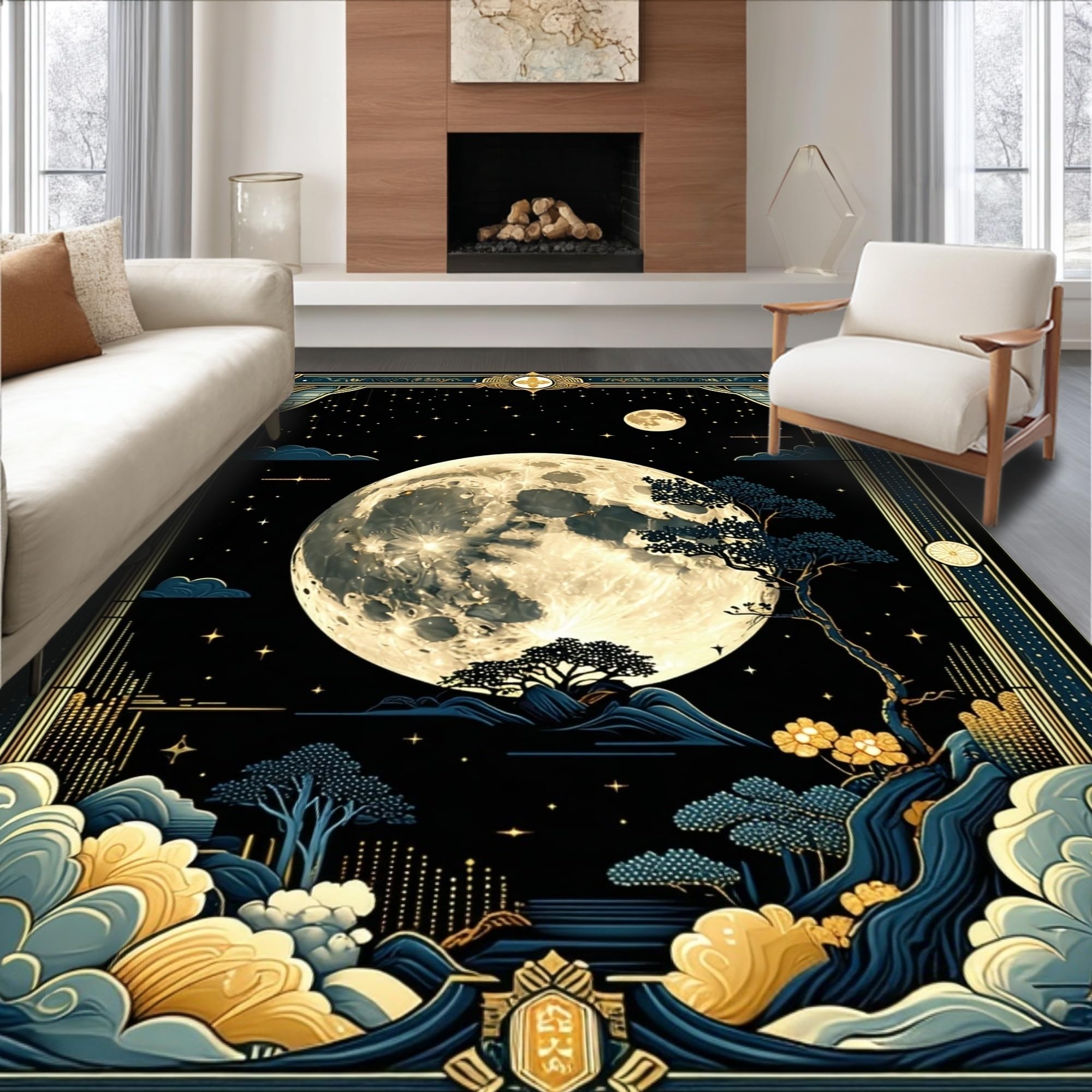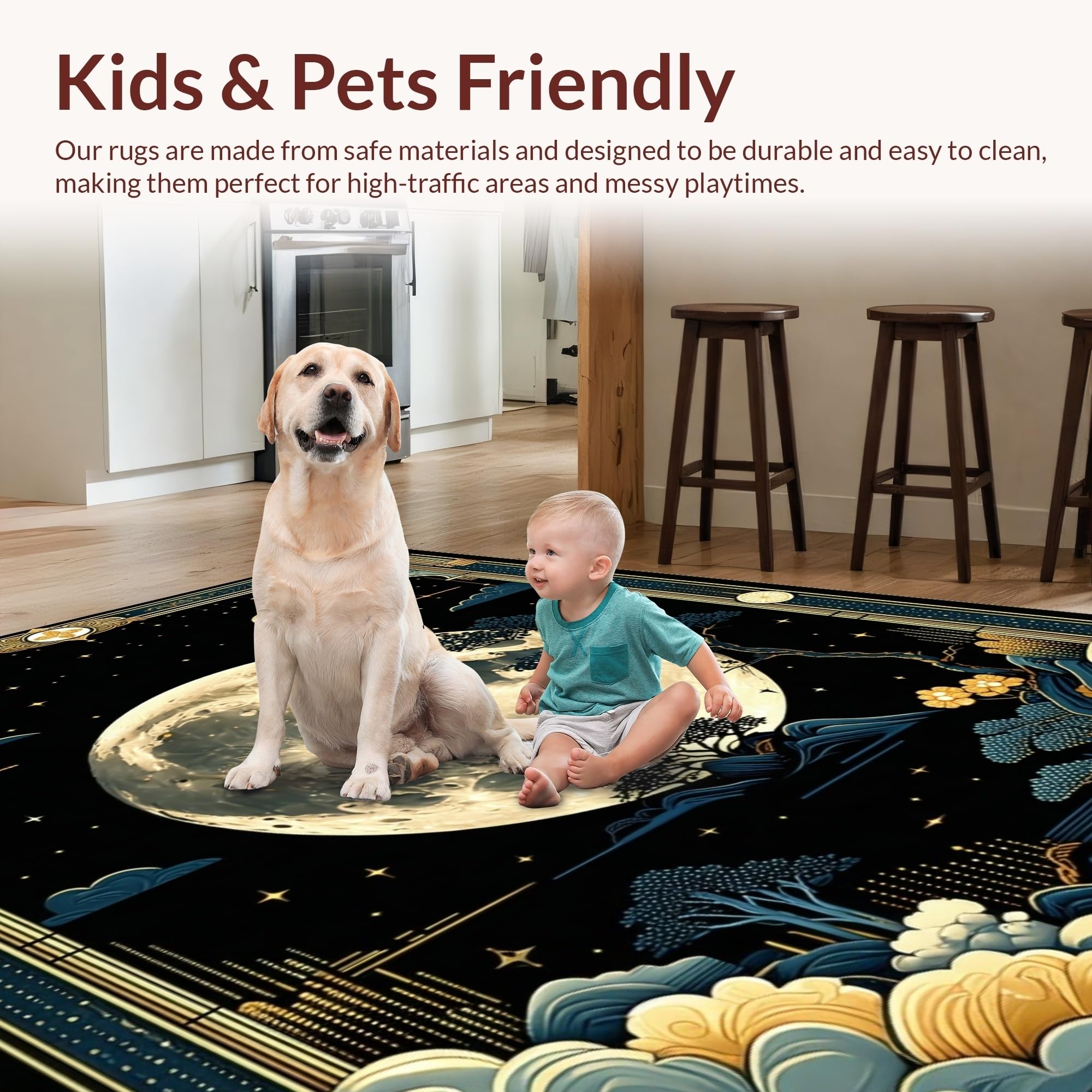 Ultra Soft Area Rug, Non Slip, Stain Resistant, Washable Area Rugs for Living Room, Bedroom, Enchanting Moonlit Boho Design(Gold) Overview: