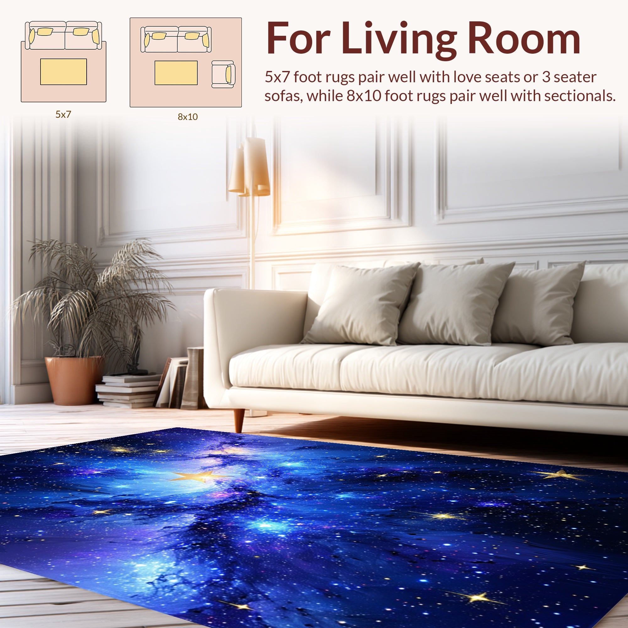 Flatwoven High Traffic Area Rug, Enchanting Radiant Night Sky Motif, Non Slip, Stain Resistant, Washable Area Rugs for Living Room, Bedroom (Blue) Overview: