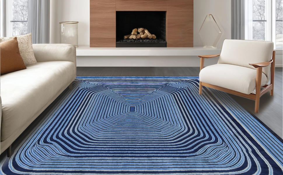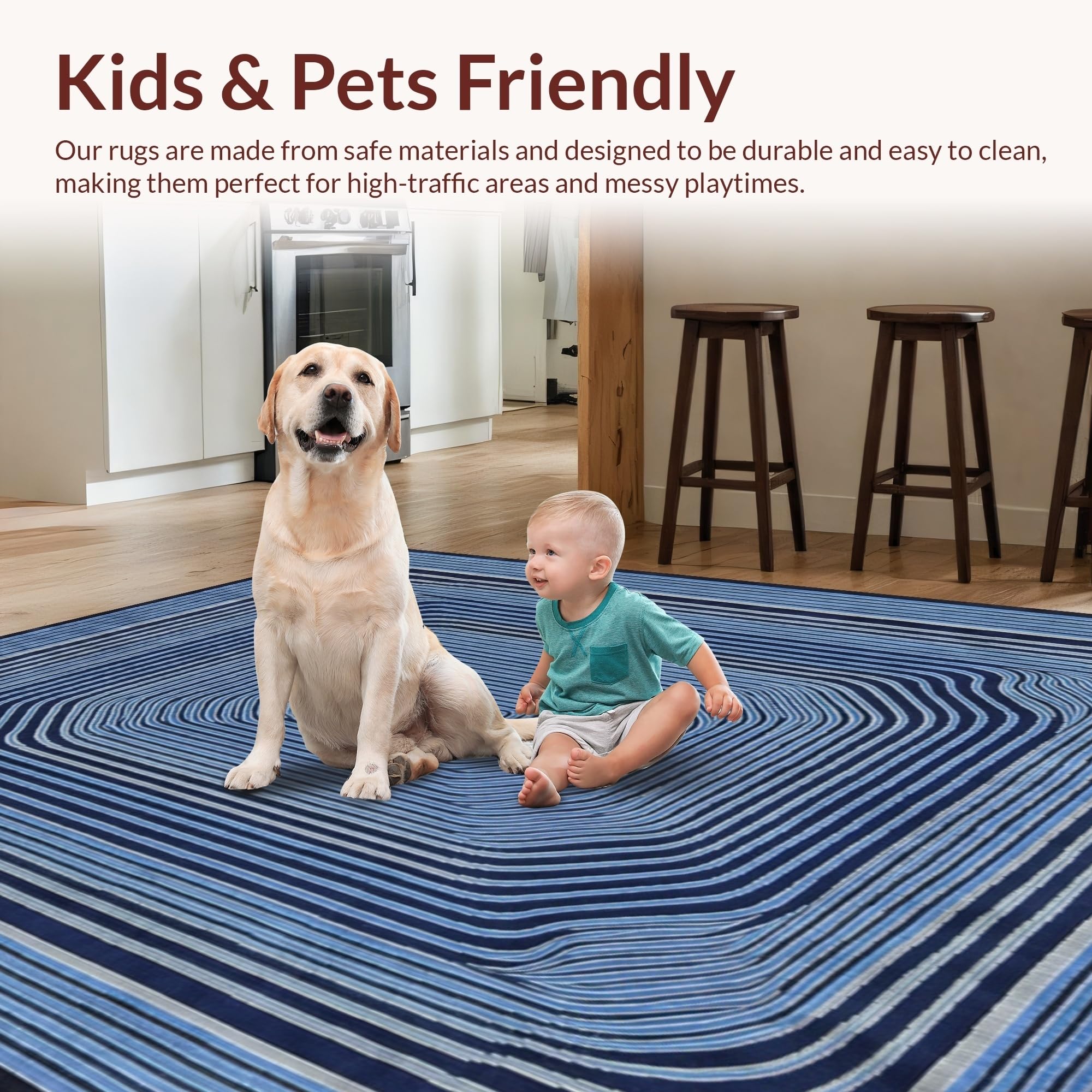 Ultra Soft Area Rug, Non Slip, Stain Resistant, Washable Area Rugs for Living Room, Bedroom, Energetic Abstract Color Burst(Blue) Overview: