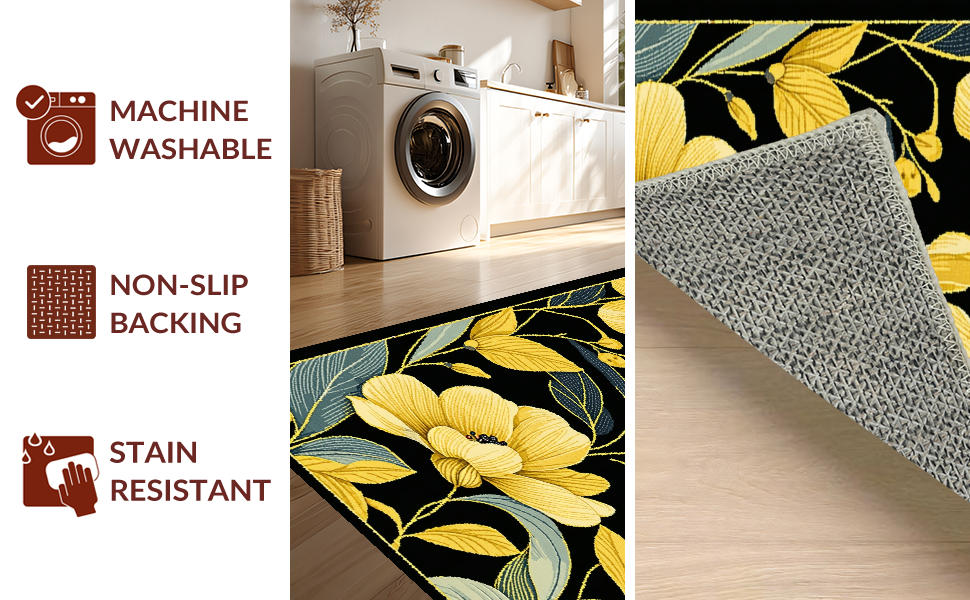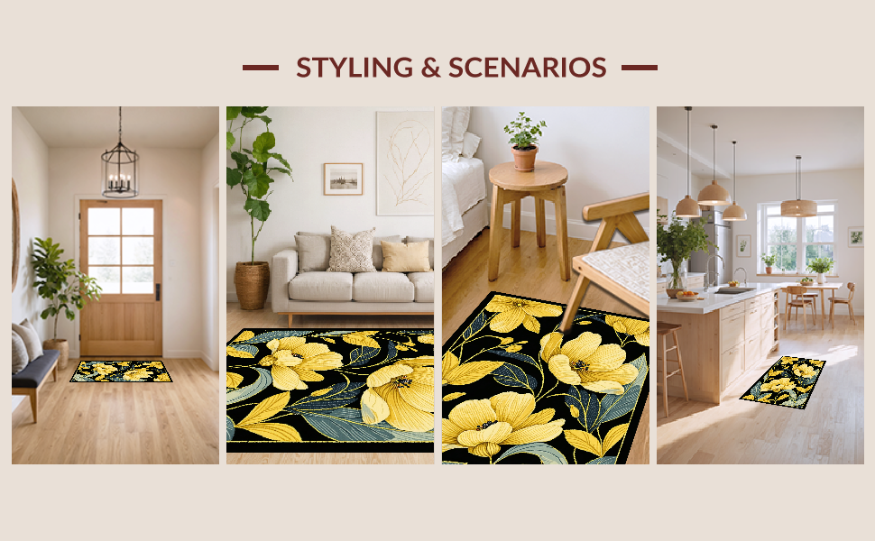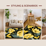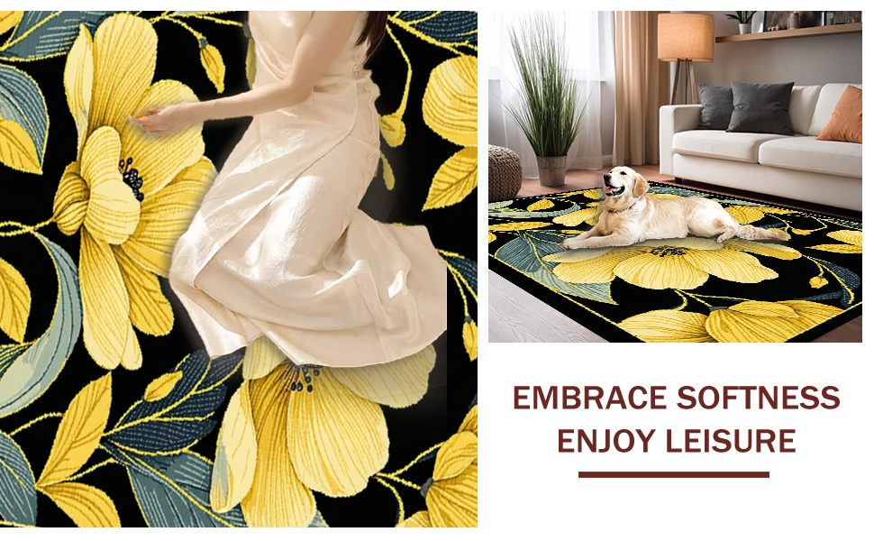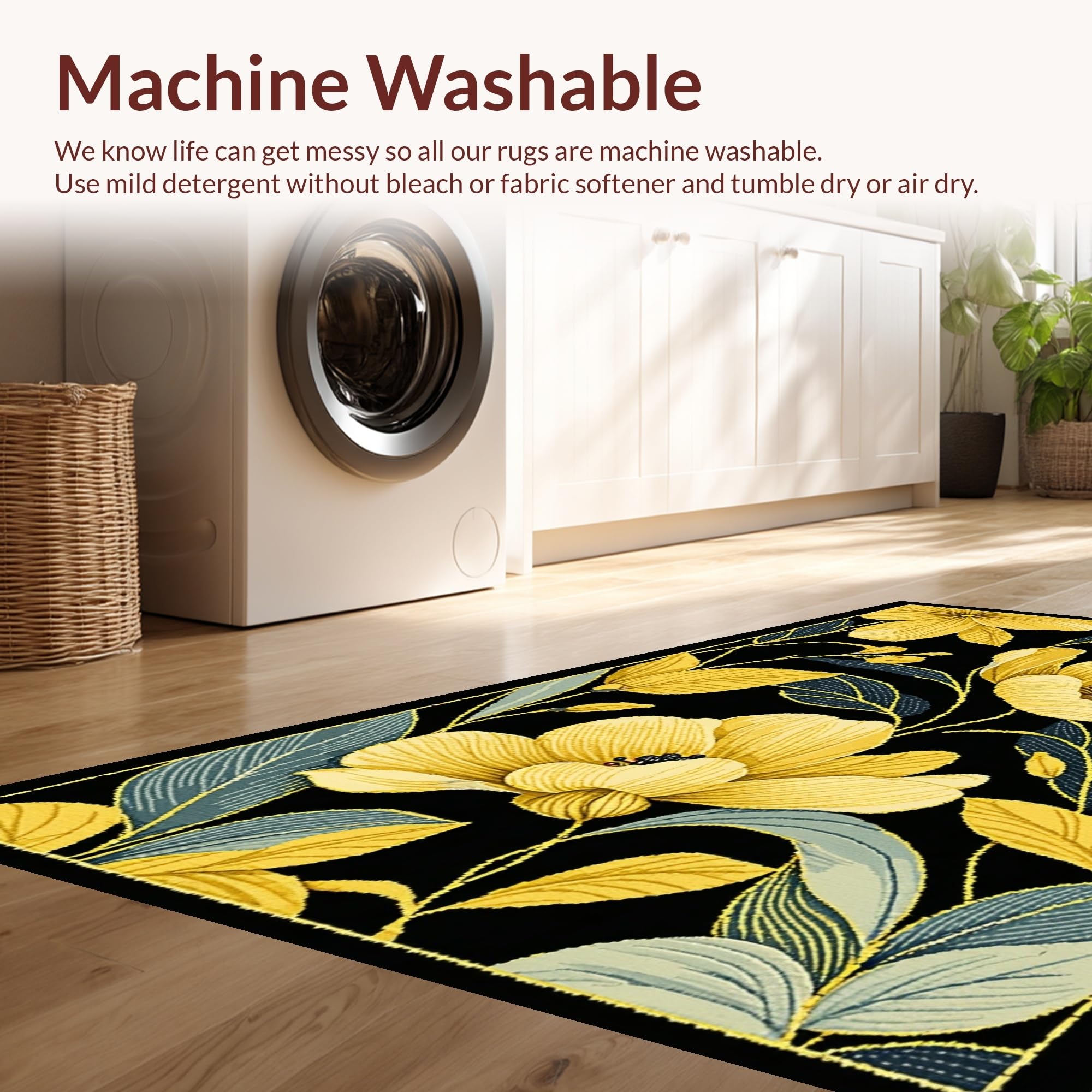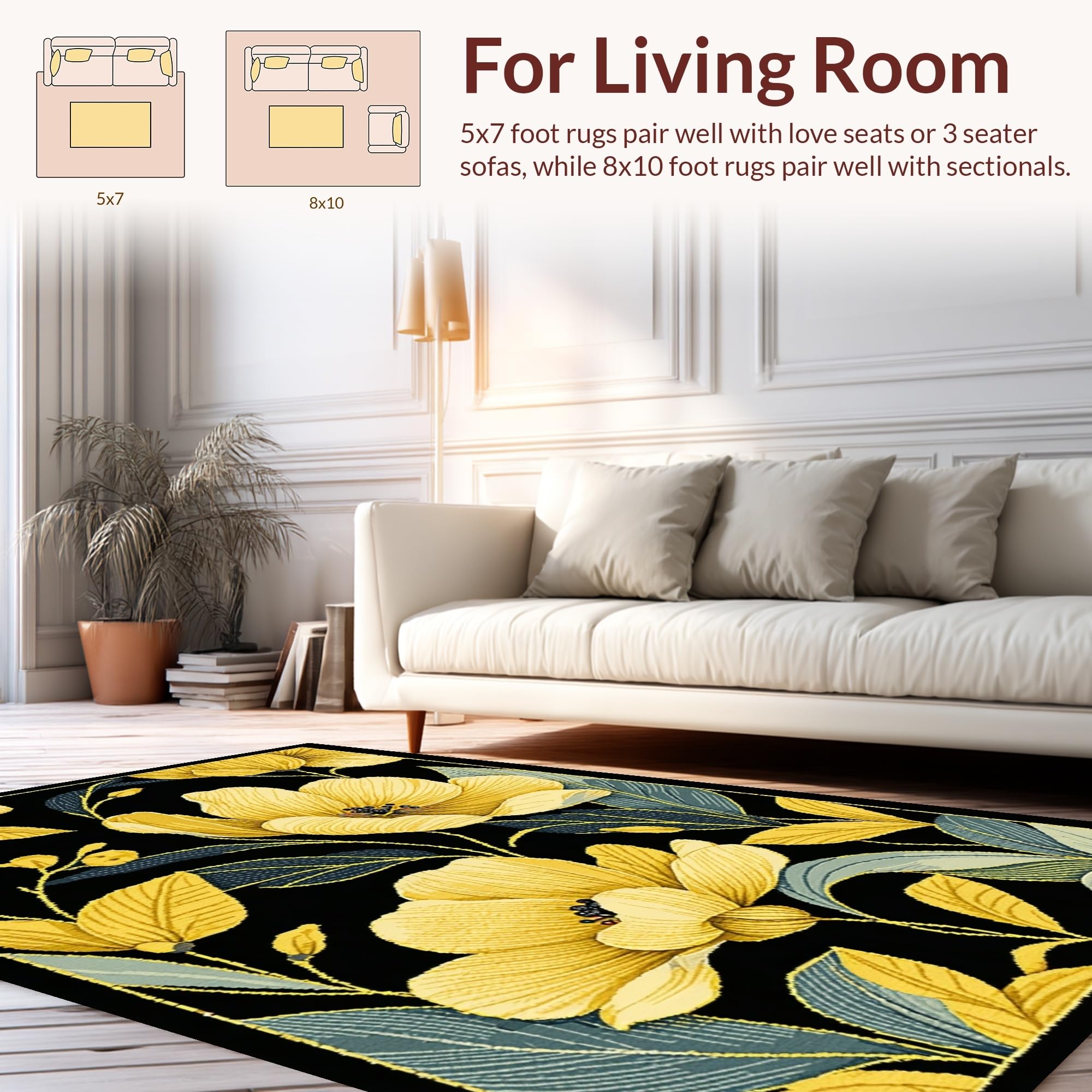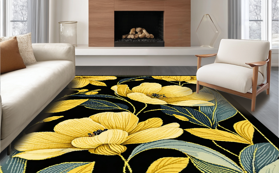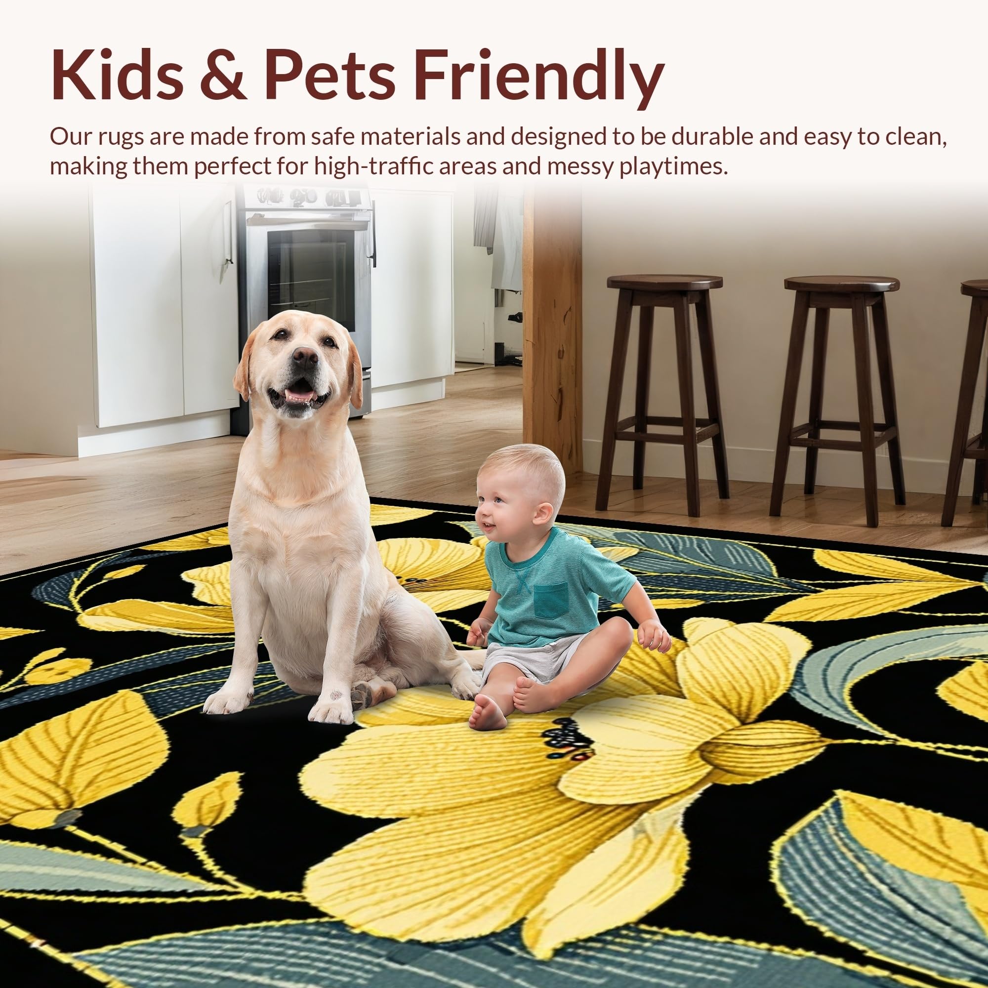 Ultra Soft Area Rug, Non Slip, Stain Resistant, Washable Area Rugs for Living Room, Bedroom, Energetic Bright Floral Fusion(Gold) Overview: