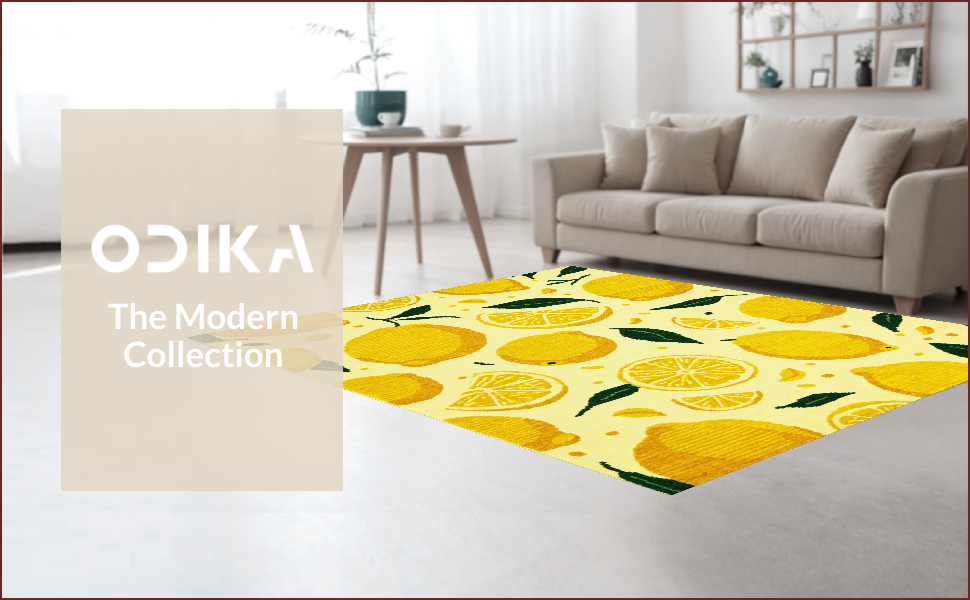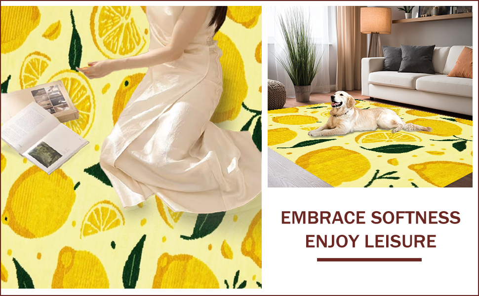 Ultra Soft Area Rug, Non Slip, Stain Resistant, Washable Area Rugs for Living Room, Bedroom, Energetic Fruit Mosaic Inspiration(Yellow) Overview: