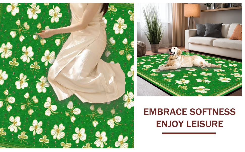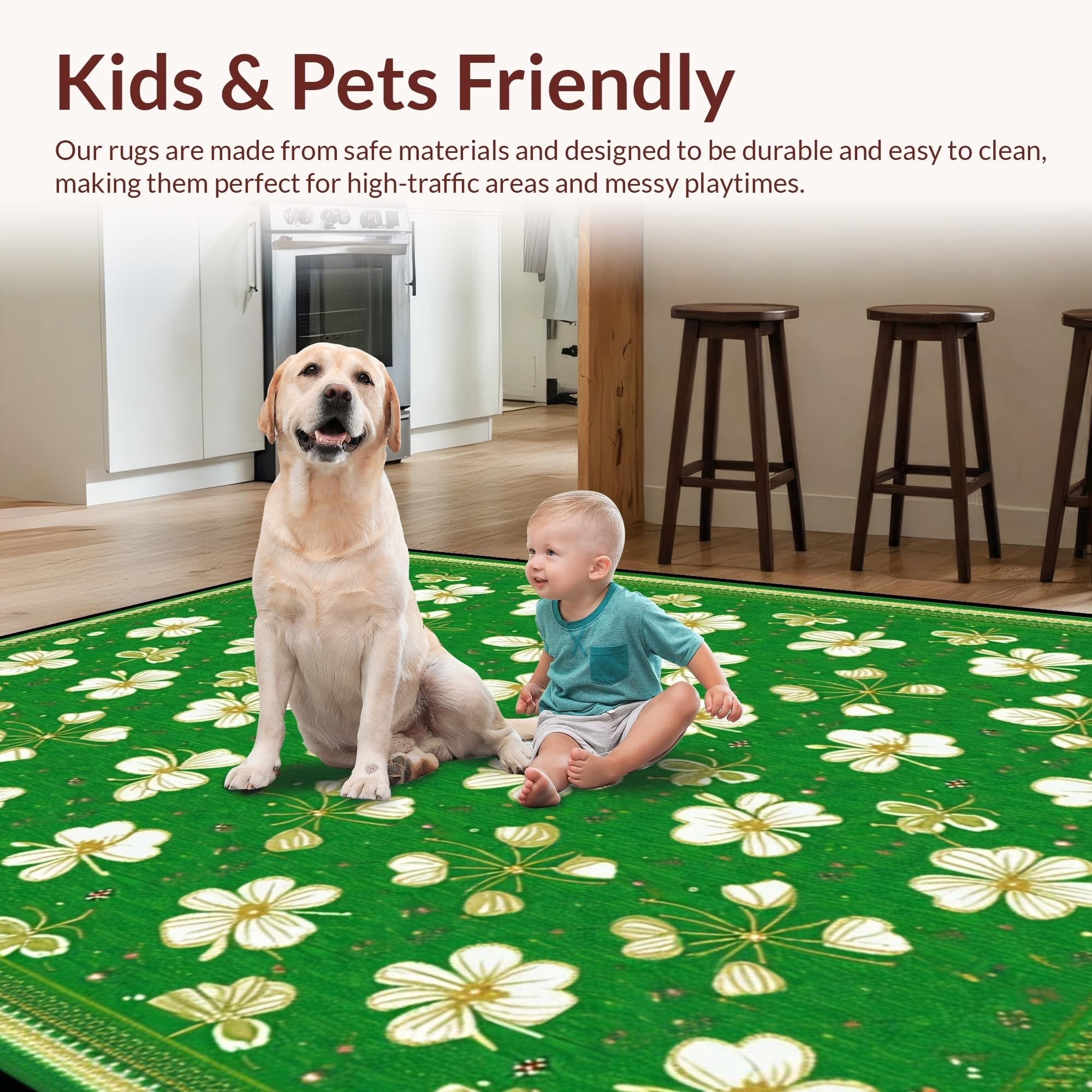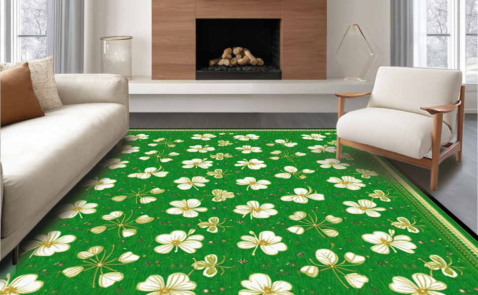 Ultra Soft Area Rug, Non Slip, Stain Resistant, Washable Area Rugs for Living Room, Bedroom, Energetic Gnome Festivity Style(Green) Overview: