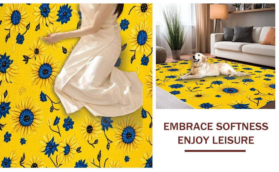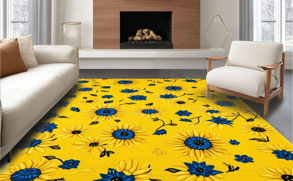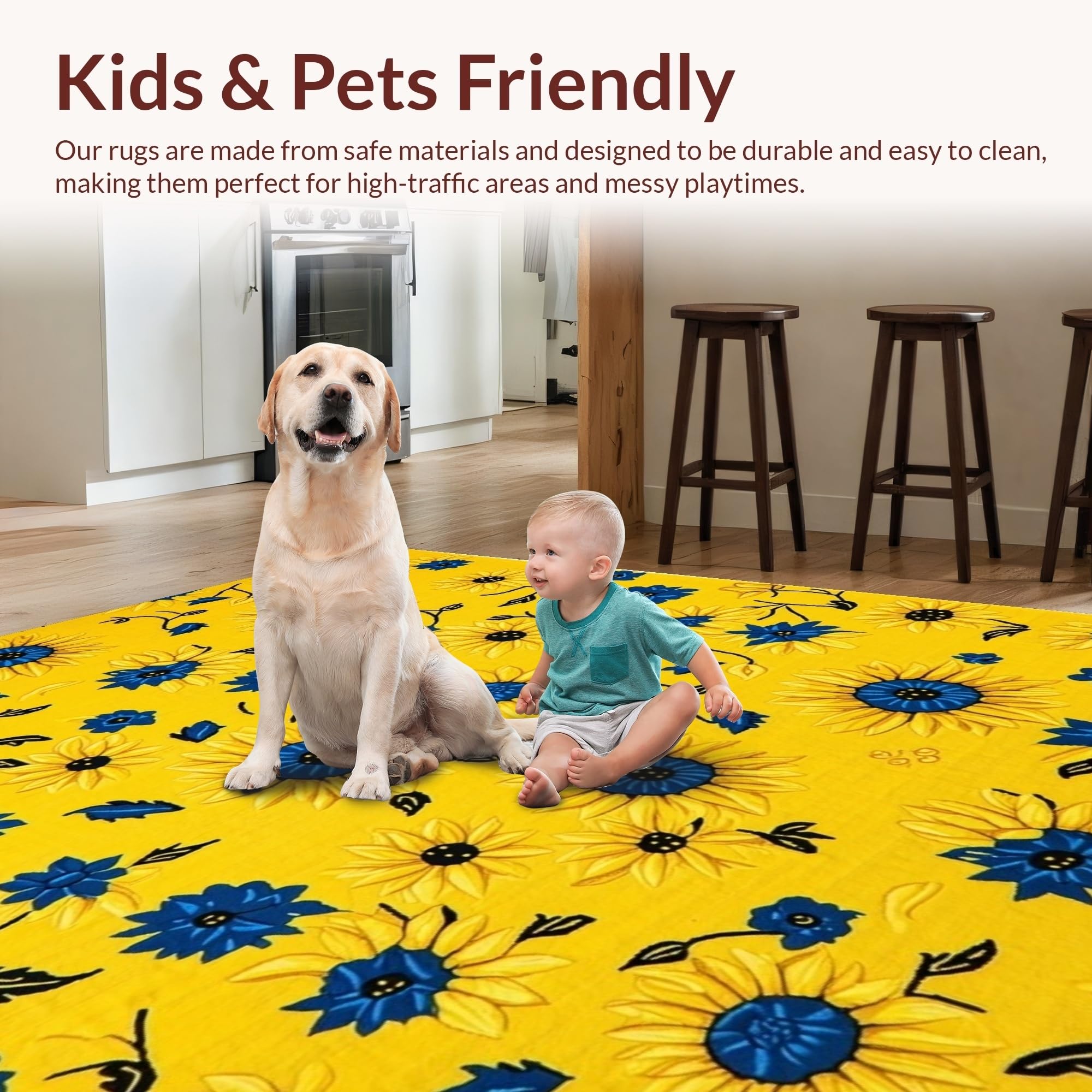 Ultra Soft Area Rug, Non Slip, Stain Resistant, Washable Area Rugs for Living Room, Bedroom, Energetic Sunshine Motif(Yellow) Overview: