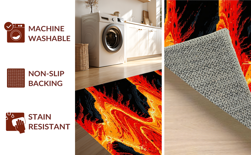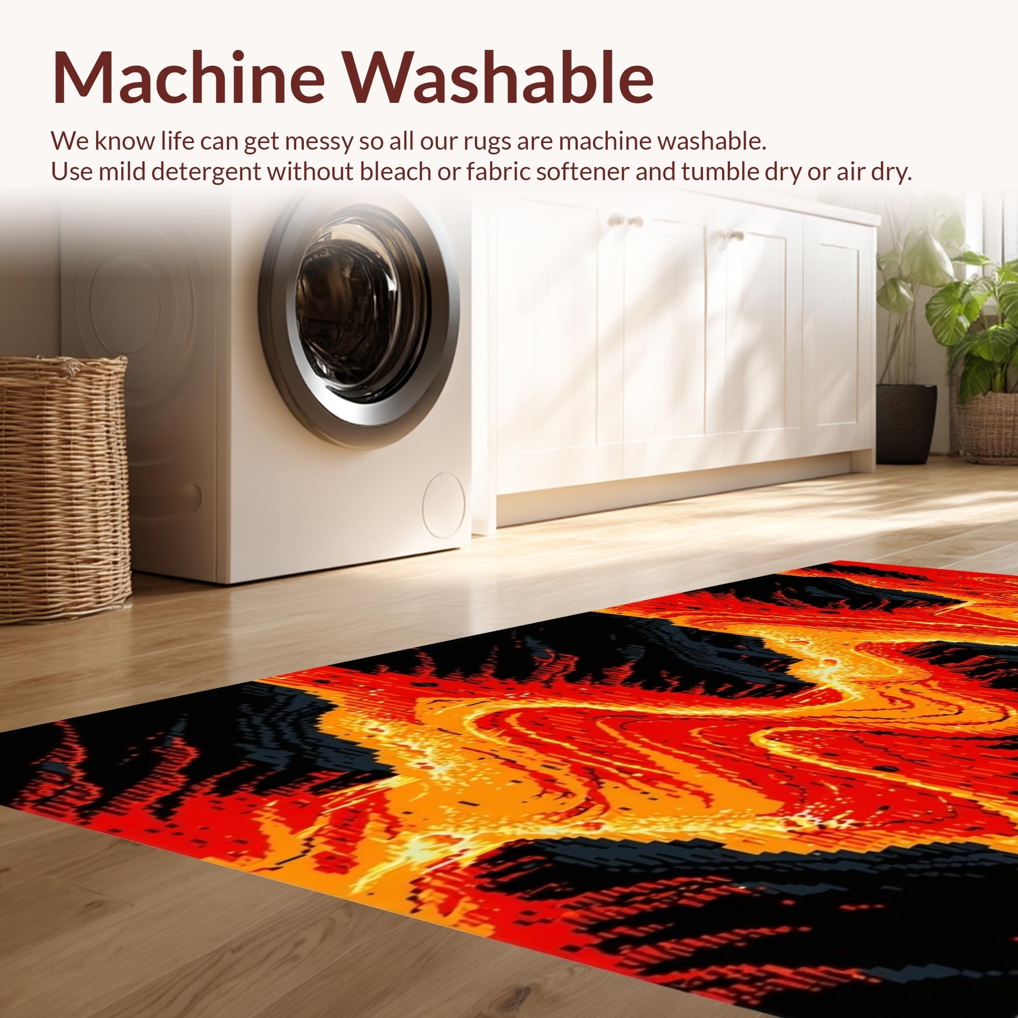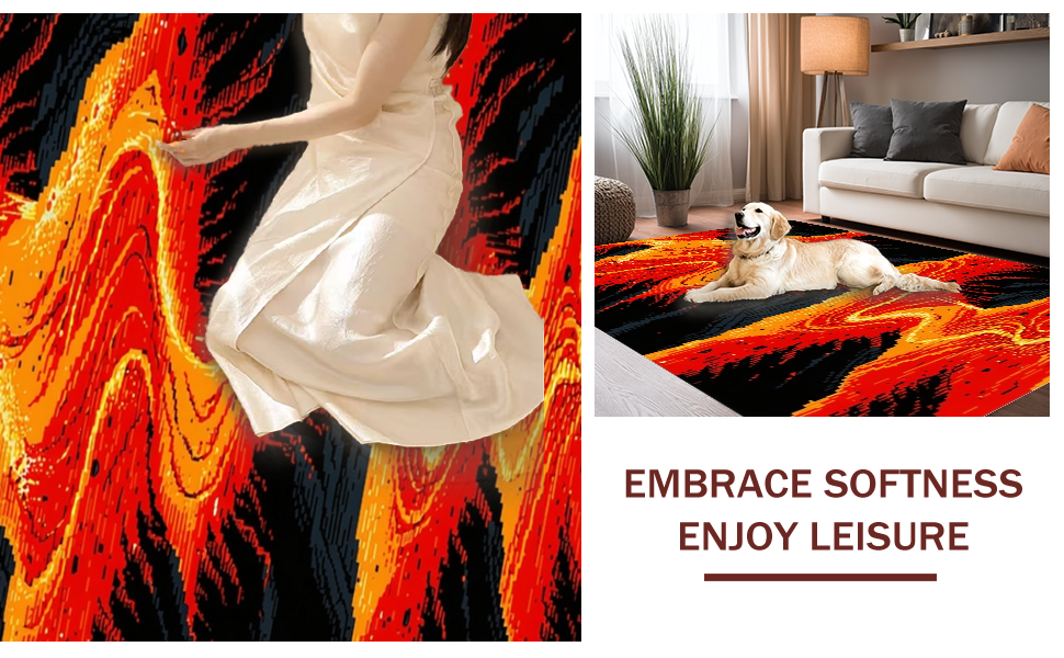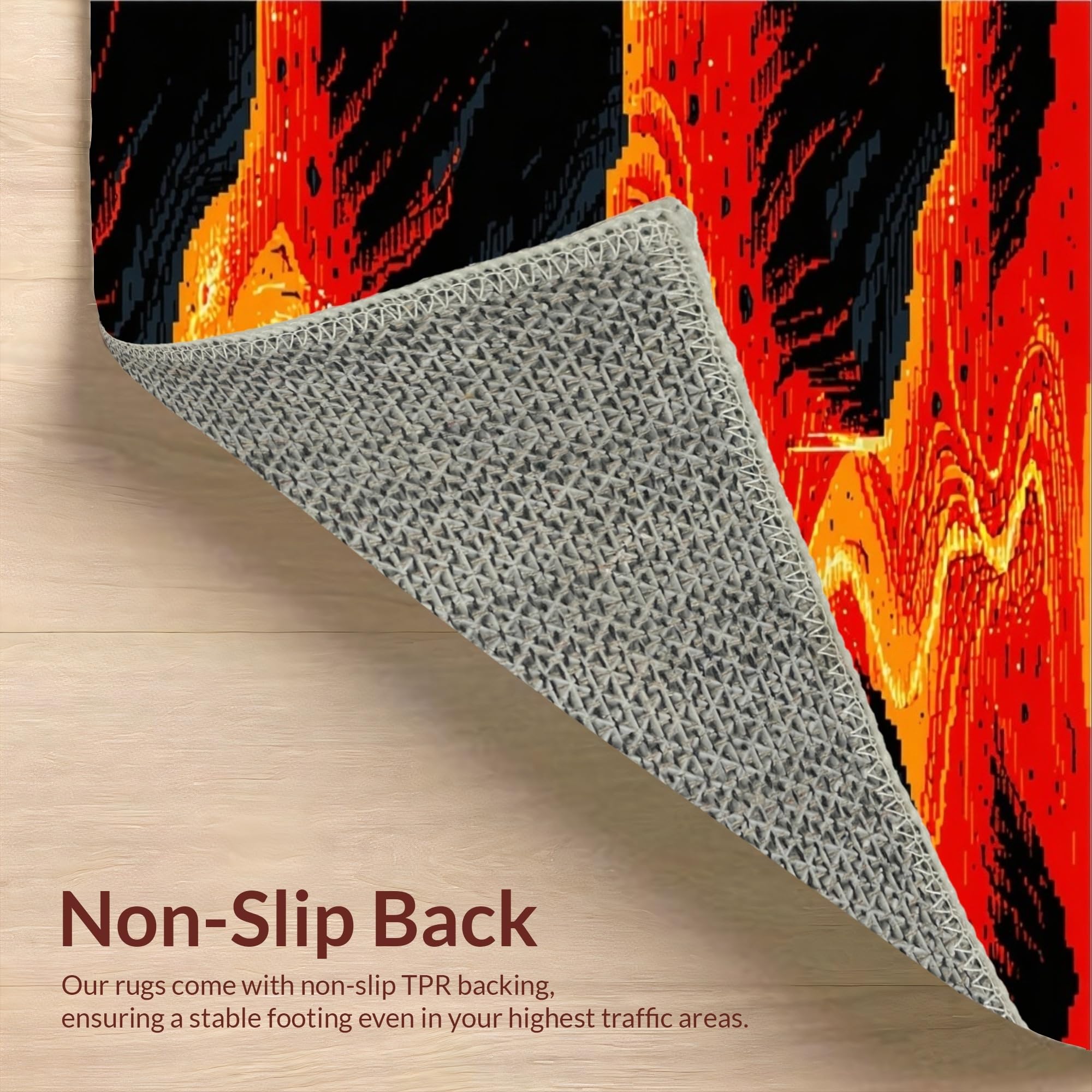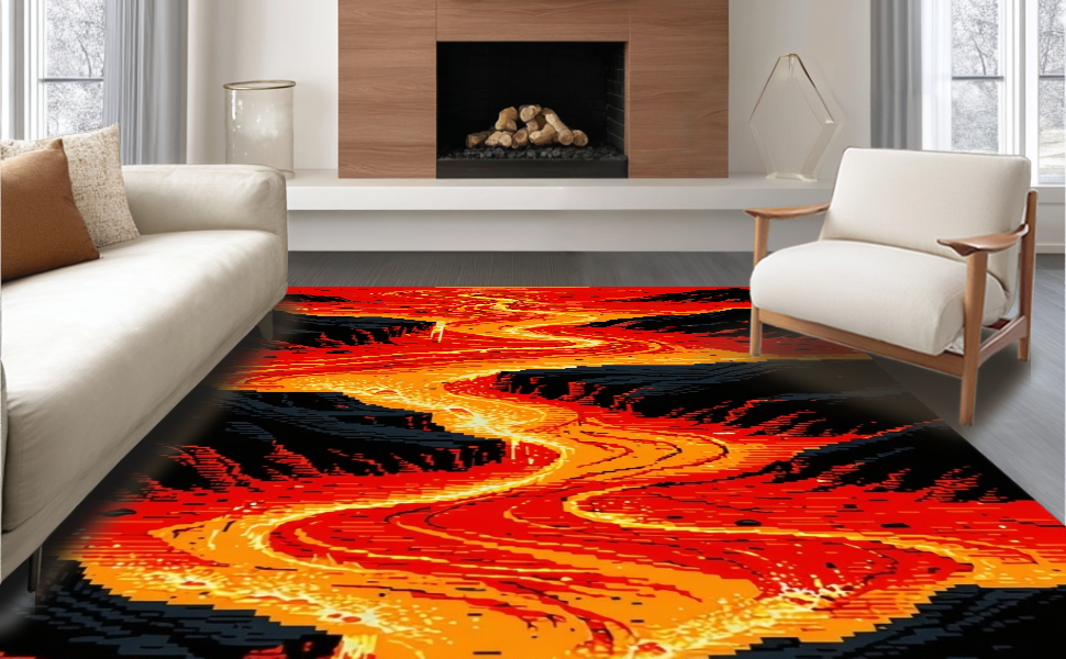 Ultra Soft Area Rug, Non Slip, Stain Resistant, Washable Area Rugs for Living Room, Bedroom, Energetic Volcano Inspired Motif(Red) Overview: