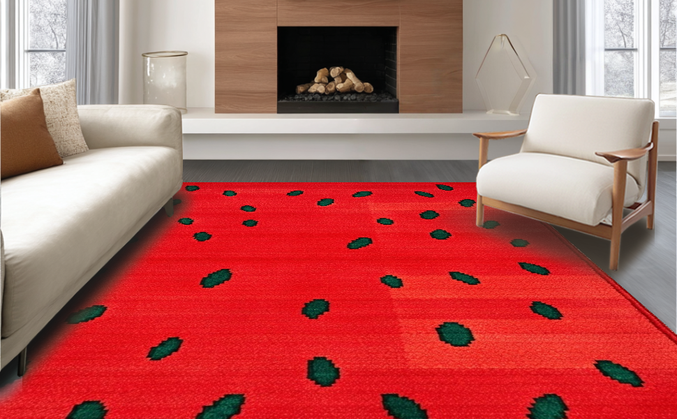 Ultra Soft Area Rug, Non Slip, Stain Resistant, Washable Area Rugs for Living Room, Bedroom, Energetic Youthful Design Element(Red) Overview: