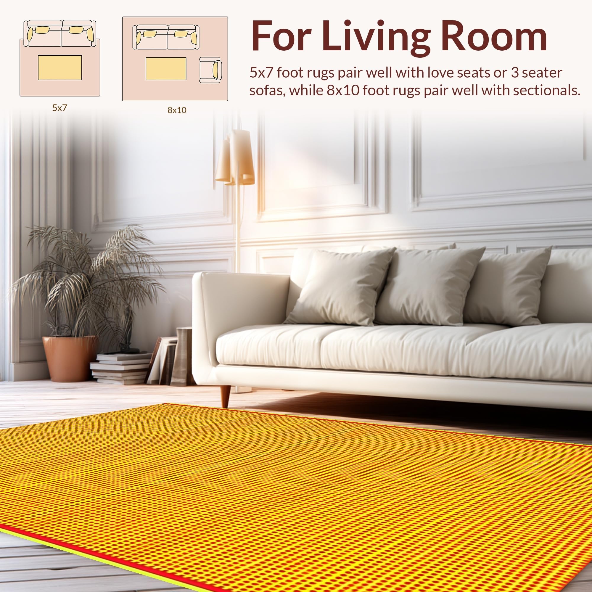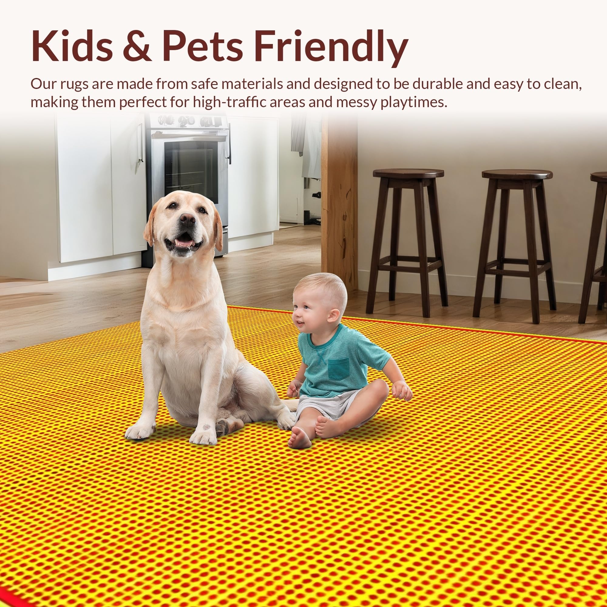 Ultra Soft Area Rug, Non Slip, Stain Resistant, Washable Area Rugs for Living Room, Bedroom, Energizing Colorful Geometric Dot Arrangement(Red) Overview:
