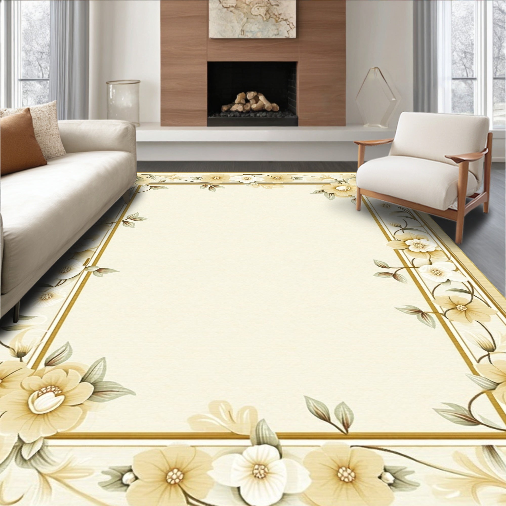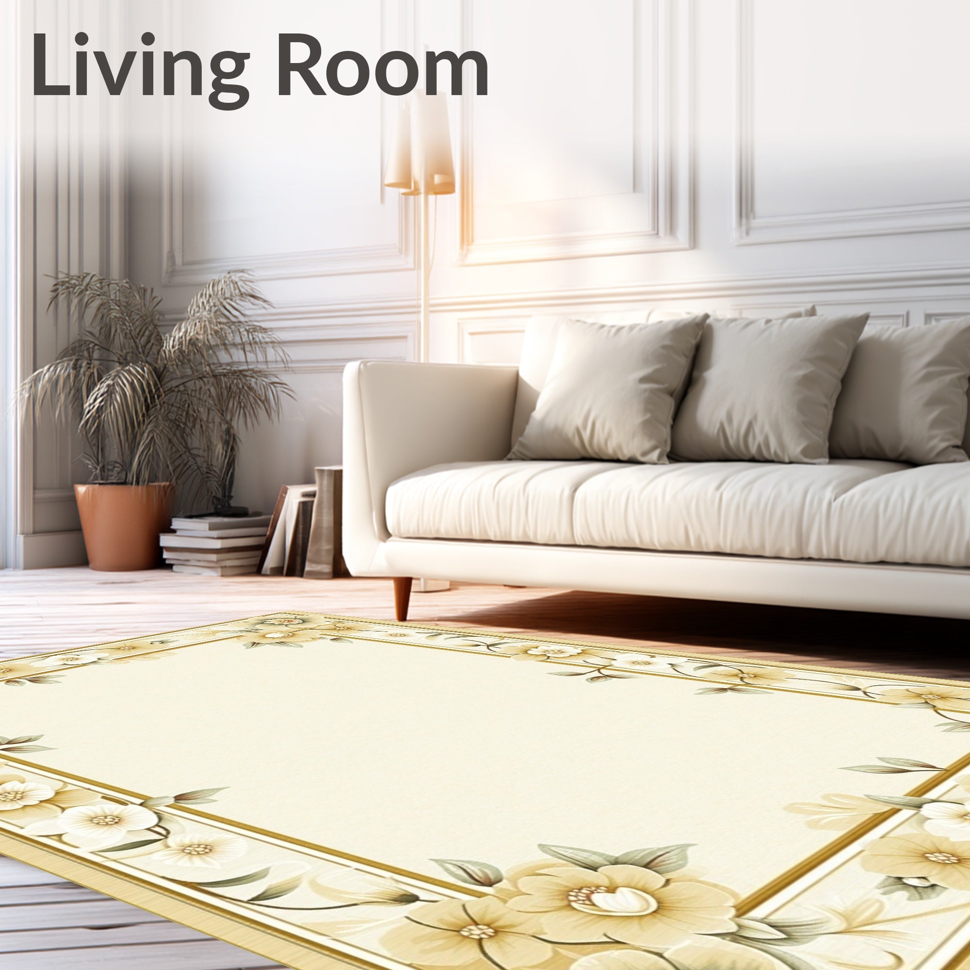 Ultra Soft Area Rug, Non Slip, Stain Resistant, Washable Area Rugs for Living Room, Bedroom, Entryway Floral Design in Subtle Beige Colors(Beige) Overview: