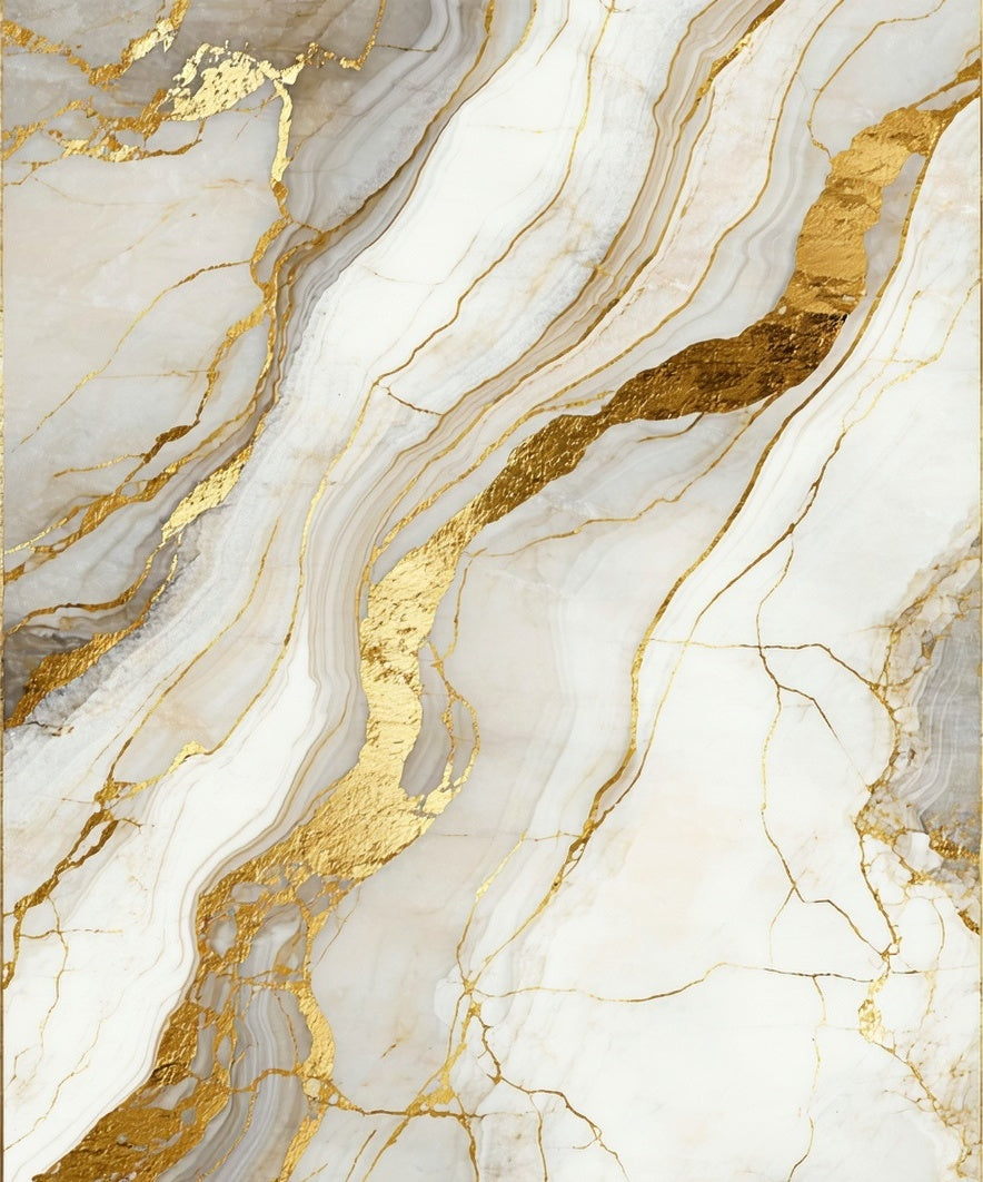 Ethereal Beige Gold Geometric Marble Swirls Indoor(White)