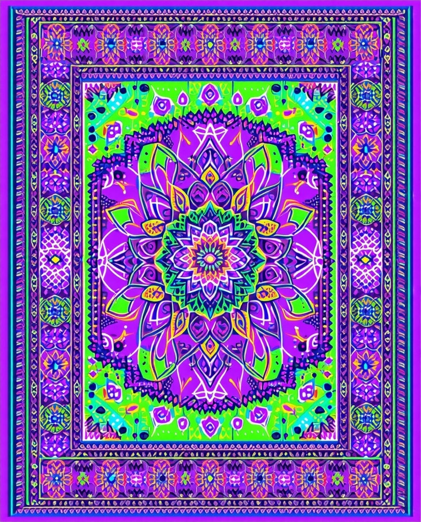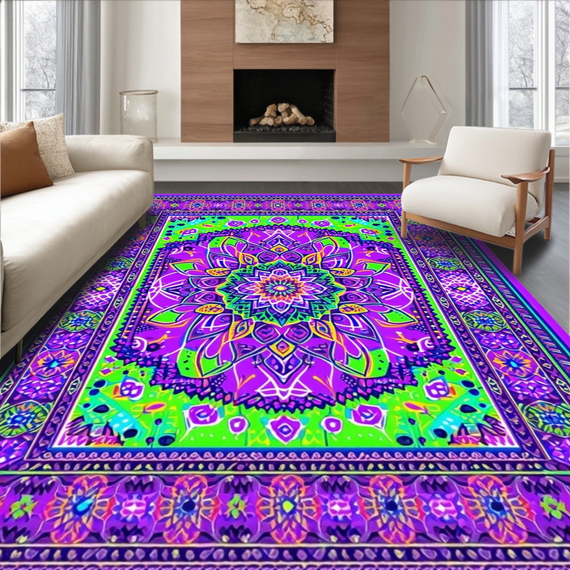 Flatwoven High Traffic Area Rug, Ethereal Kaleidoscopic Play, Non Slip, Stain Resistant, Washable Area Rugs for Living Room, Bedroom (Purple) Overview: