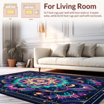 Ultra Soft Area Rug, Non Slip, Stain Resistant, Washable Area Rugs for Living Room, Bedroom, Ethereal Spiral Rug in Semi Circle Shape with Multicolor Galaxy Shades(Blue) Overview: