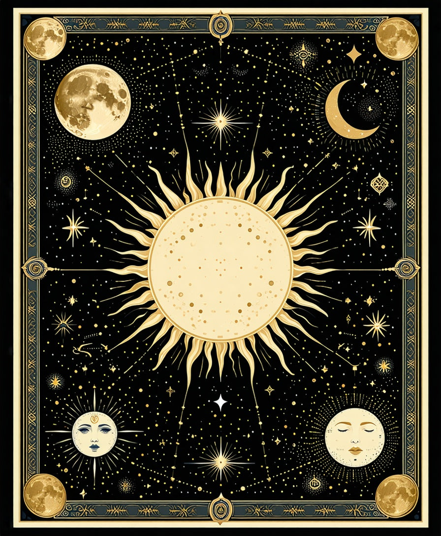 Ethereal Sun Moon Tapestry Aesthetic(Black)