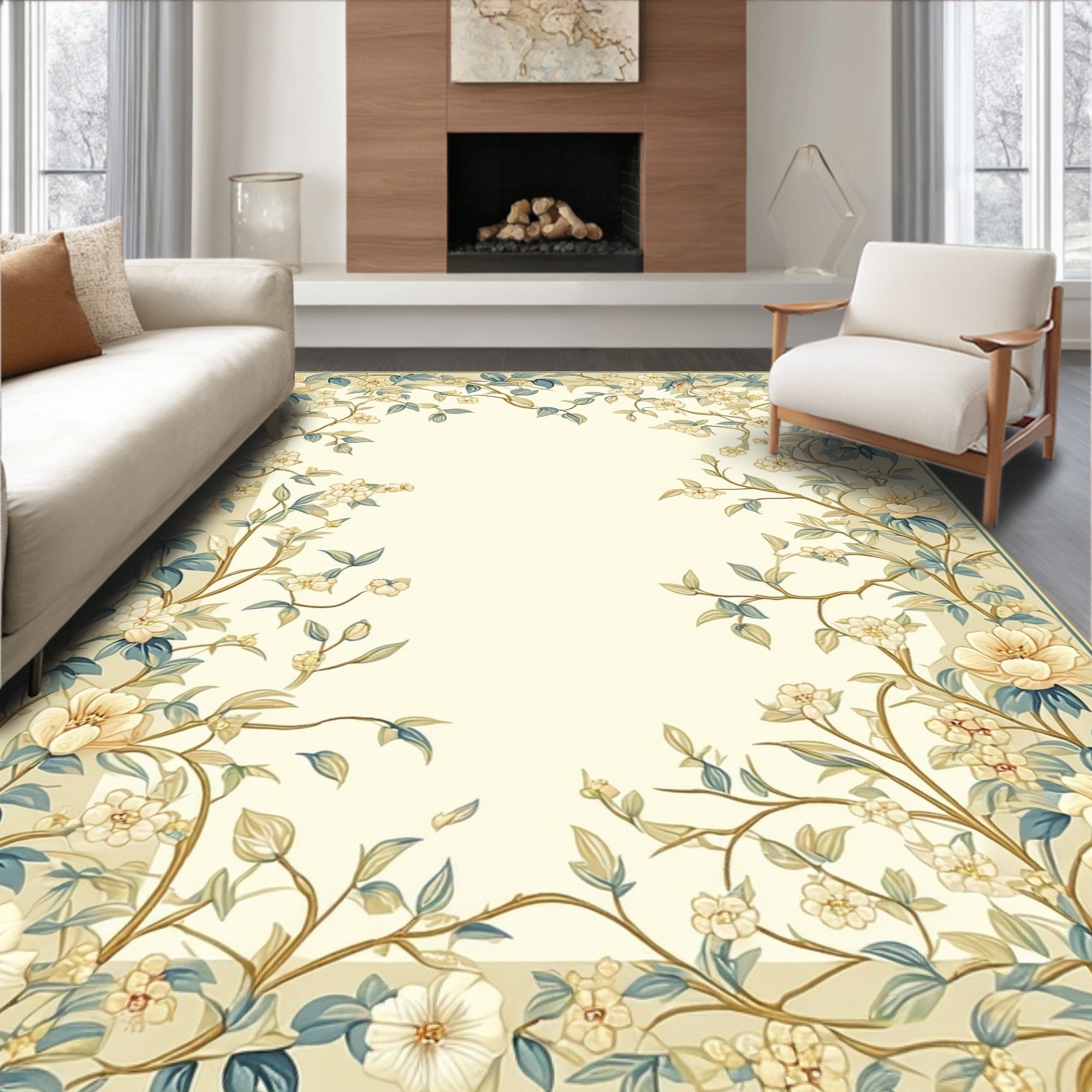 Flatwoven High Traffic Area Rug, Ethereal Trails Beige and Floral Trail Design, Non Slip, Stain Resistant, Washable Area Rugs for Living Room, Bedroom (Beige) Overview: