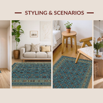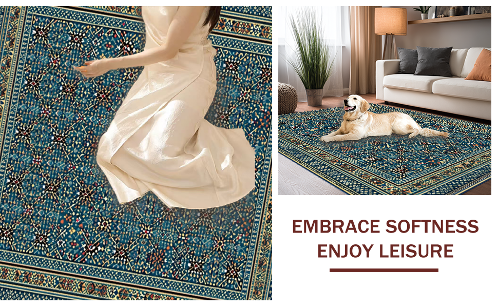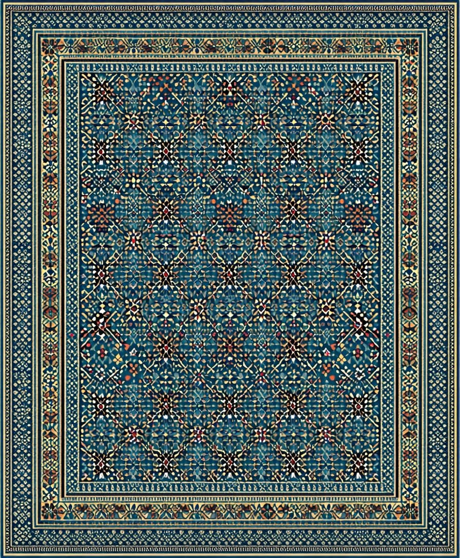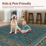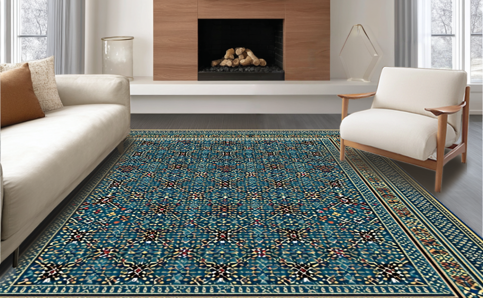 Ultra Soft Area Rug, Non Slip, Stain Resistant, Washable Area Rugs for Living Room, Bedroom, Ethnic Blue Toned Geometric Design(Blue) Overview: