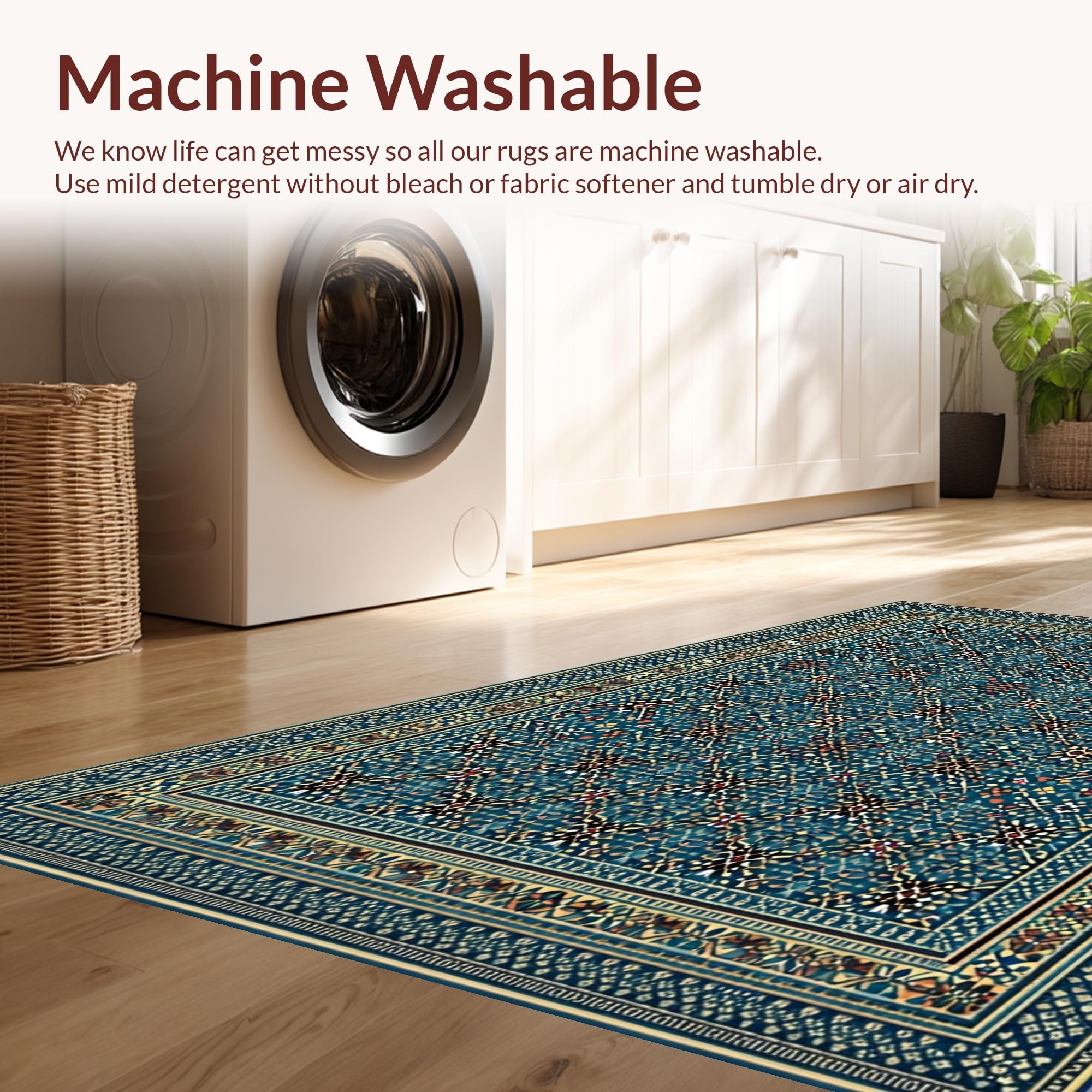 - Machine Washable: Our rugs can be easily thrown in the wash machine.