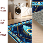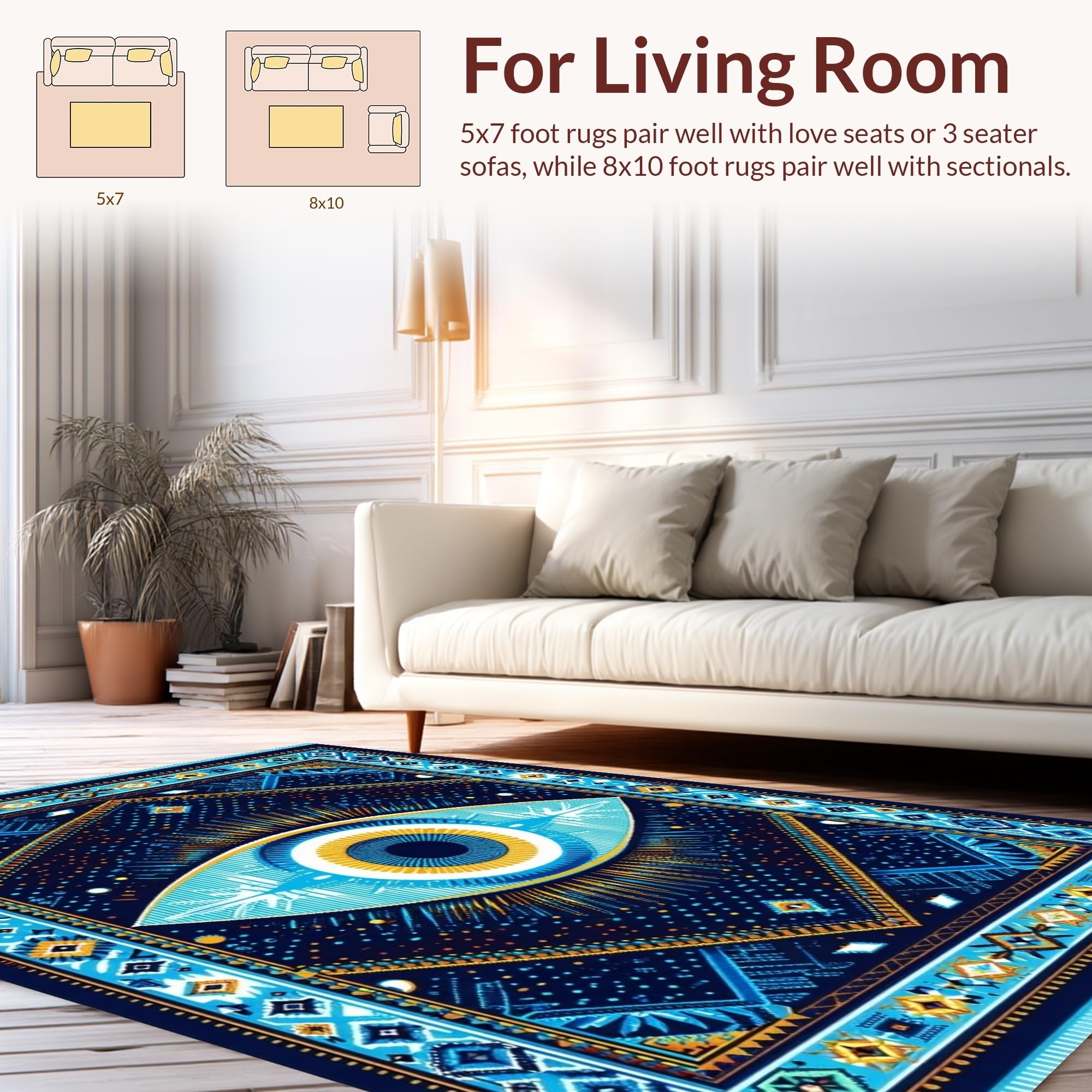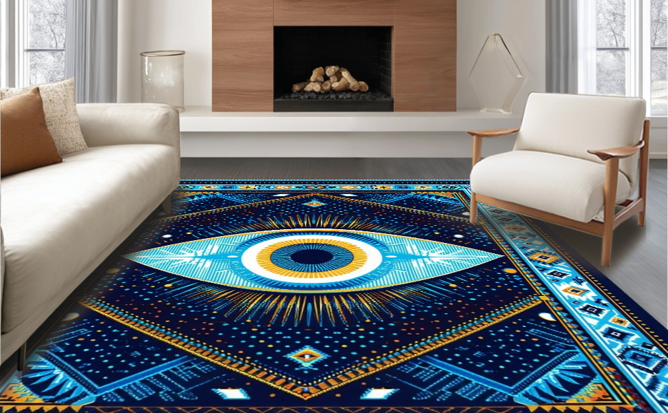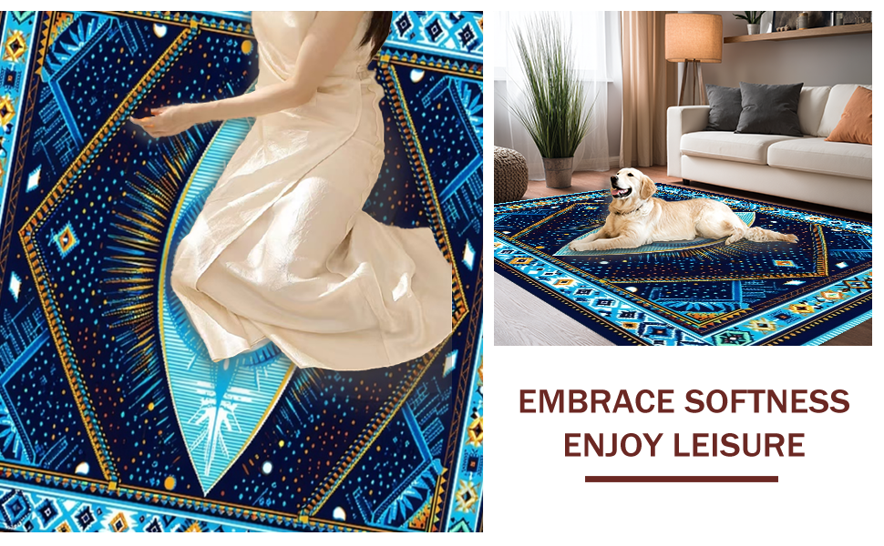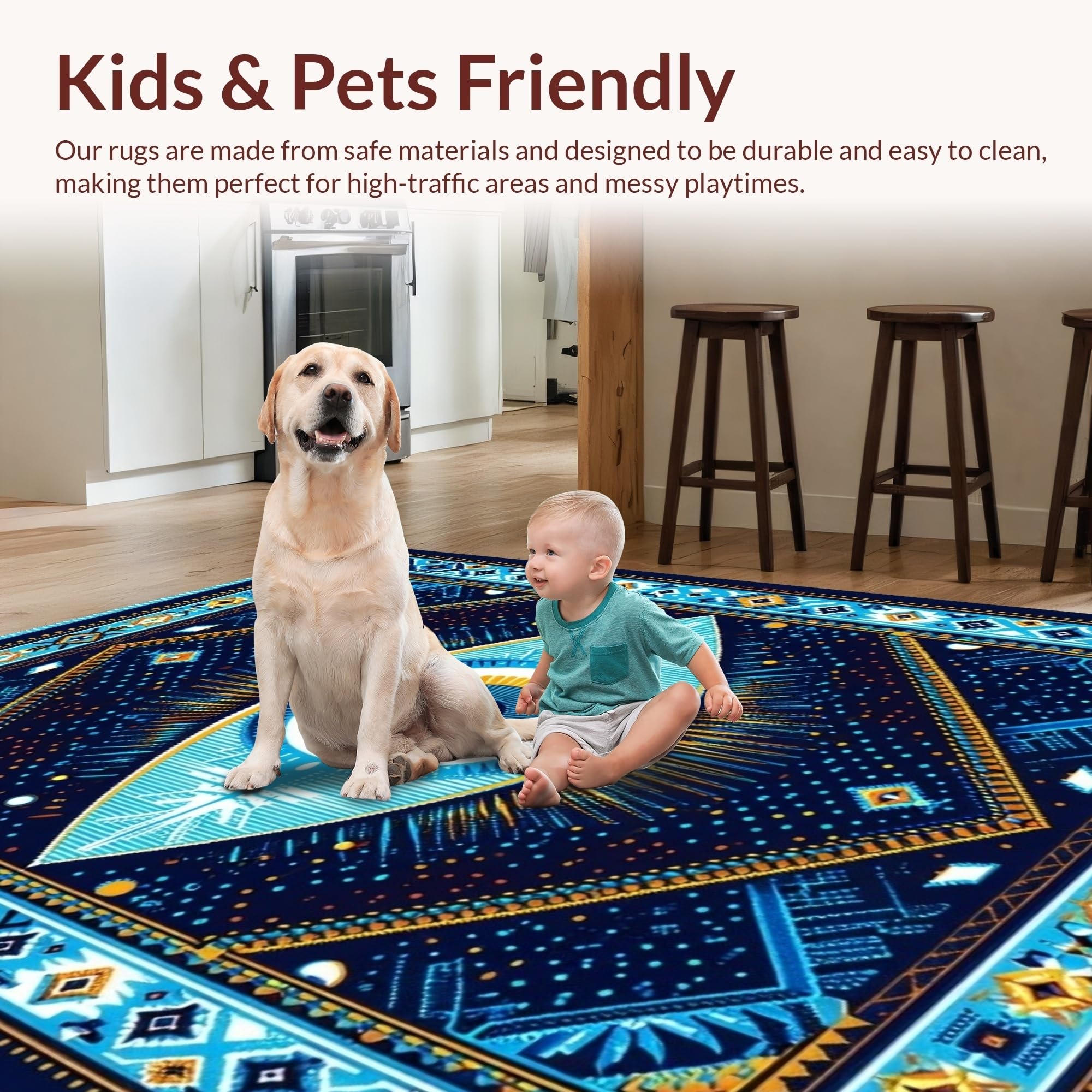 Ultra Soft Area Rug, Non Slip, Stain Resistant, Washable Area Rugs for Living Room, Bedroom, Ethnic Blue Toned Medallion Design(Blue) Overview: