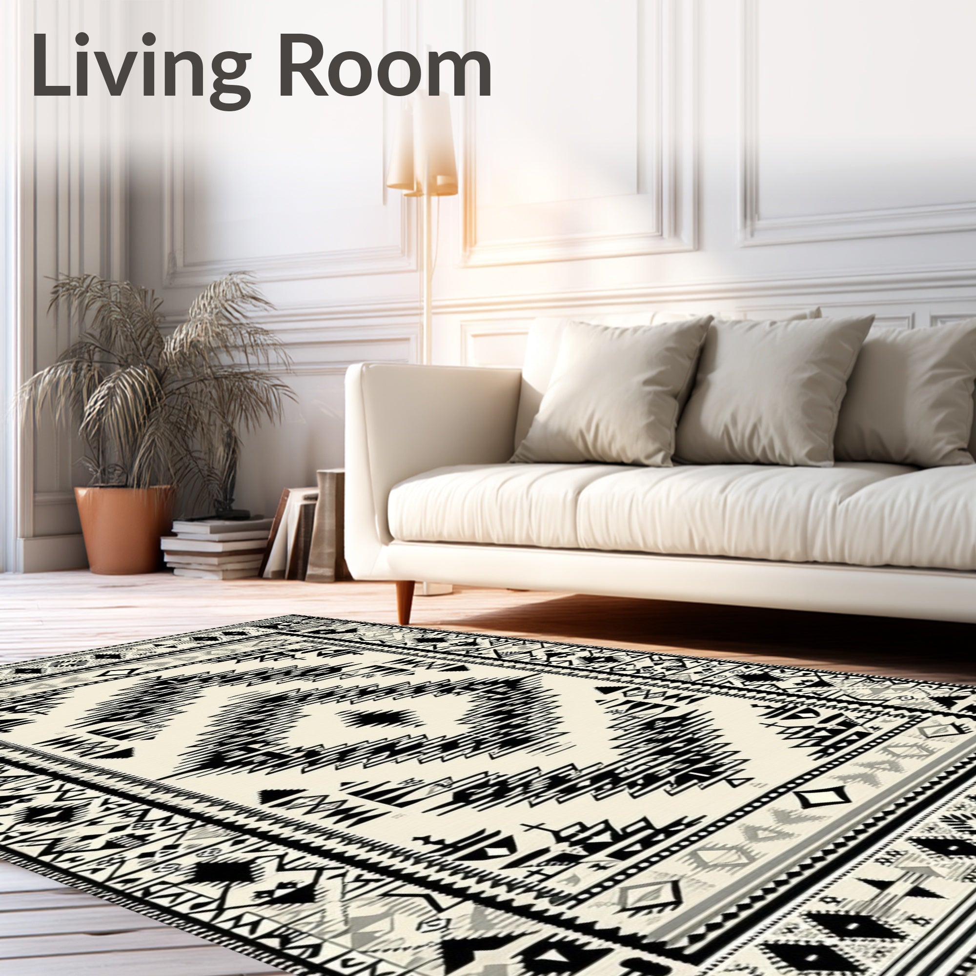 Ultra Soft Area Rug, Non Slip, Stain Resistant, Washable Area Rugs for Living Room, Bedroom, Ethnic Inspired Handwoven Area With Distinctive Geometric(Black) Overview: