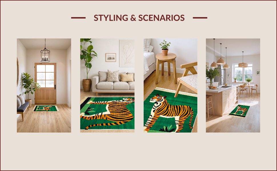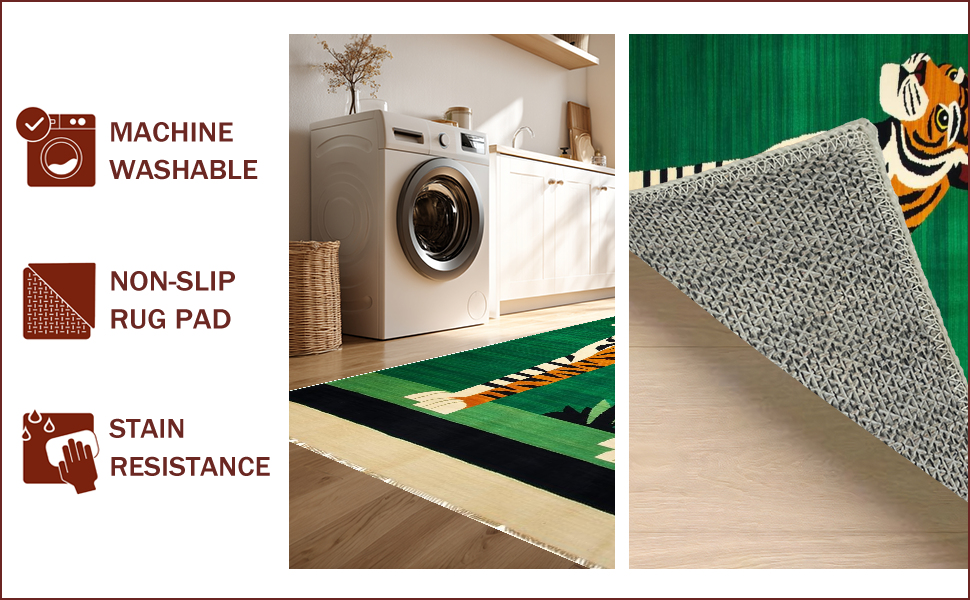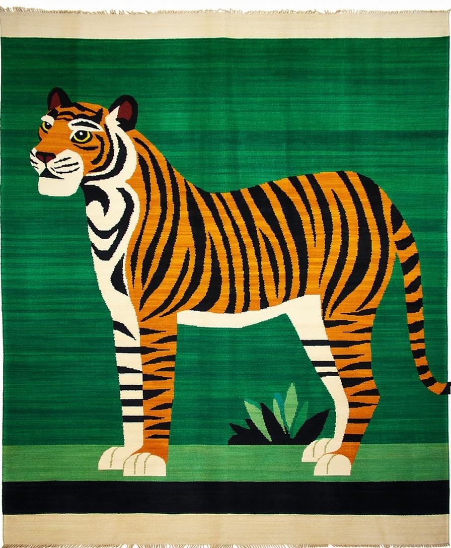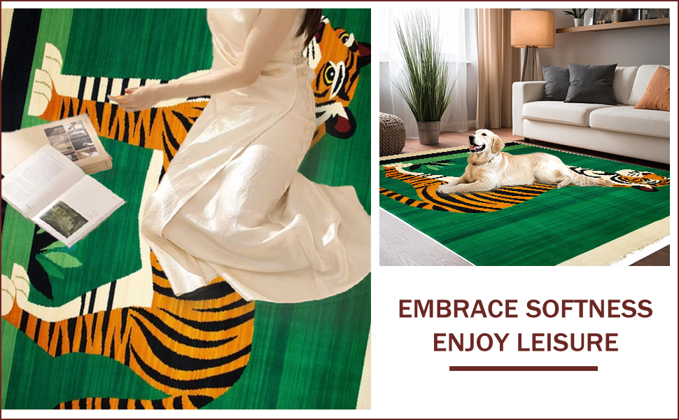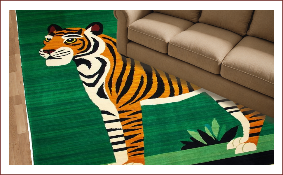 Ultra Soft Area Rug, Non Slip, Stain Resistant, Washable Area Rugs for Living Room, Bedroom, Ethnic Tiger Print Aesthetic(Green) Overview: