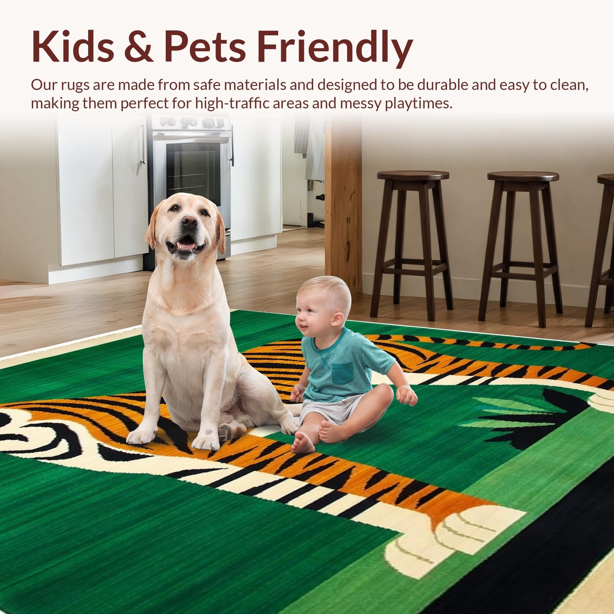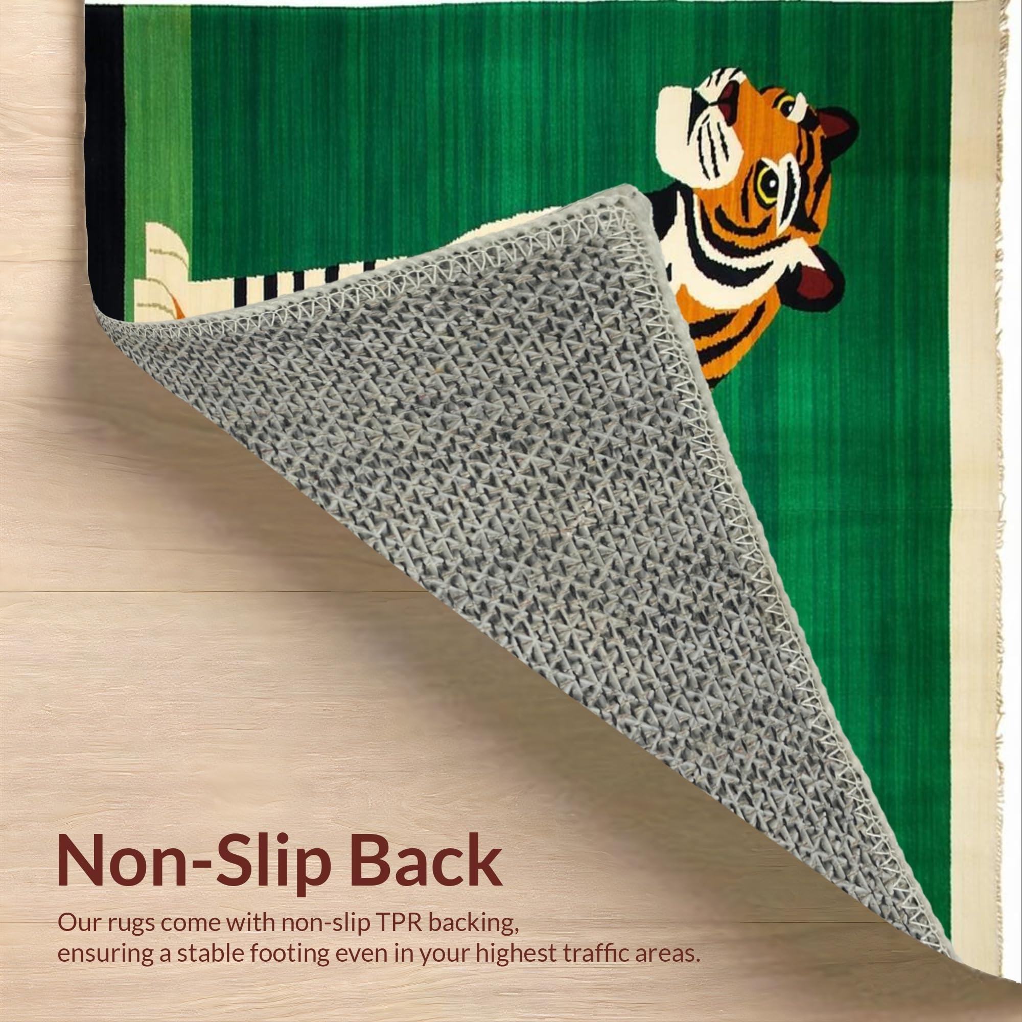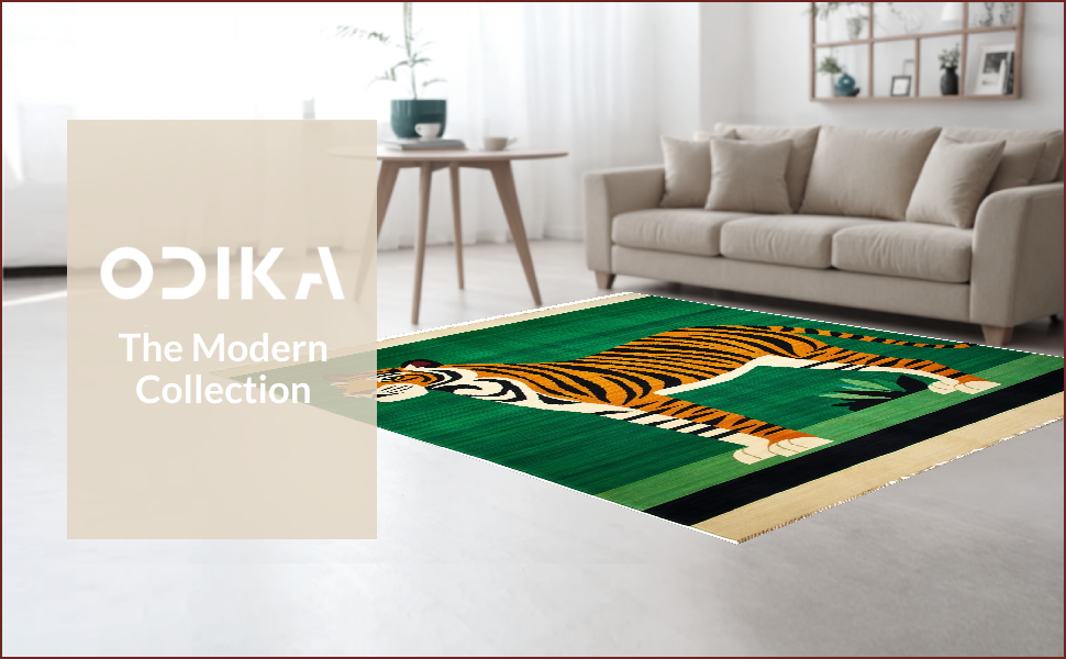Ultra Soft Area Rug, Non Slip, Stain Resistant, Washable Area Rugs for Living Room, Bedroom, Ethnic Tiger Print Aesthetic(Green) Overview:
