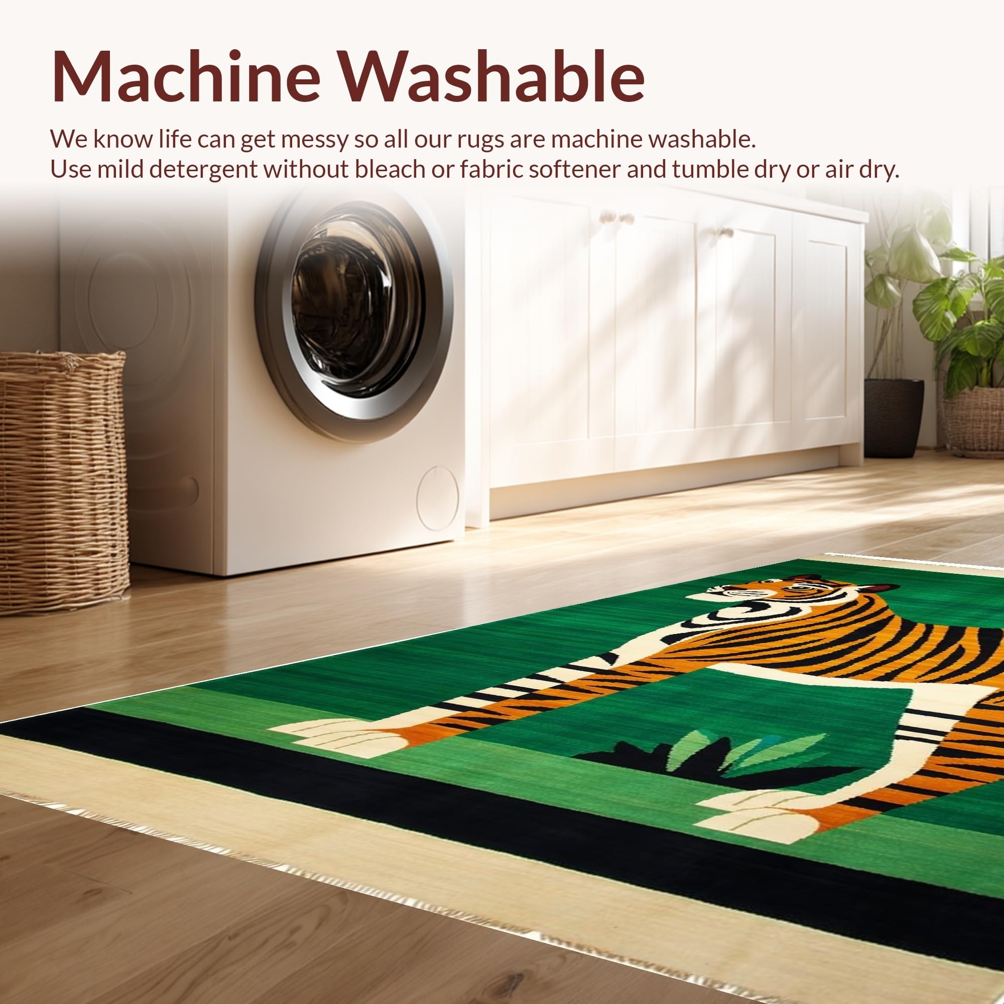 - Machine Washable: Our rugs can be easily thrown in the wash machine.
