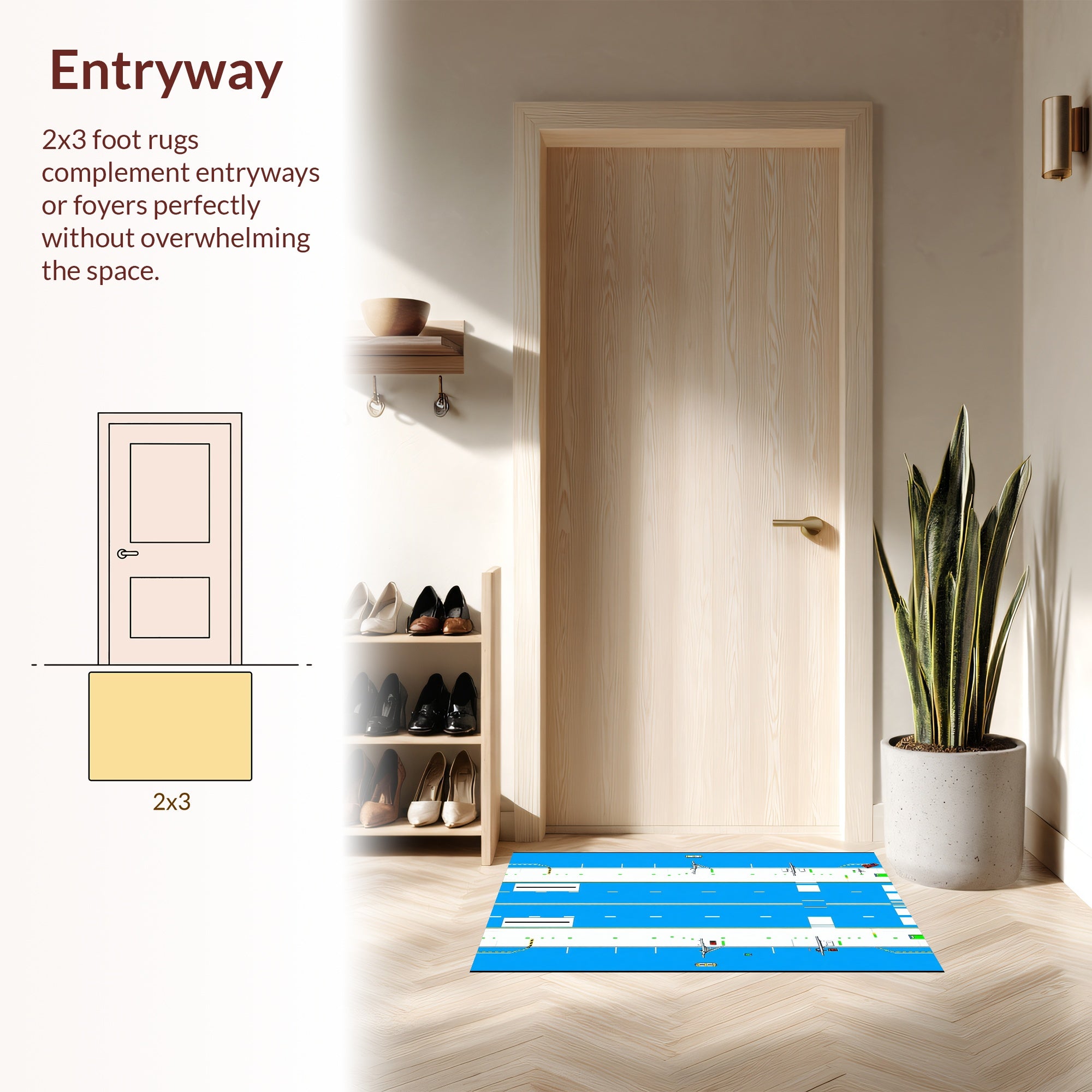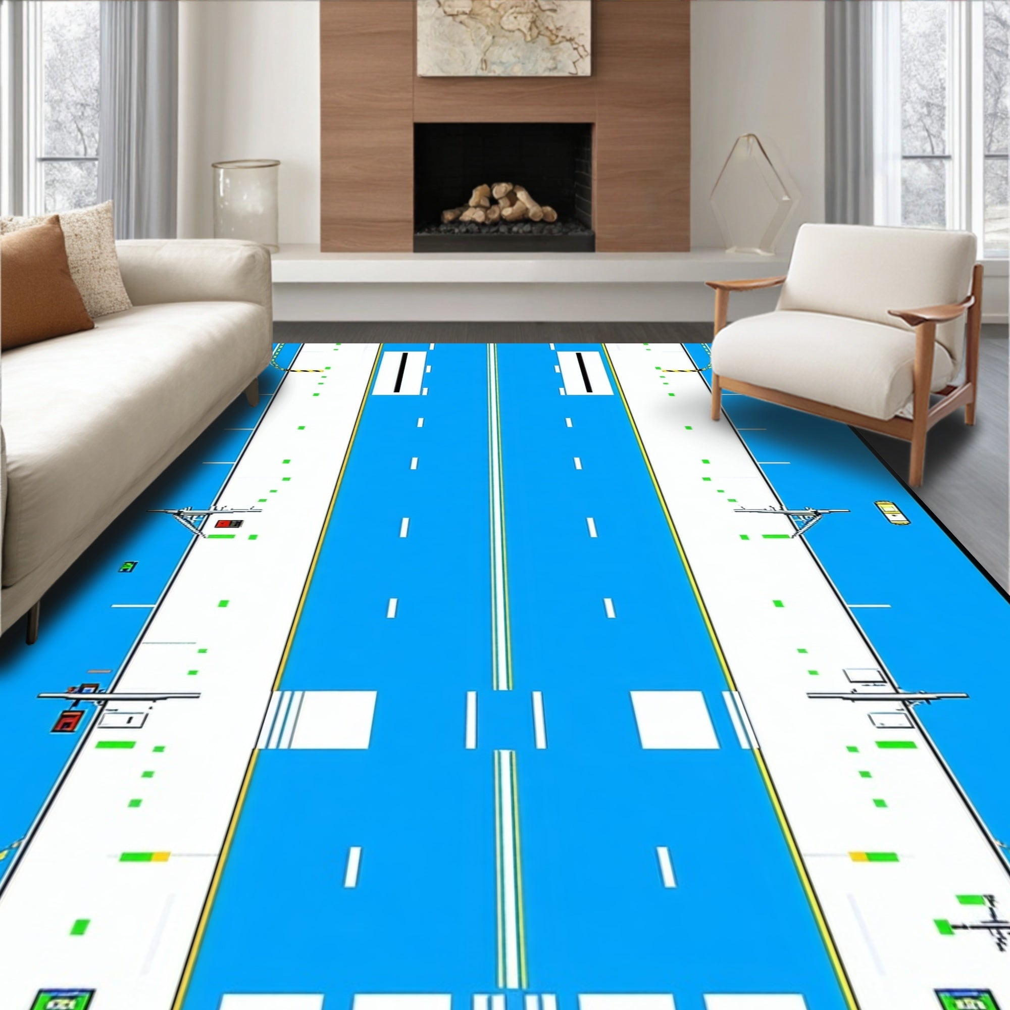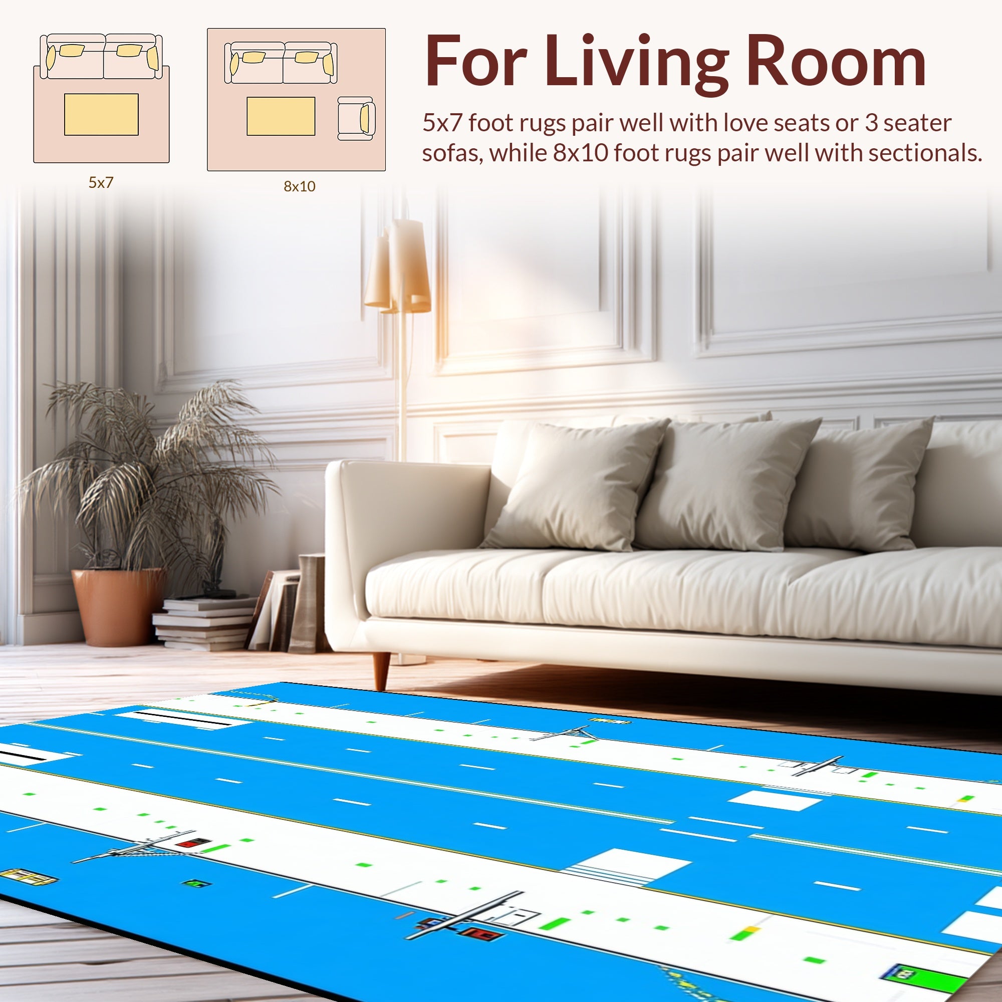 Flatwoven High Traffic Area Rug, Exciting Aeronautical Traffic Layout, Non Slip, Stain Resistant, Washable Area Rugs for Living Room, Bedroom (Blue) Overview: