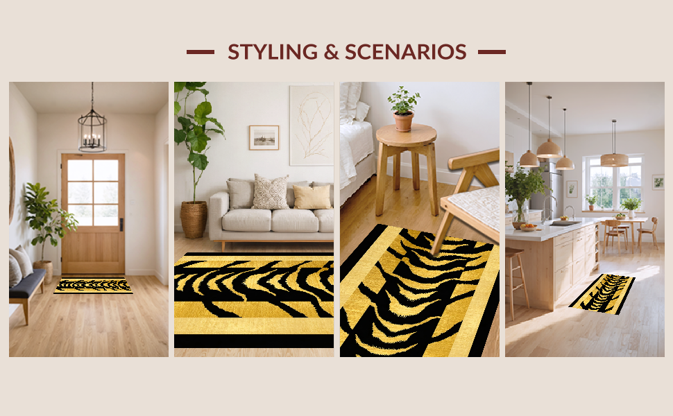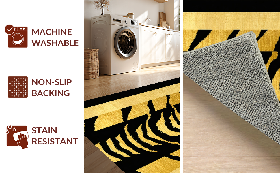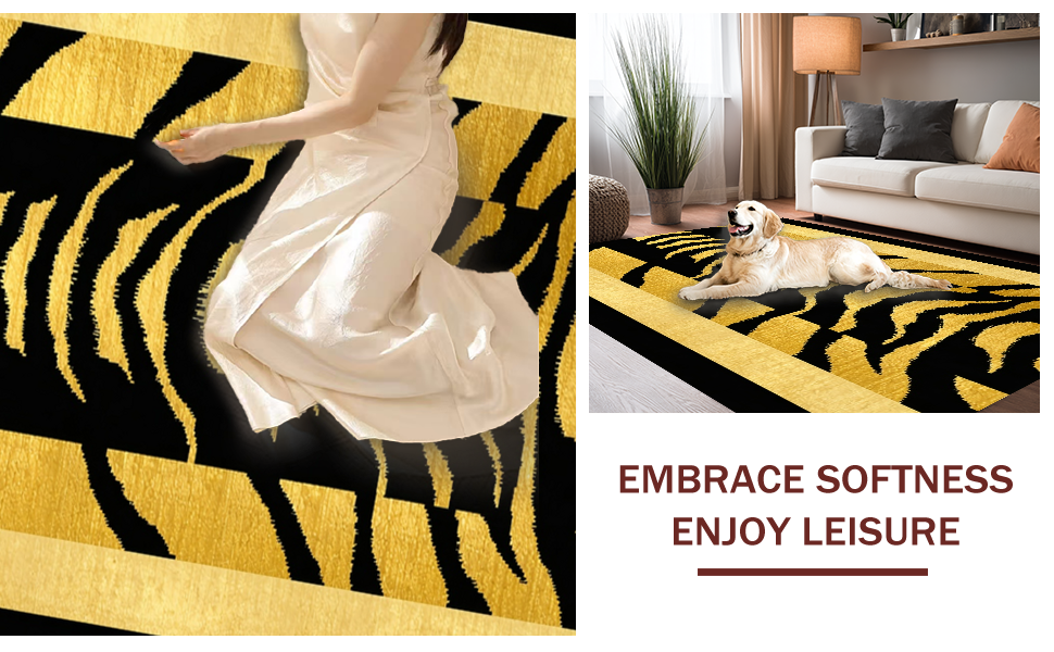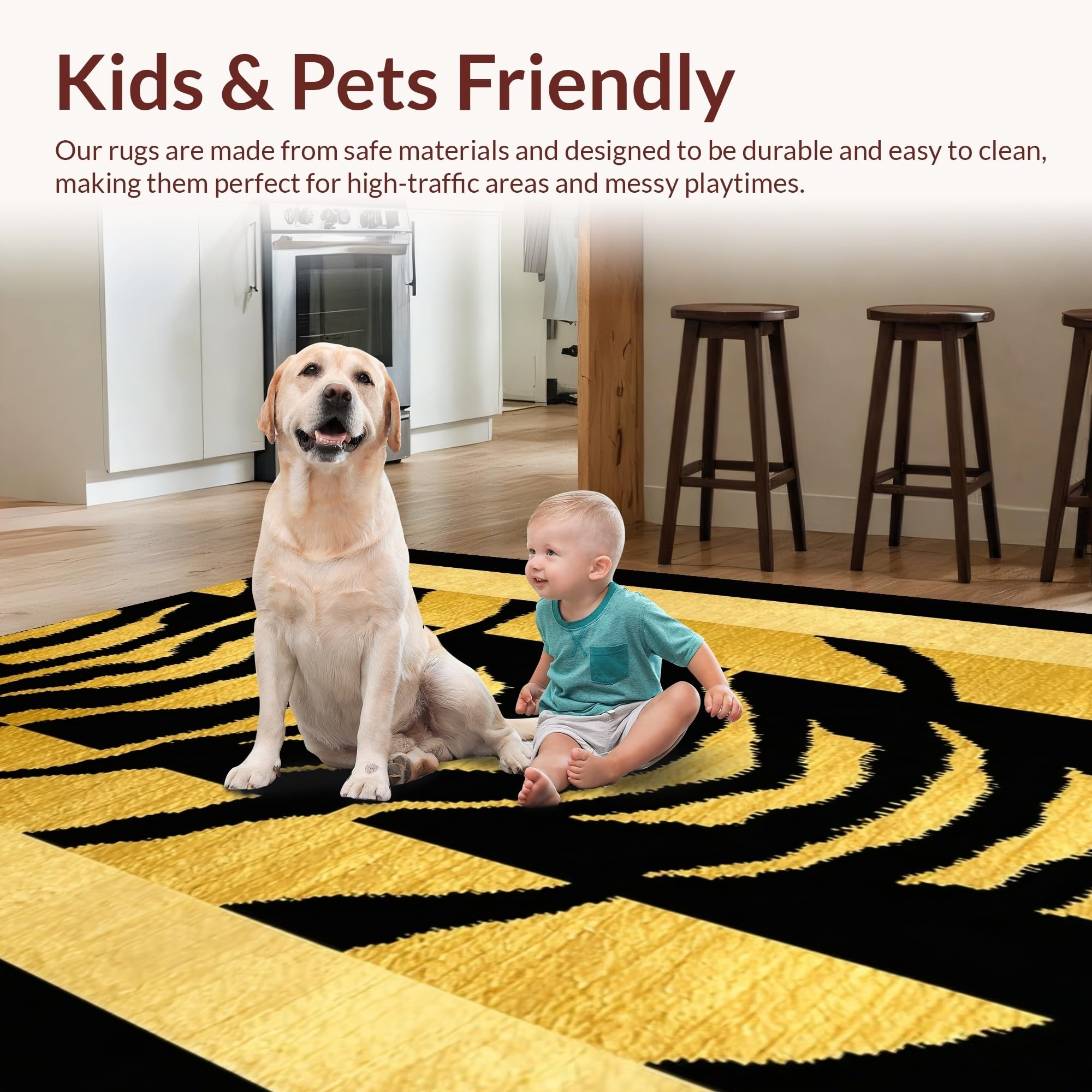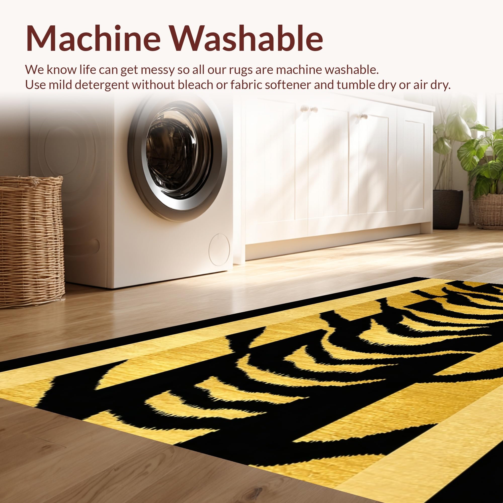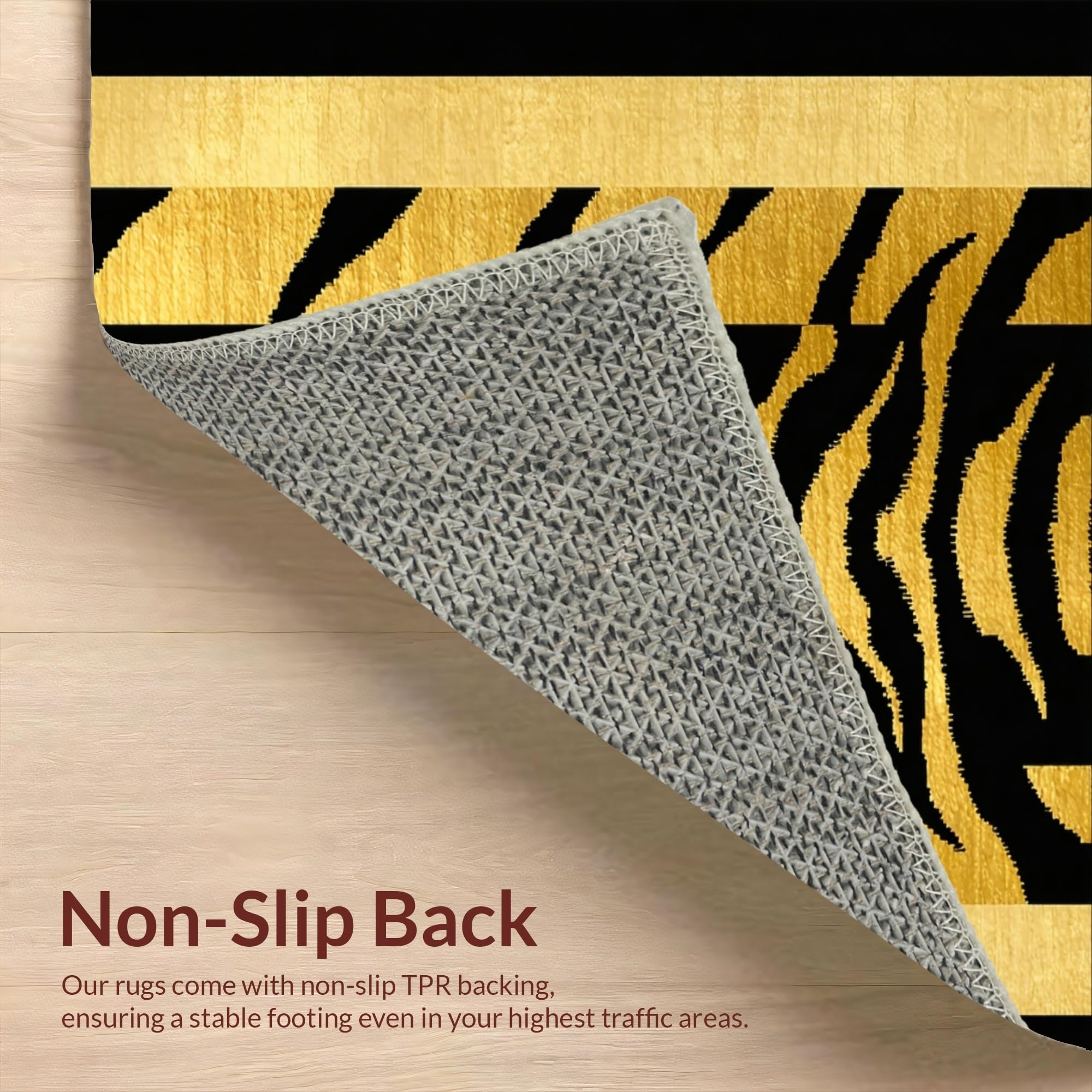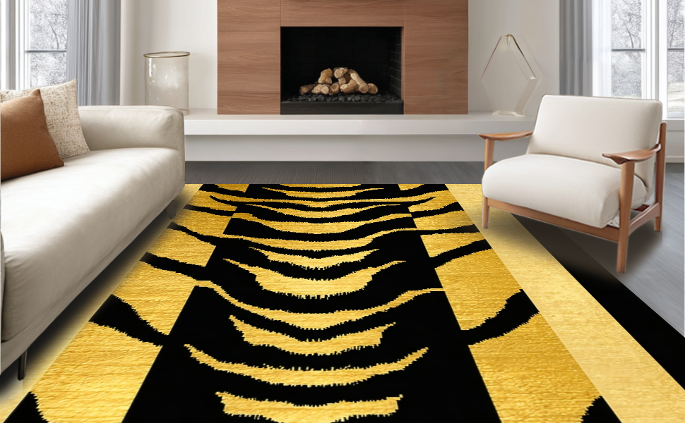 Ultra Soft Area Rug, Non Slip, Stain Resistant, Washable Area Rugs for Living Room, Bedroom, Exotic Black Gold Tiger Motif(Gold) Overview: