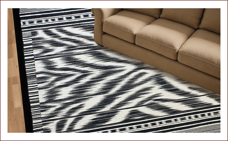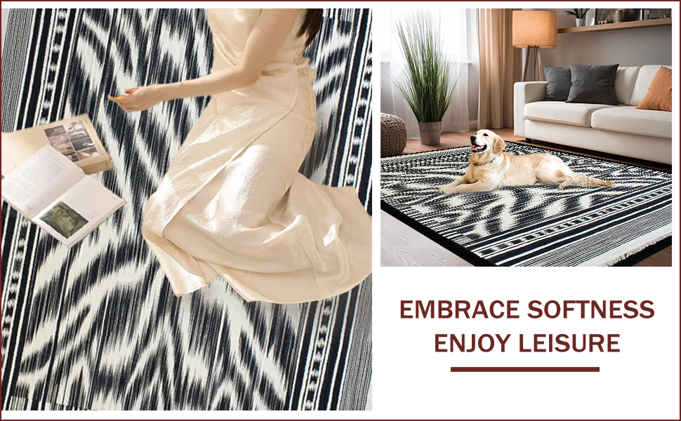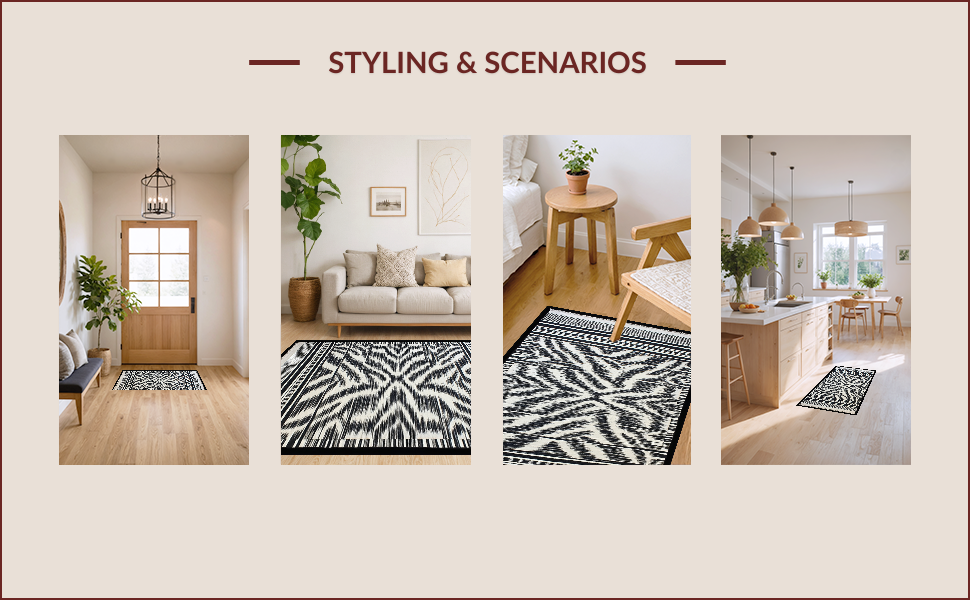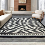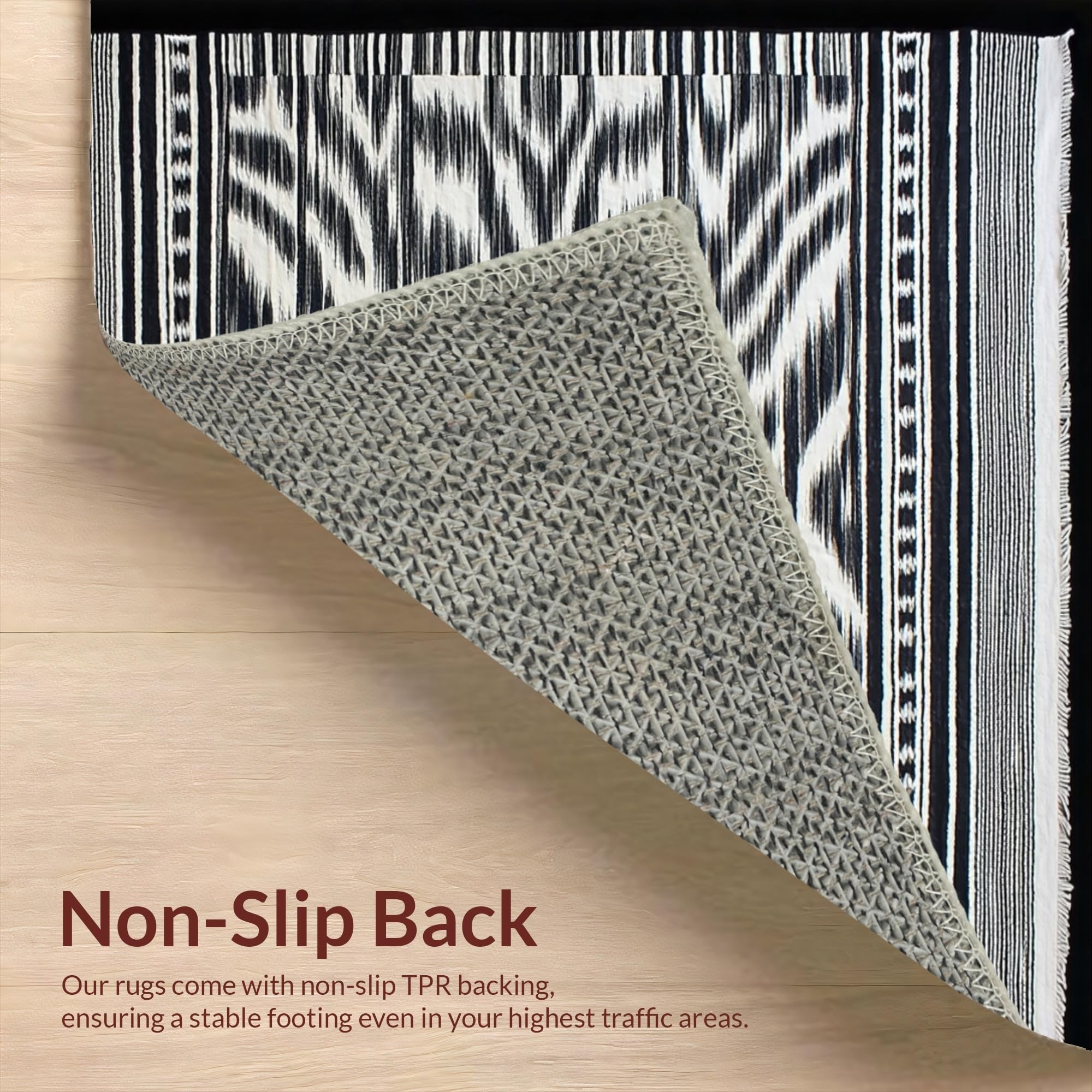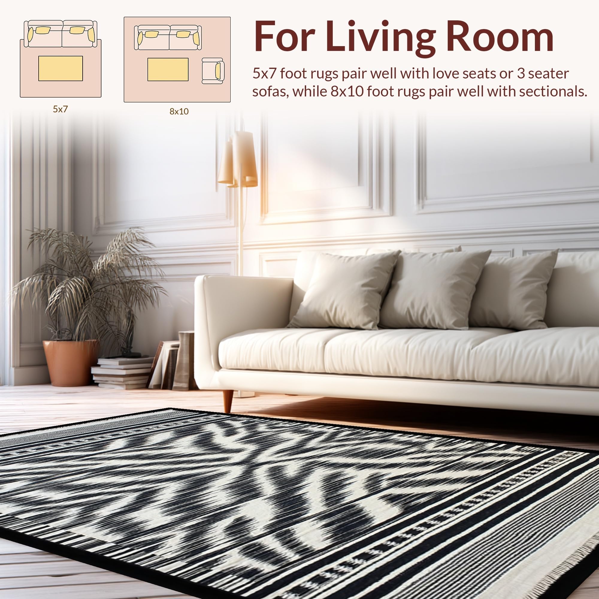 Ultra Soft Area Rug, Non Slip, Stain Resistant, Washable Area Rugs for Living Room, Bedroom, Exotic Striped Monochrome Aesthetic(Black) Overview: